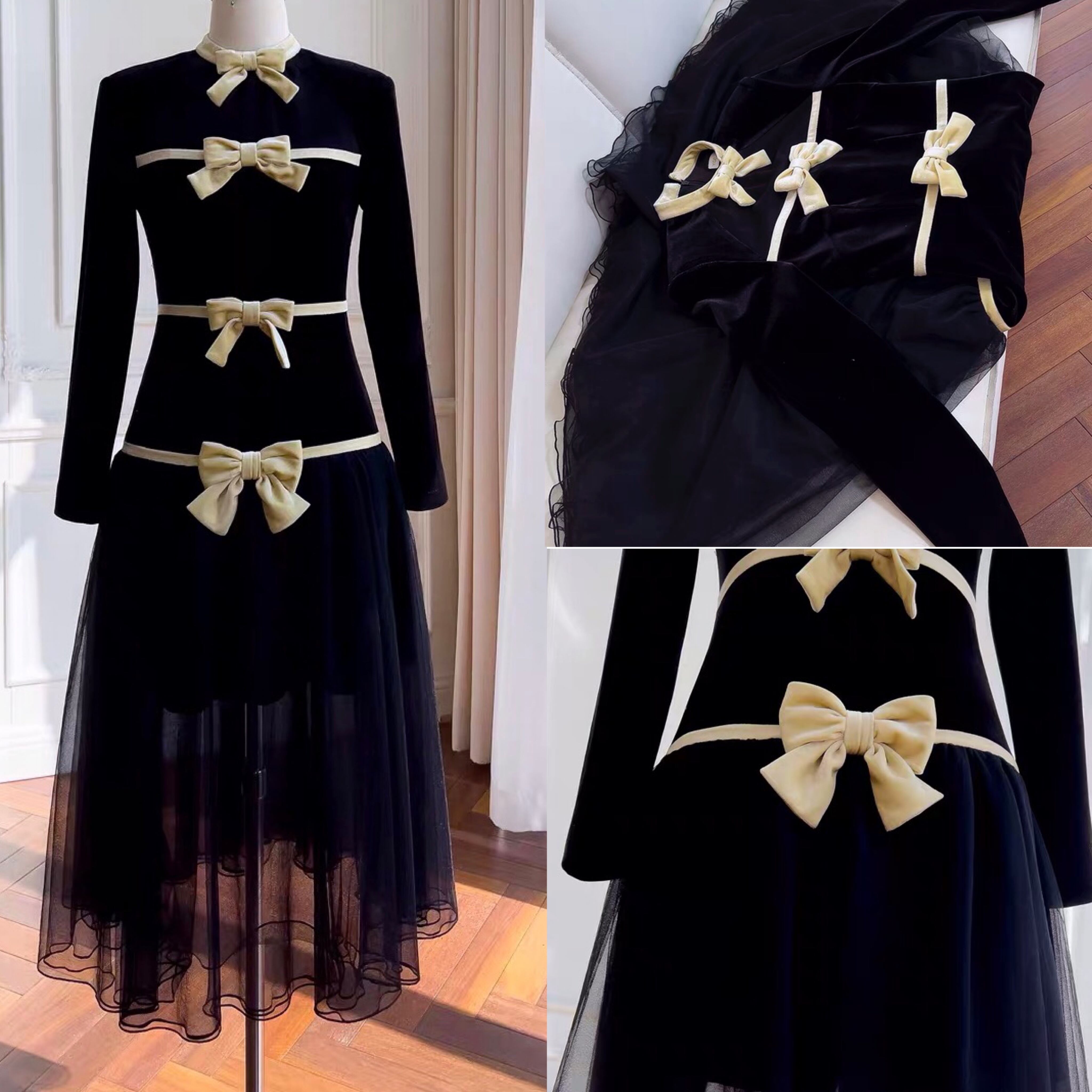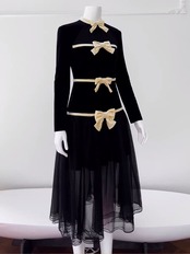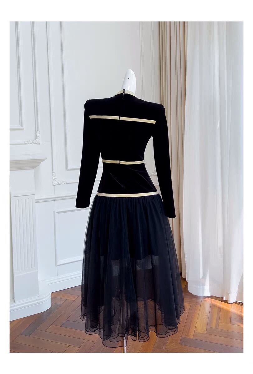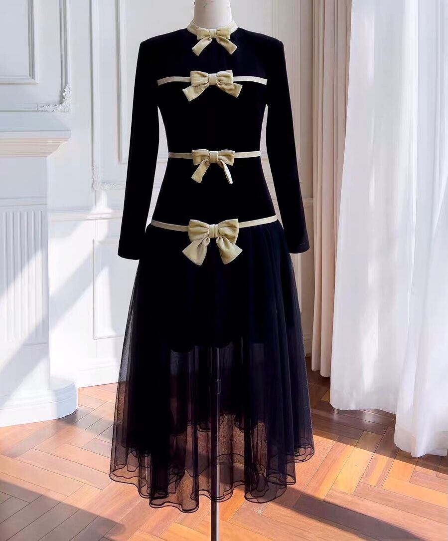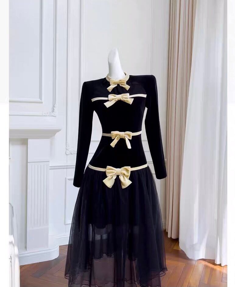 ワンピース ベロア ベルベット 黒 ブラック エレガント ドレス