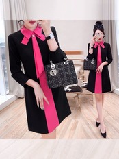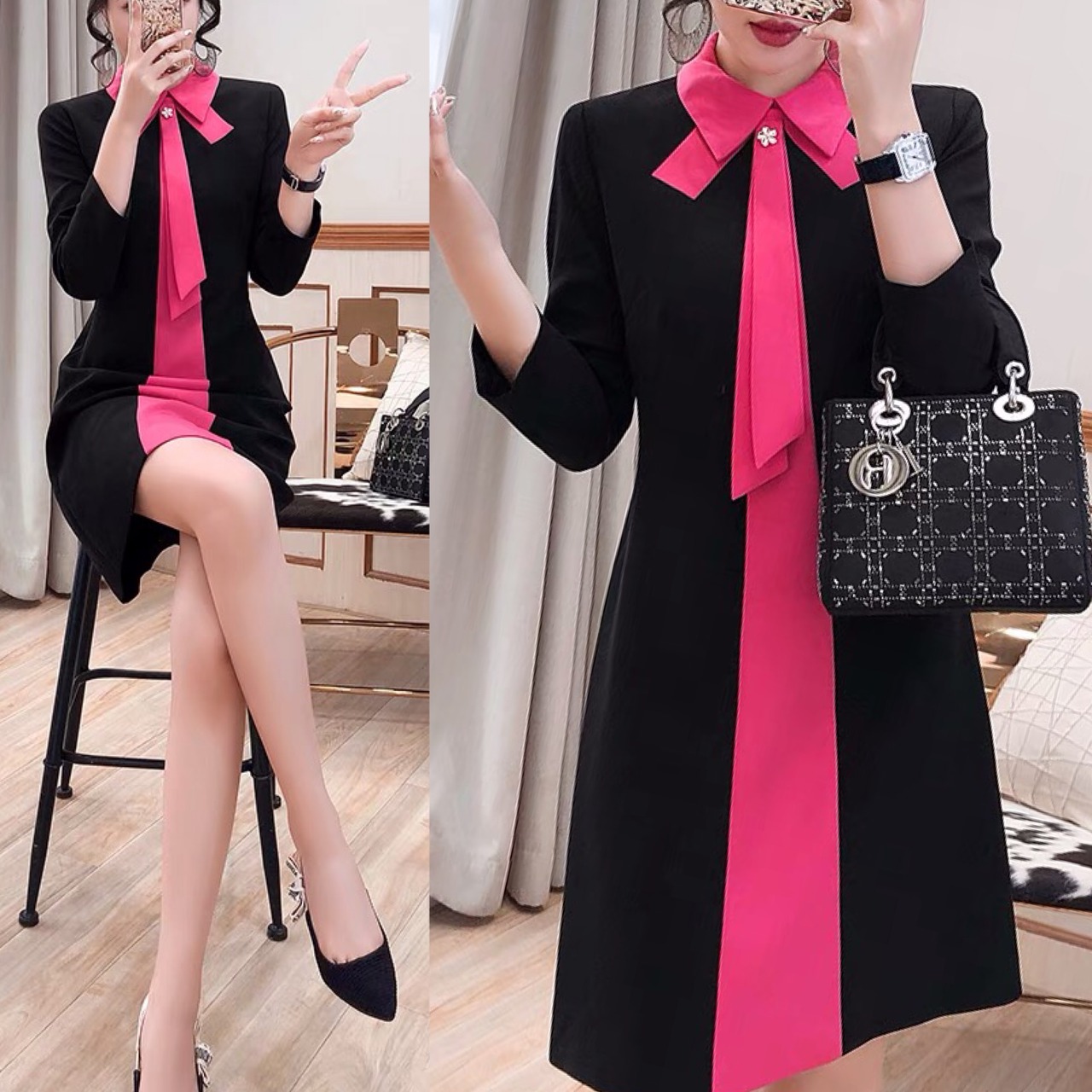 黒 リボン ピンク ワンピース エレガント XL ブラック