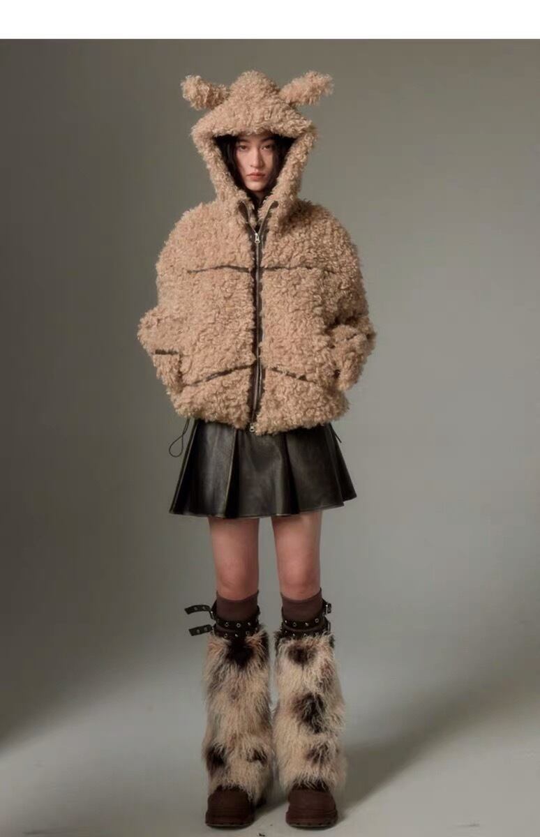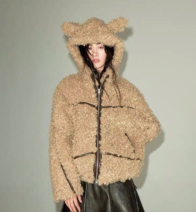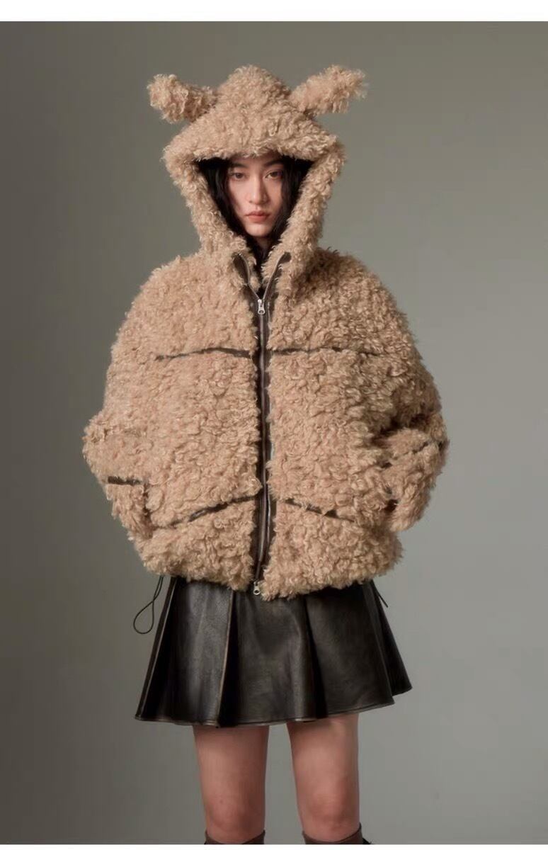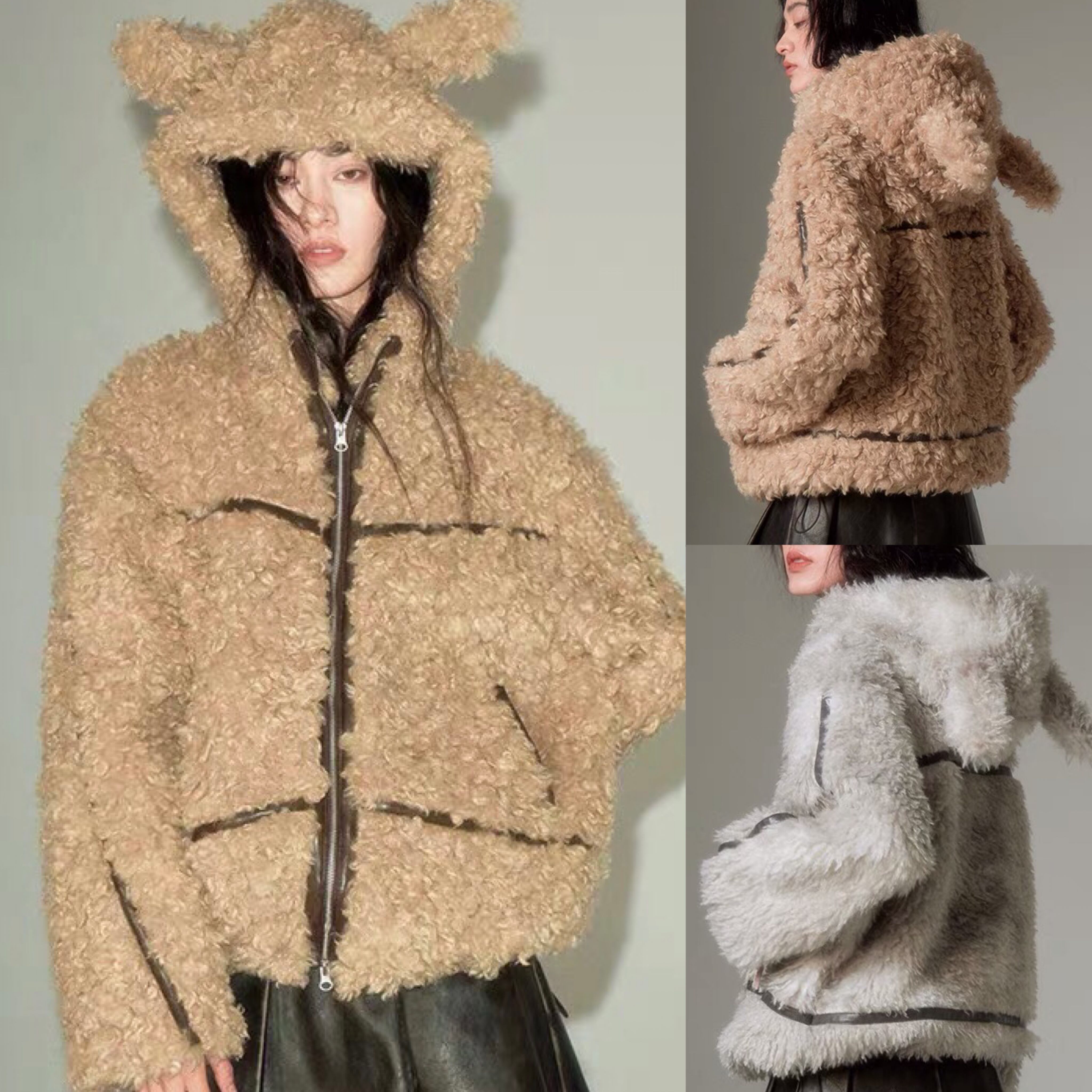 くま パーカー フード 茶色 グレー アウター ジャケット