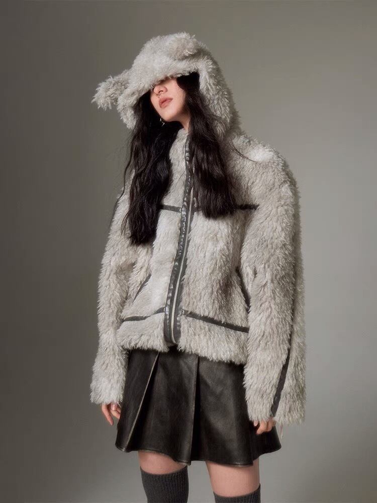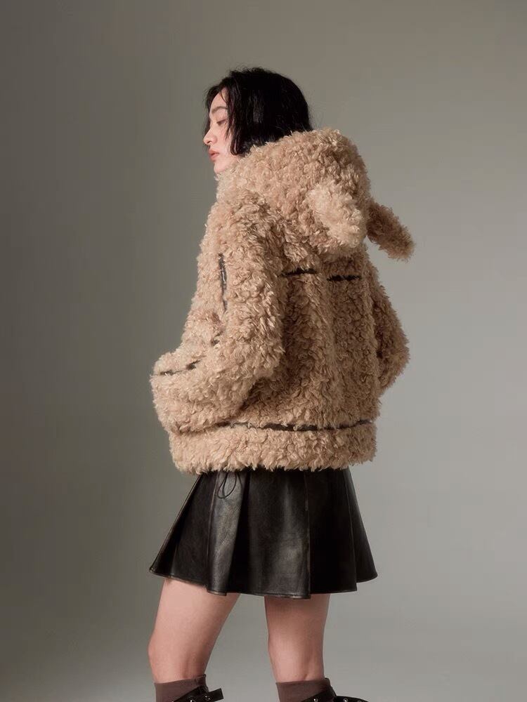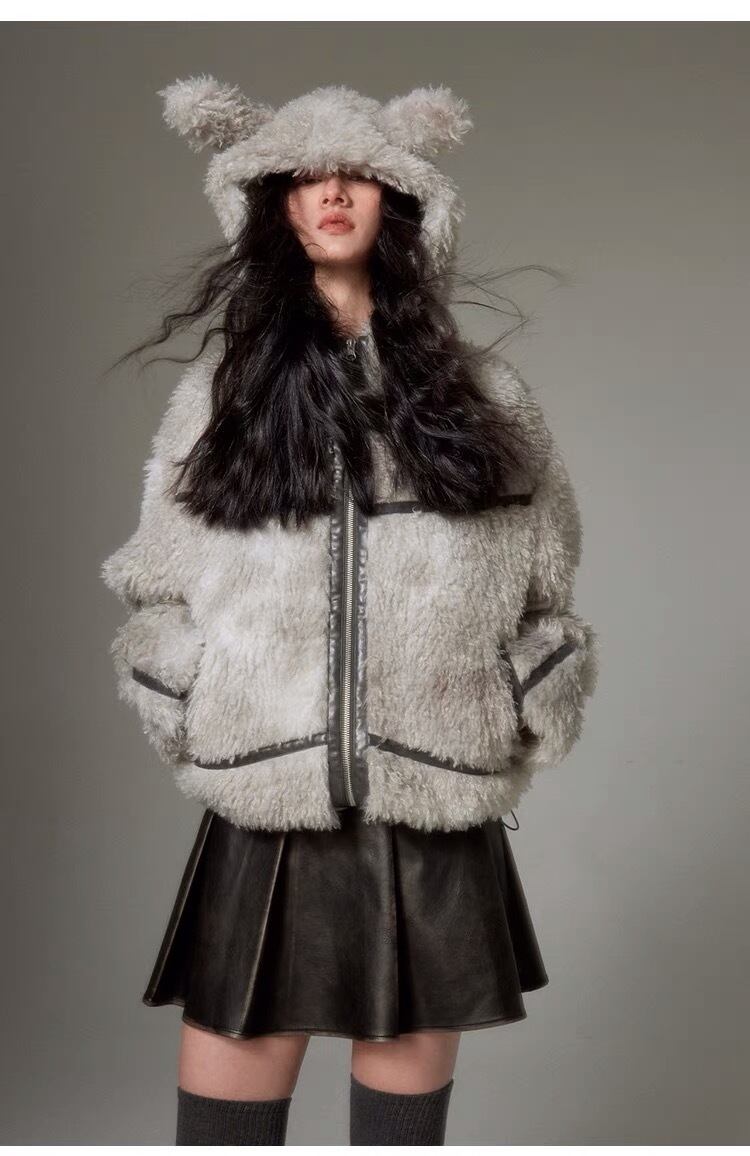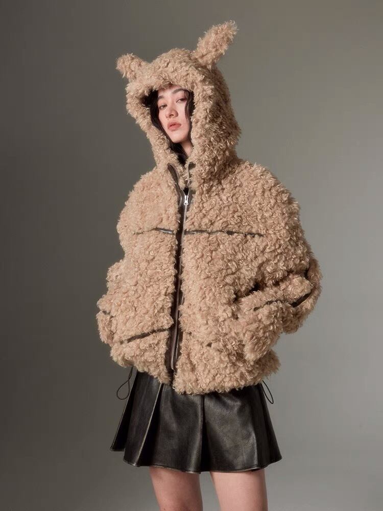 くま パーカー フード 茶色 グレー アウター ジャケット