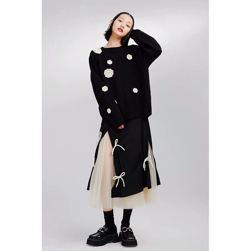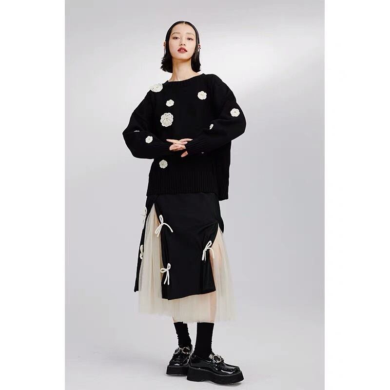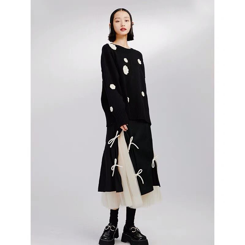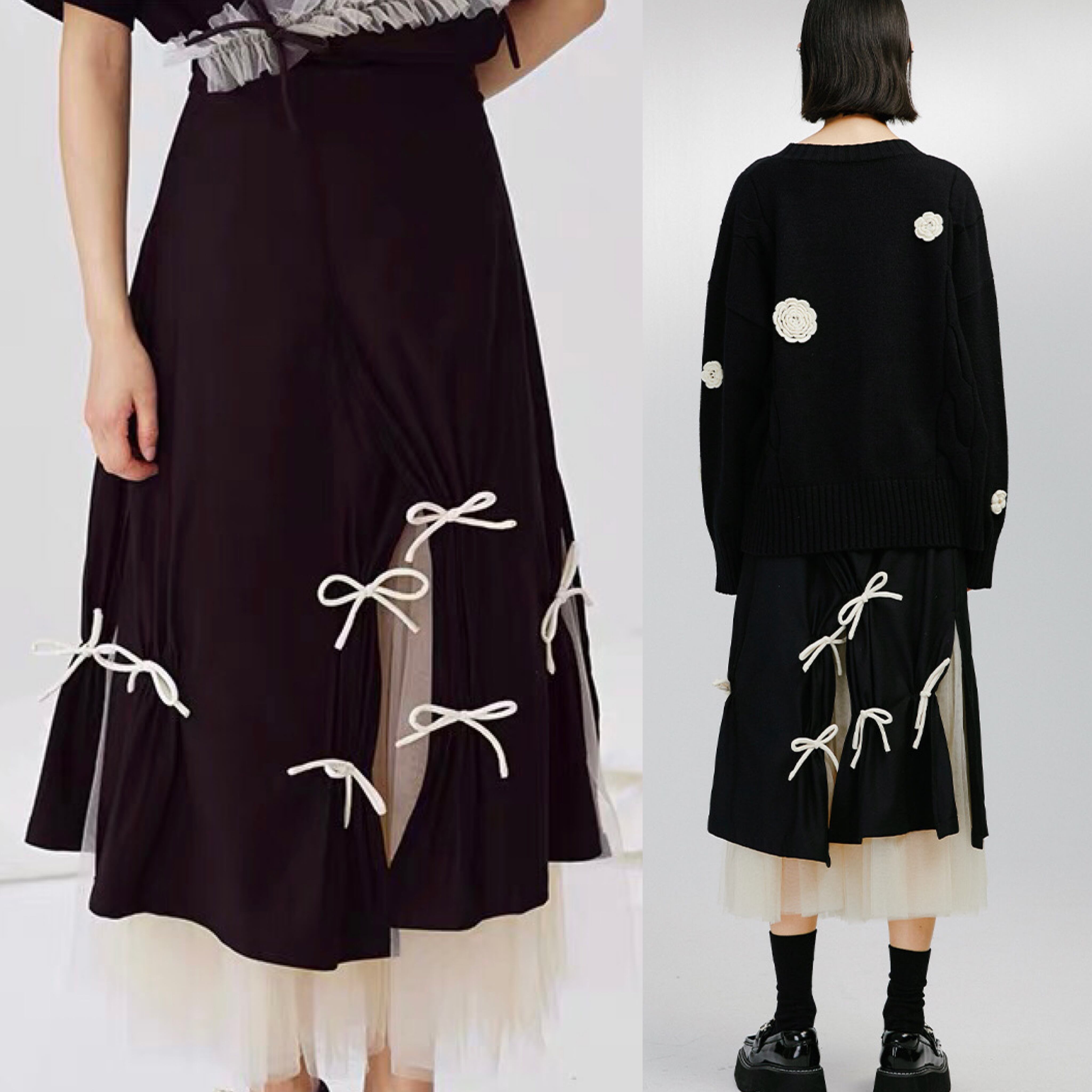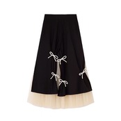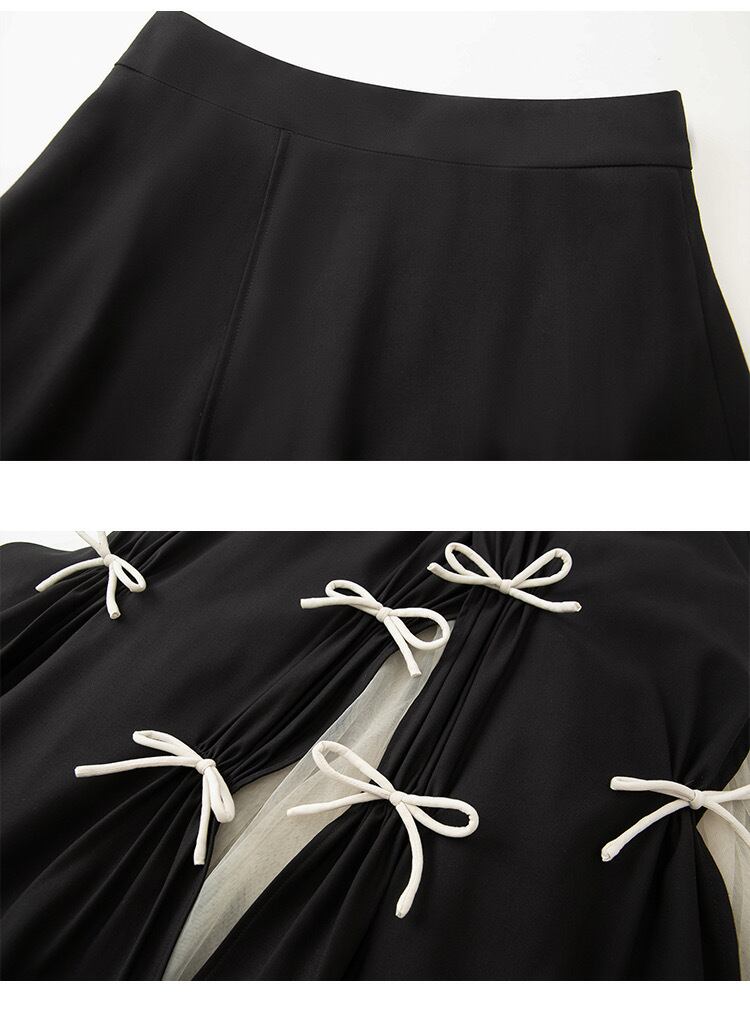 スカート リボン 黒 プリーツスカート 可愛い ボトムス