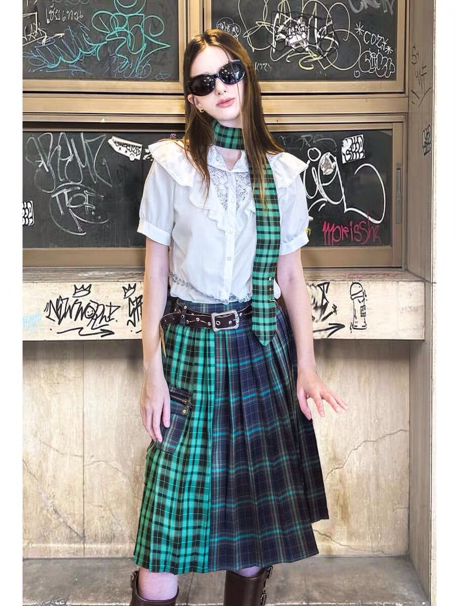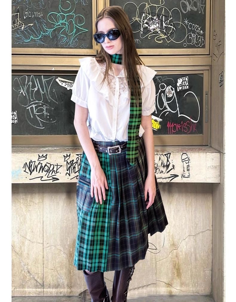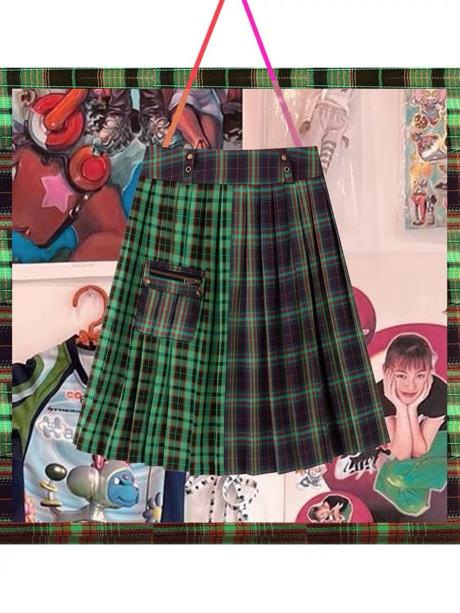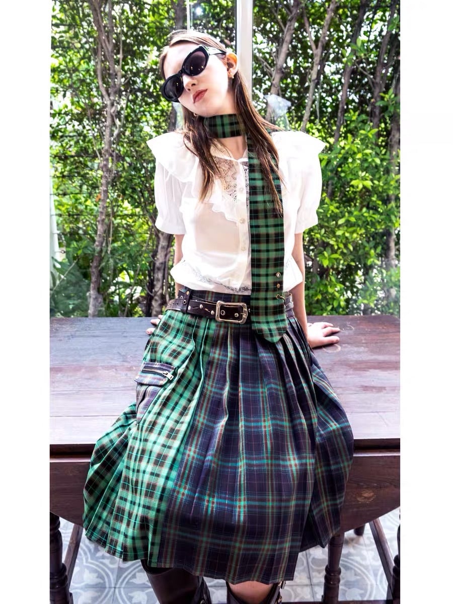 【スカート 】緑 チェック ボトムス ガーリー スクール