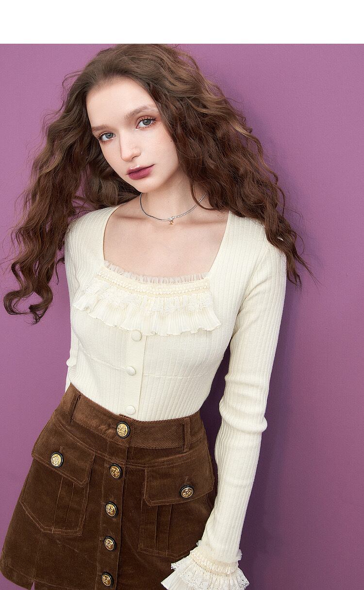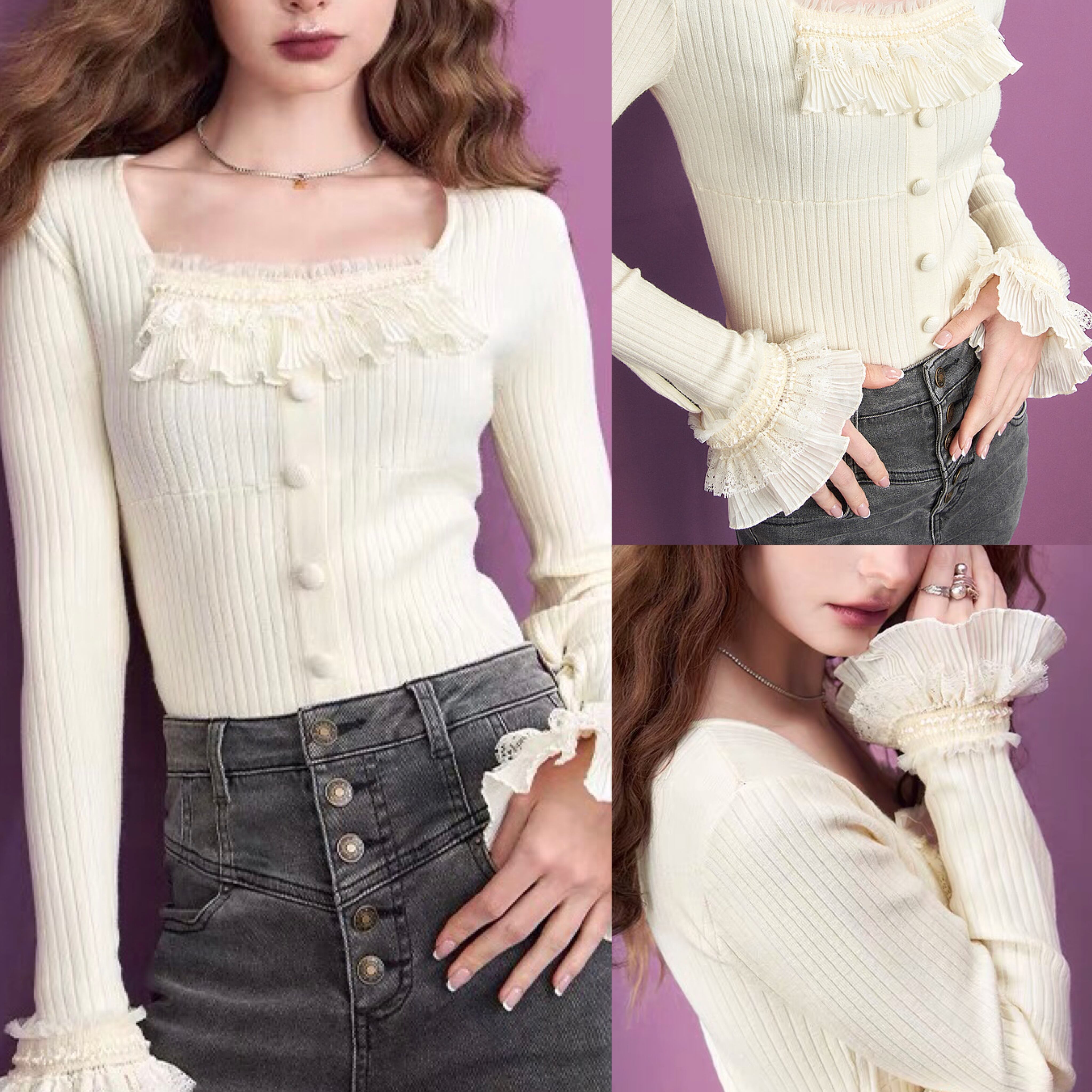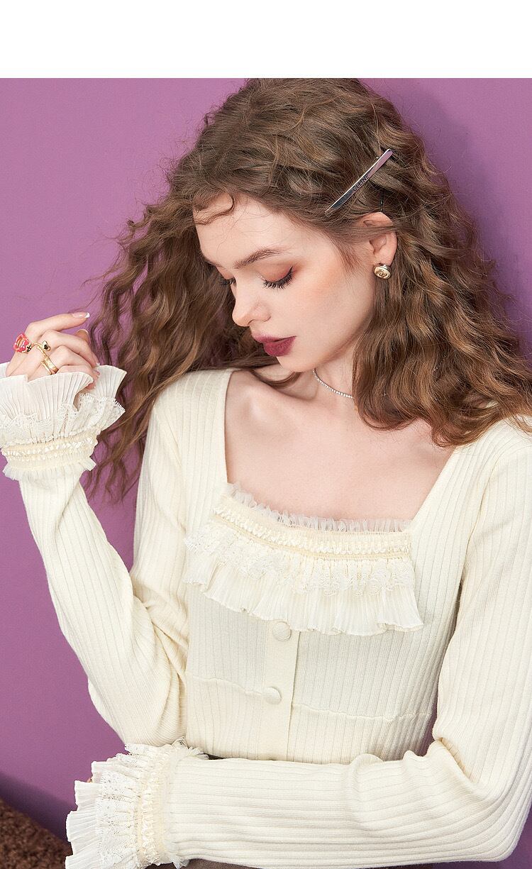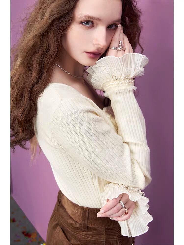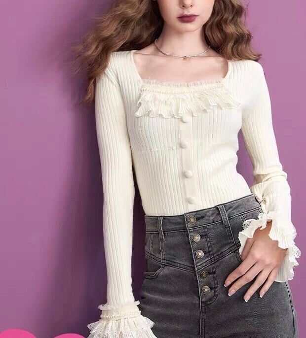 ニット 白 フリル リボン ブラウス トップス セーター ニット