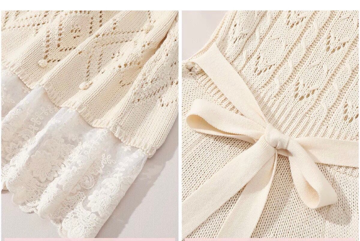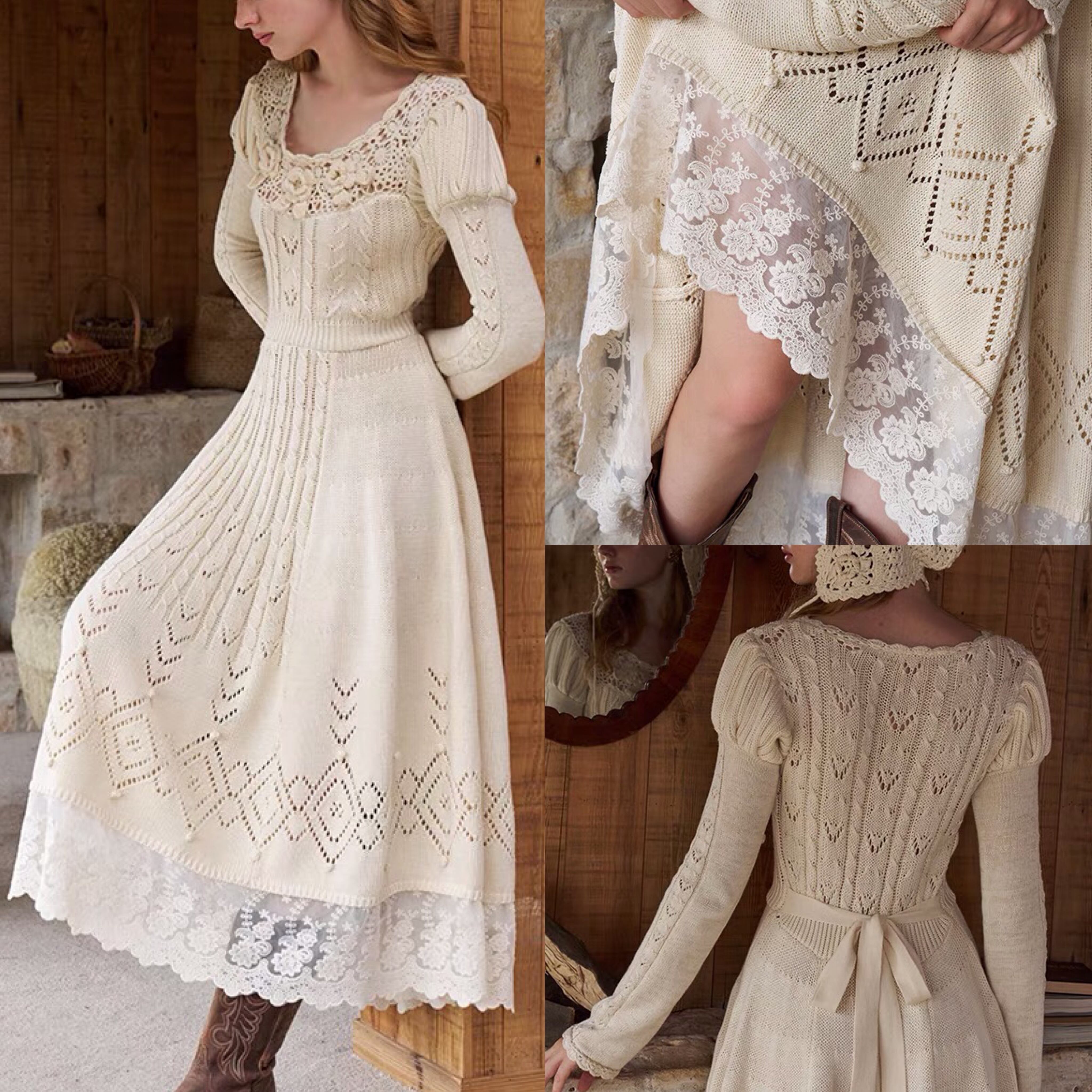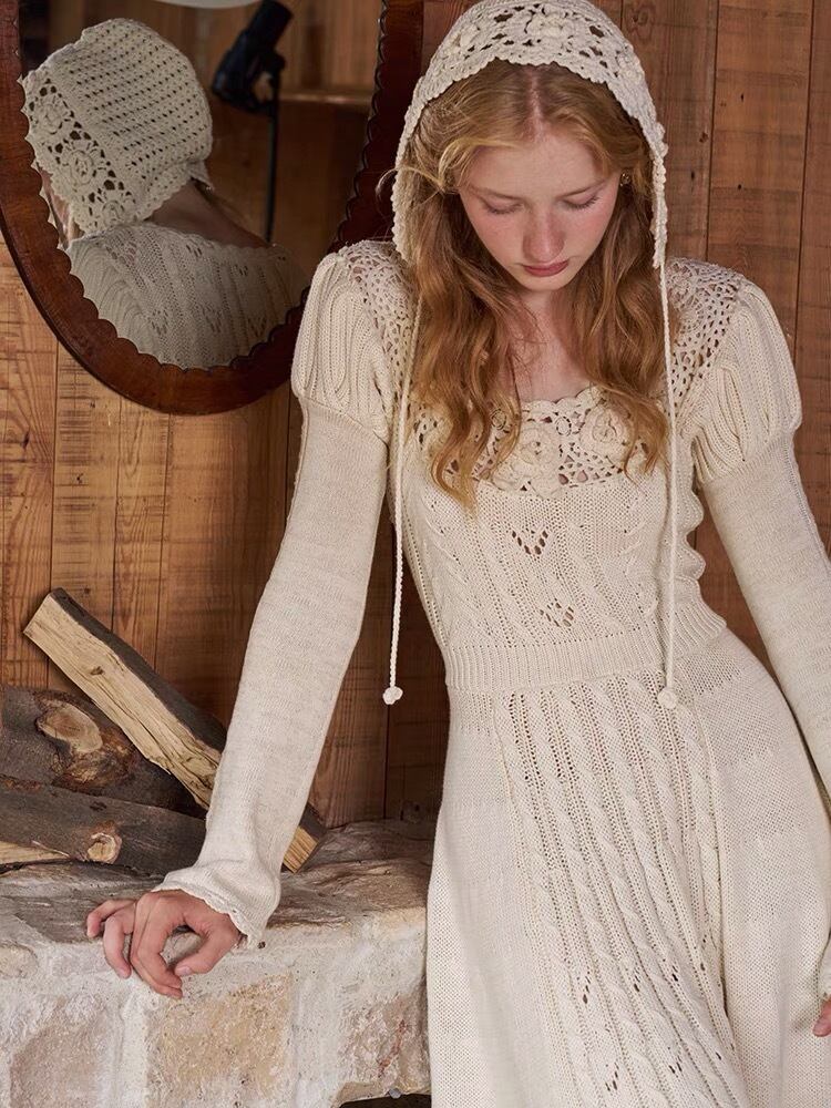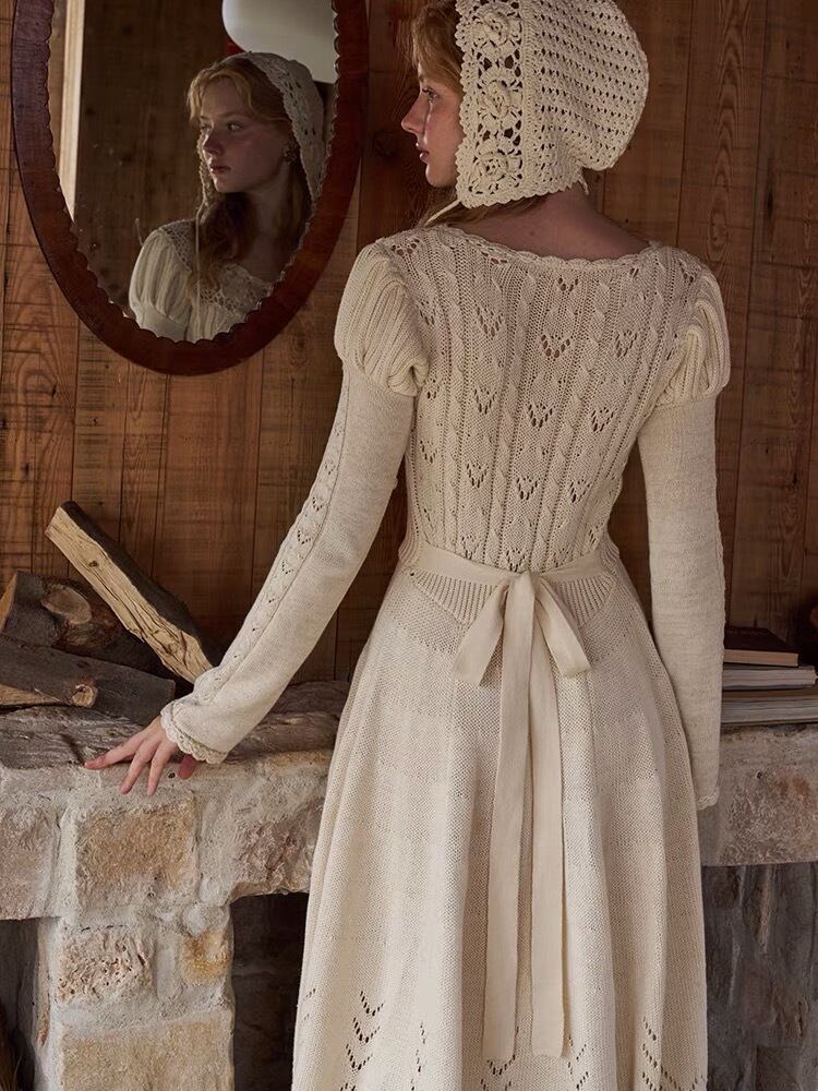白 ホワイト ニット セーター ワンピース ガーリー 花柄