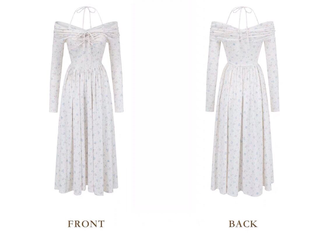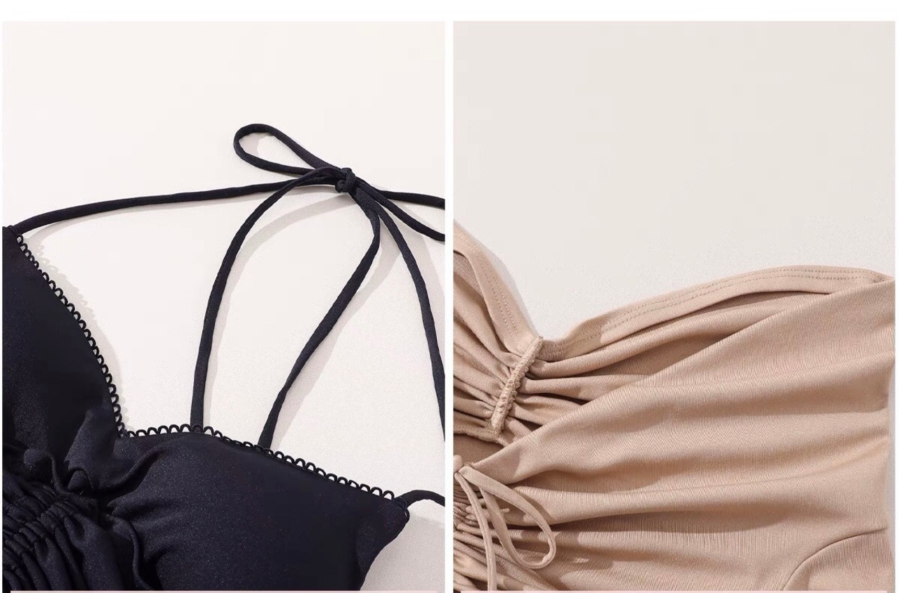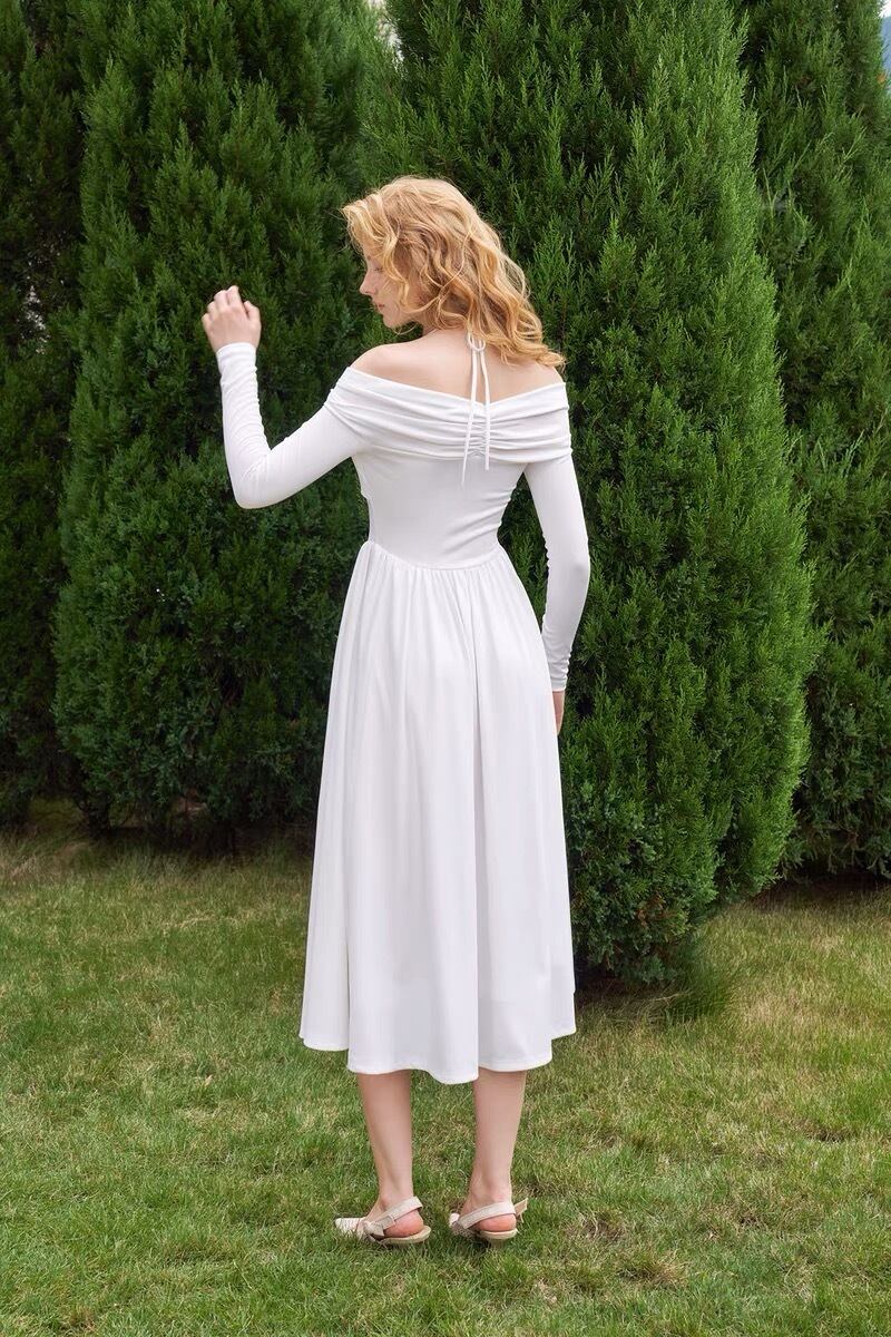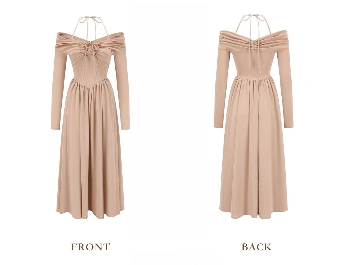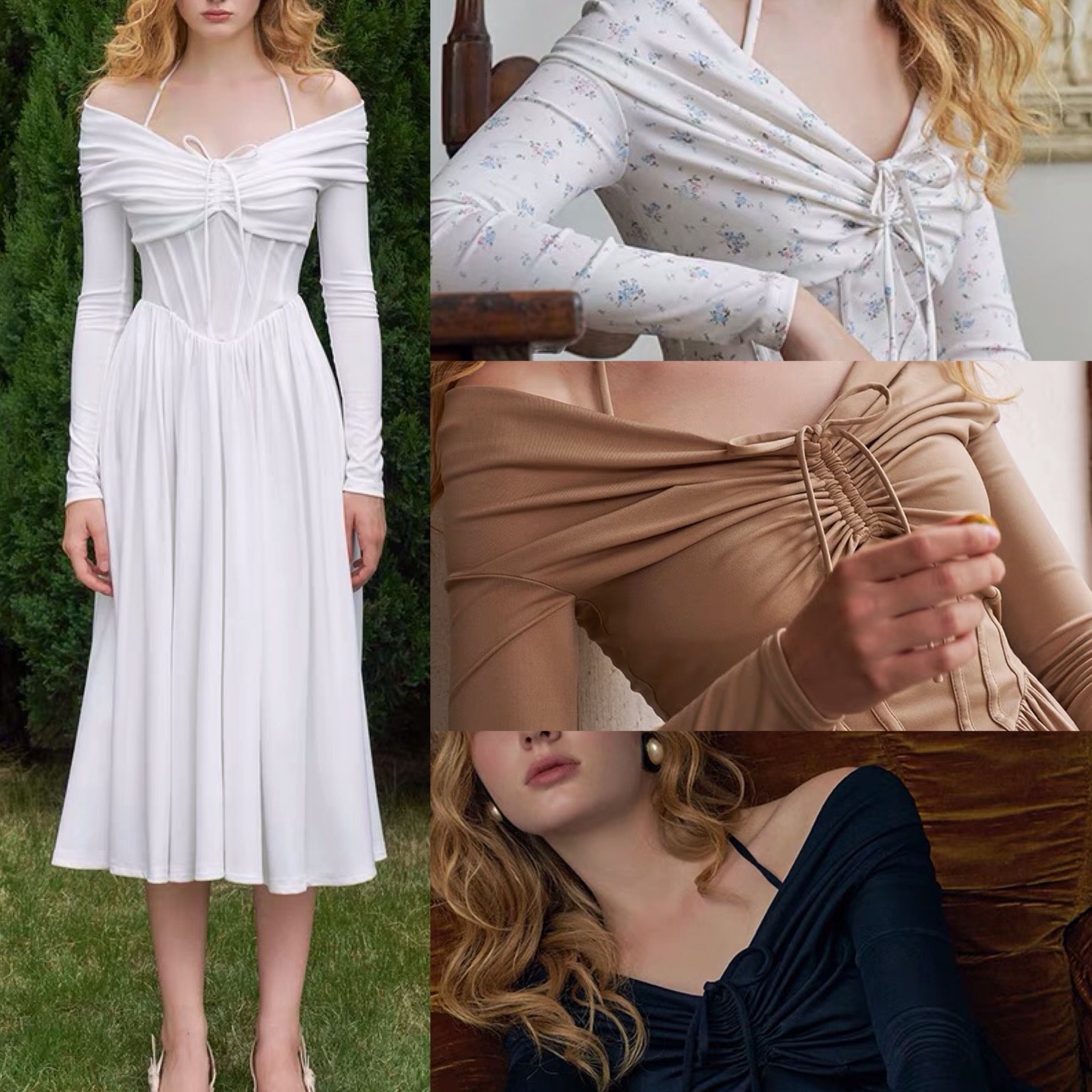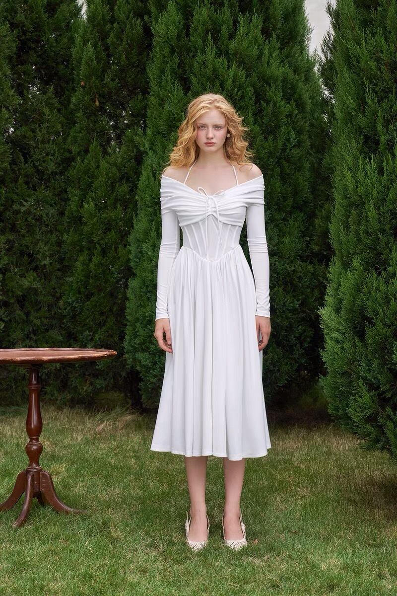 ワンピース ベージュ 黒 白 オフショルダー リボン かじ