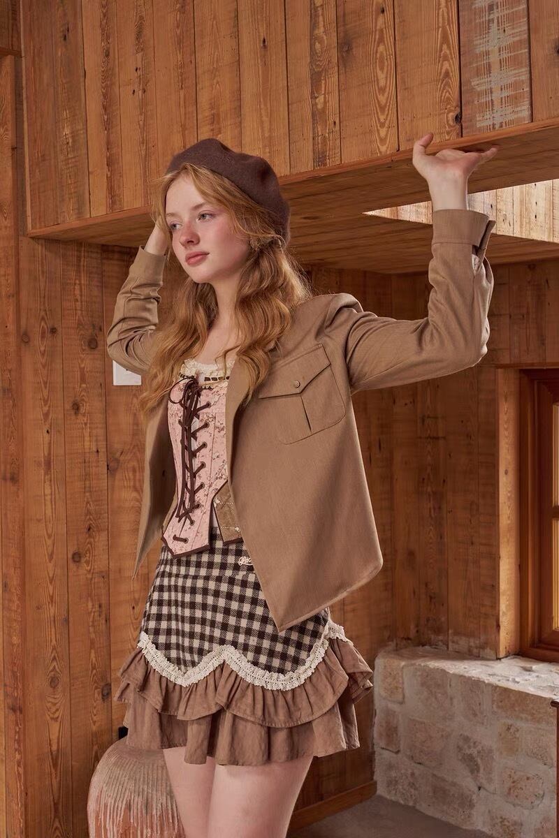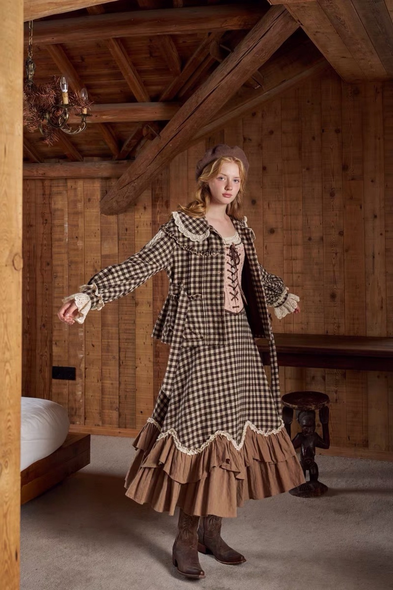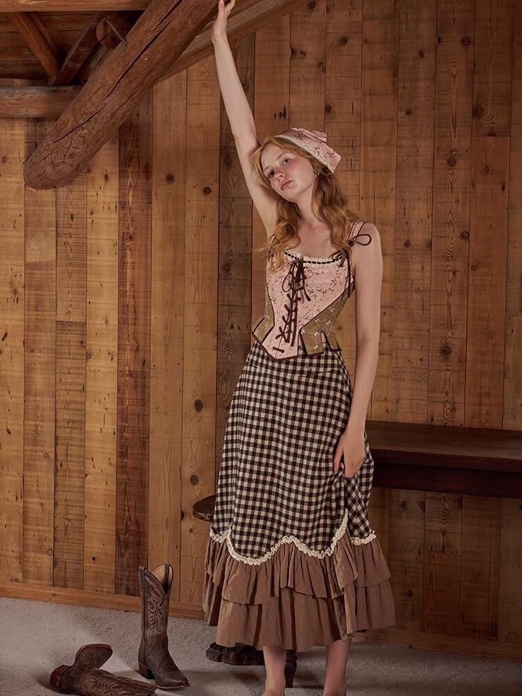 【スカート 】チェック 茶色 フレア ボトムス ガーリー かわいい
