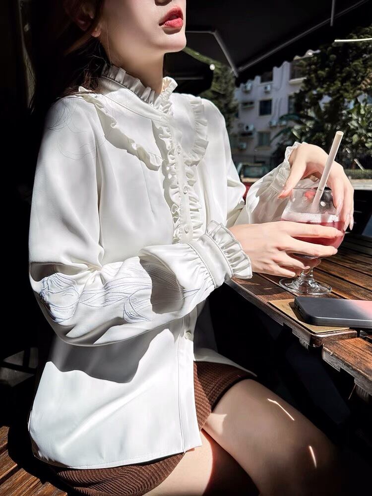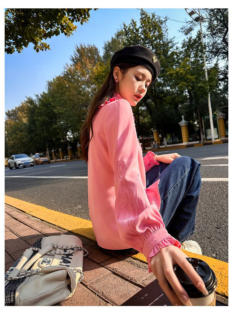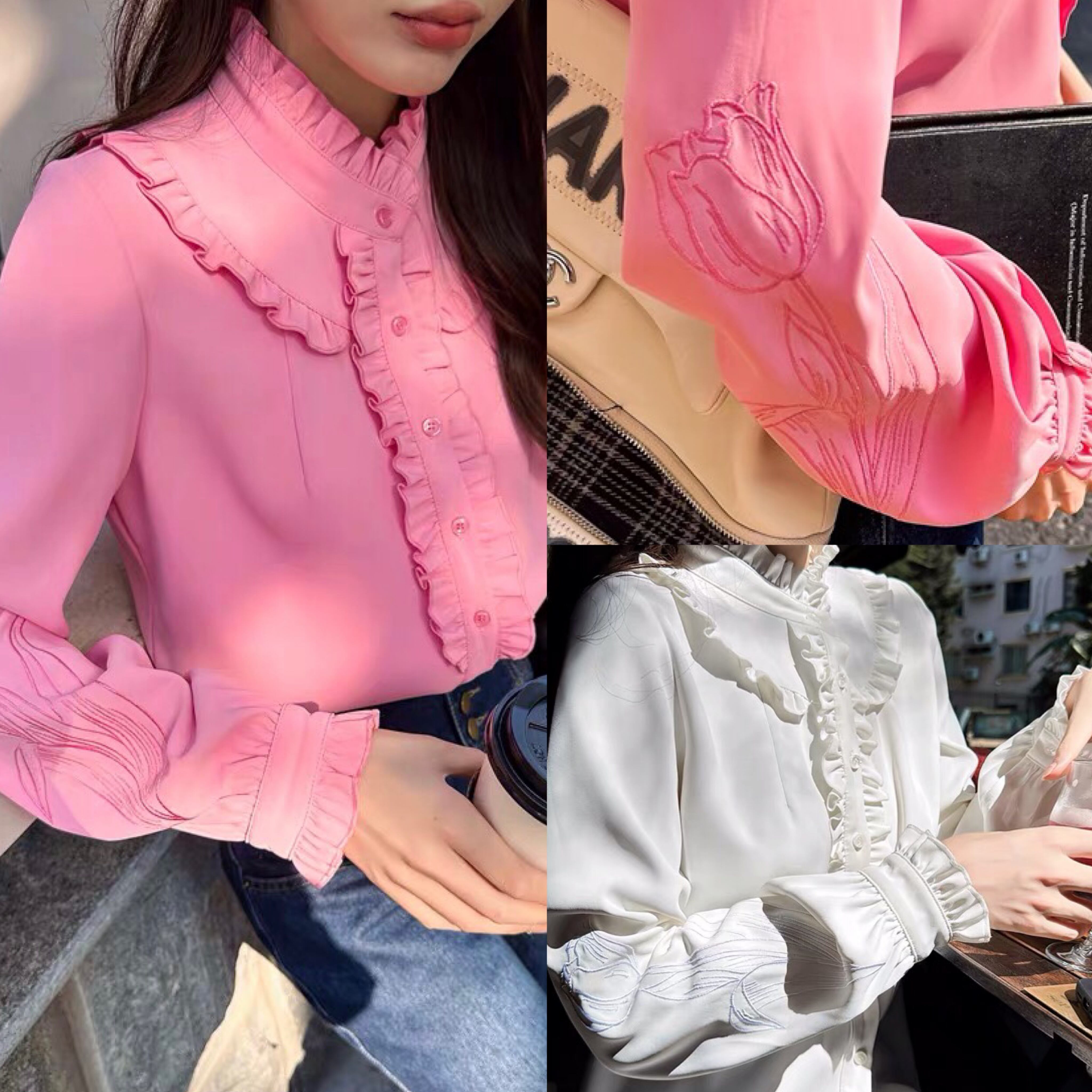 ピンク 花柄 ブラウス 白 フラワー エレガント XL