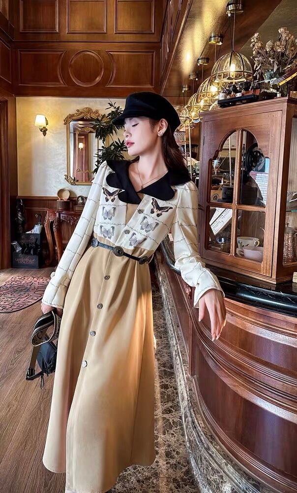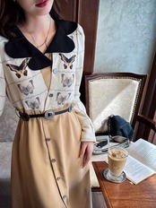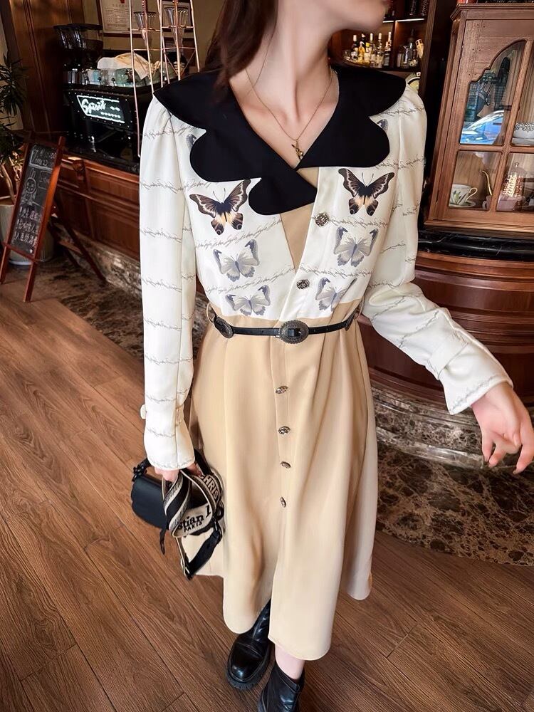ワンピース バタフライ ブラウス スカート 黄色 ベージュ