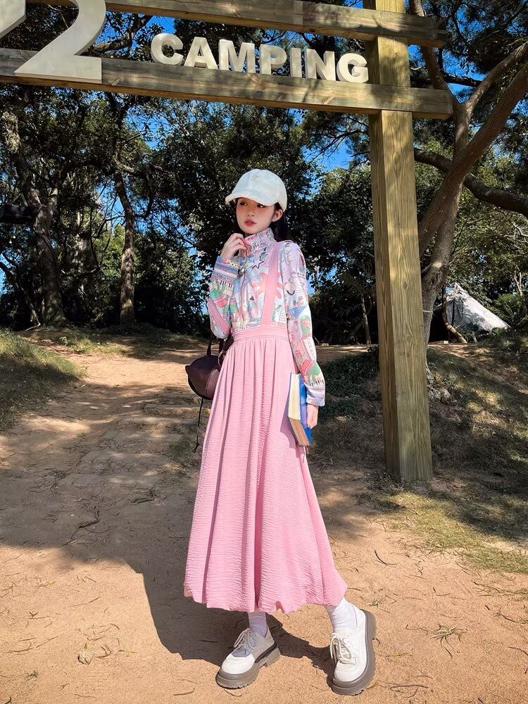 ピンク ジャンパースカート ワンピース 可愛い ガーリー