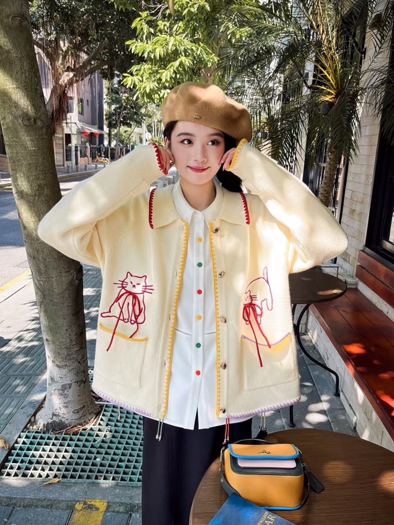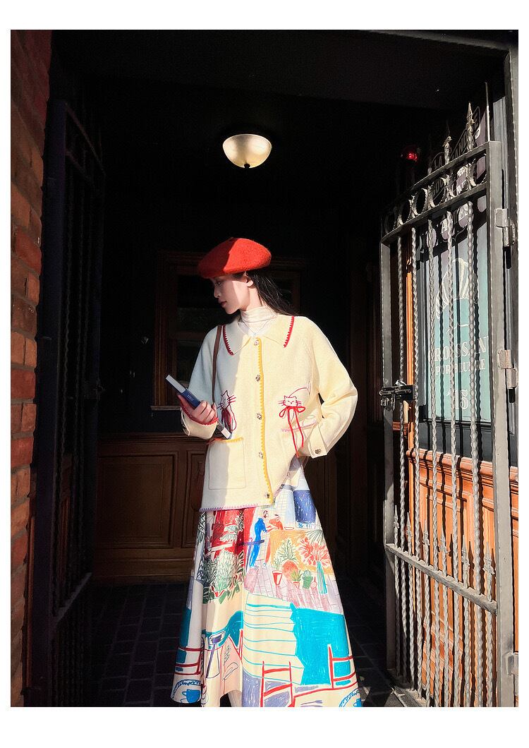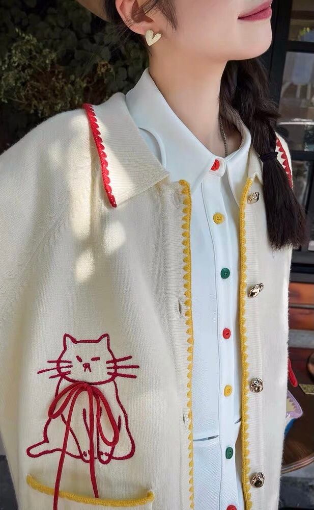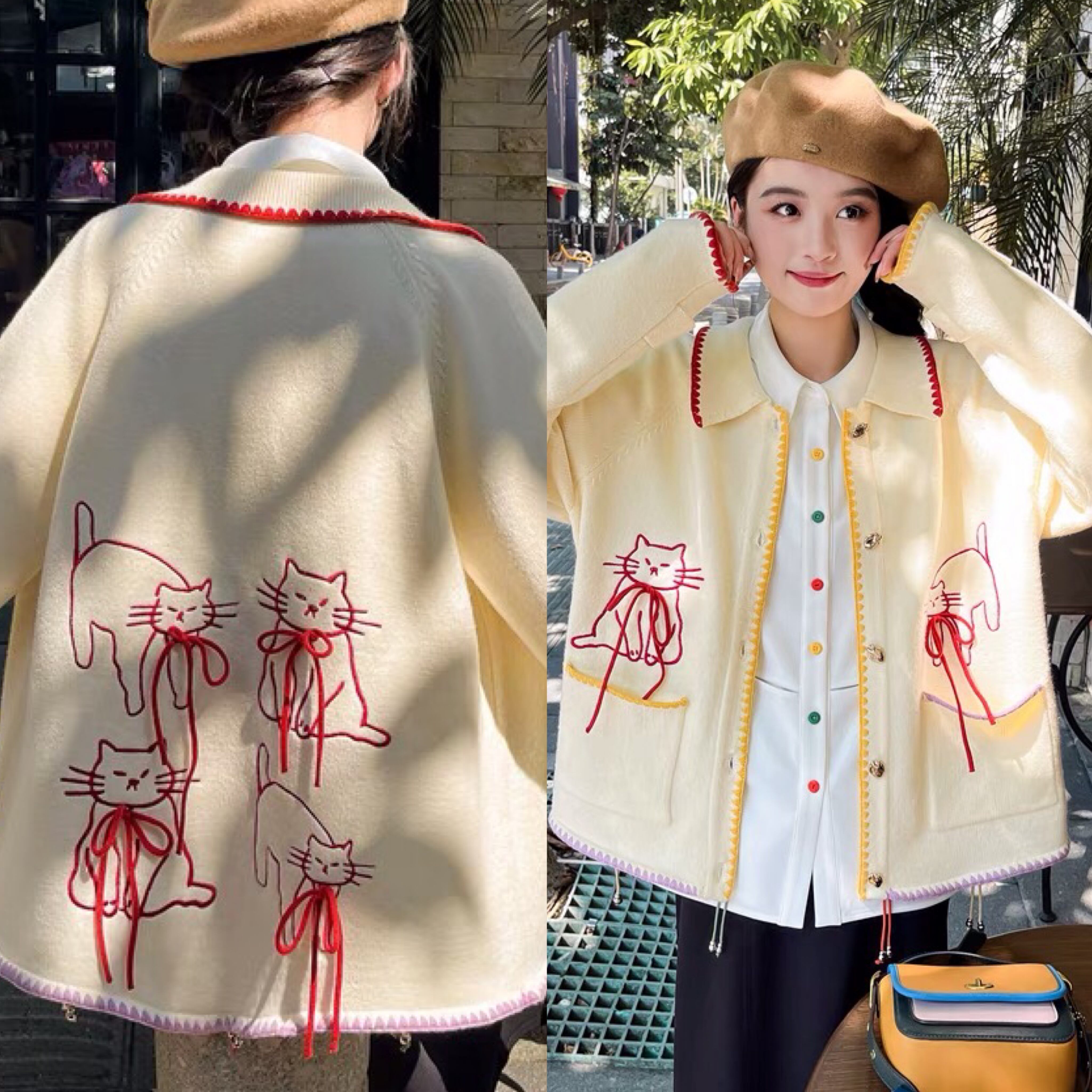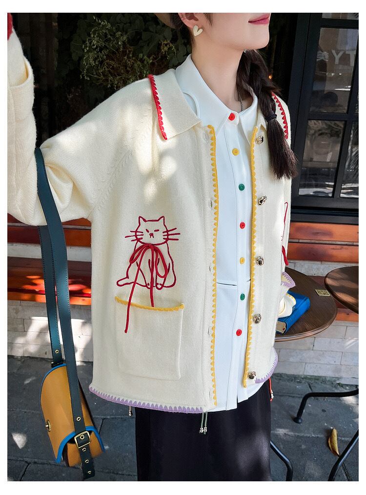 ニット カーディガン アウター ジャケット ねこ リボン かわいい