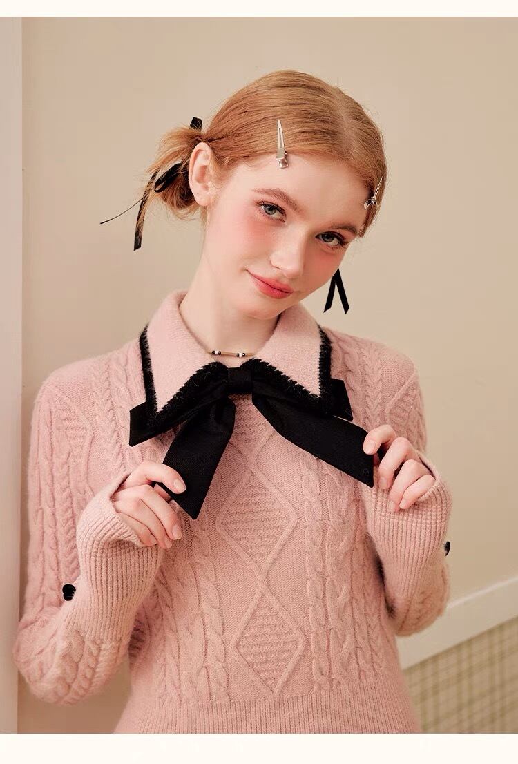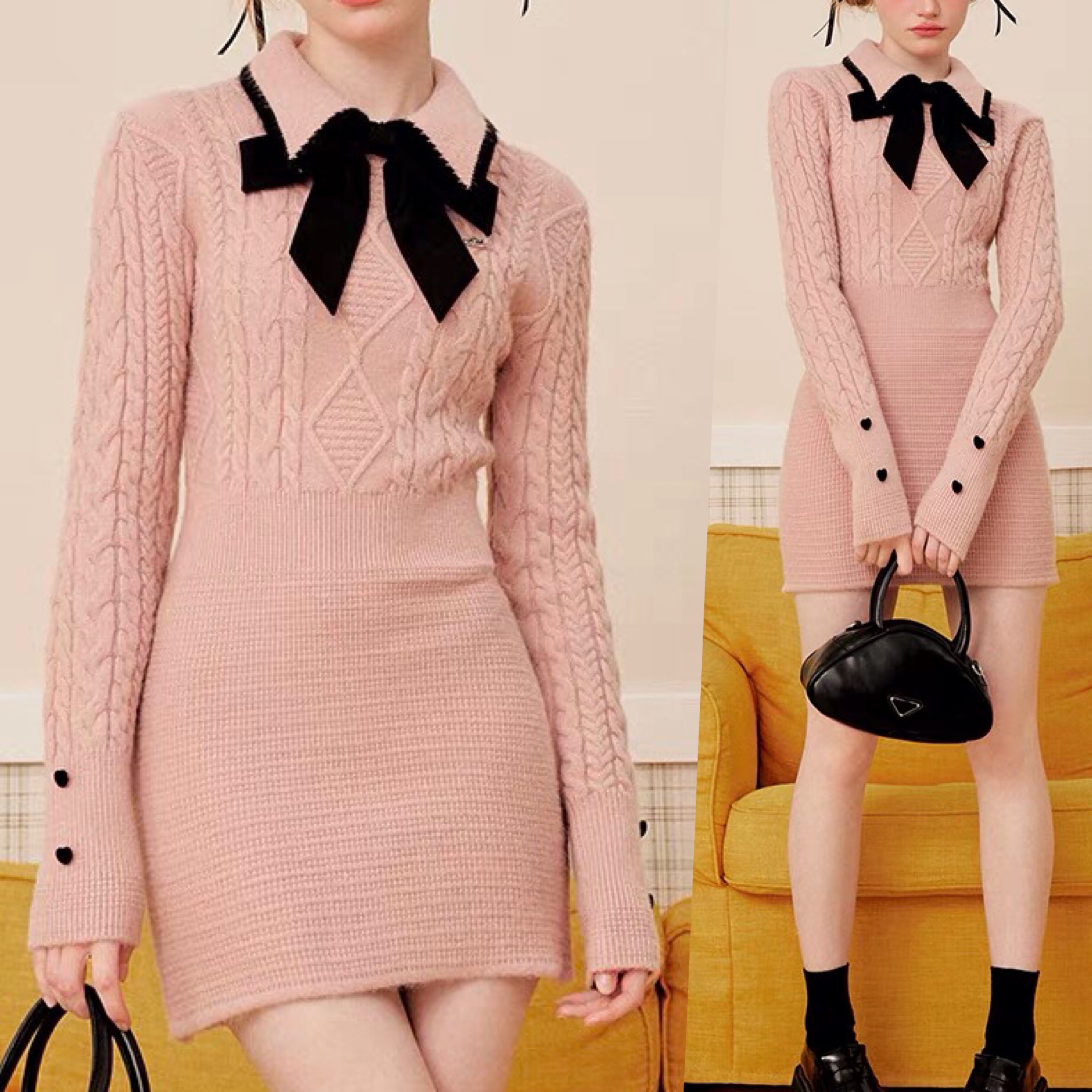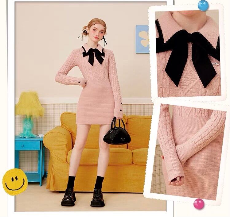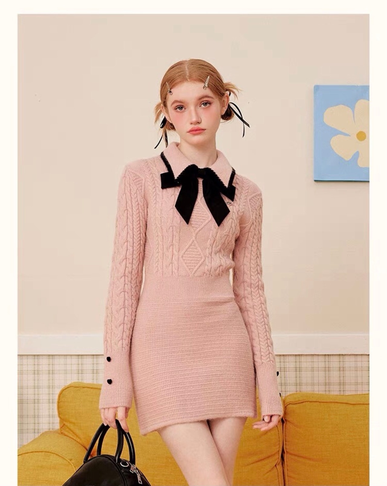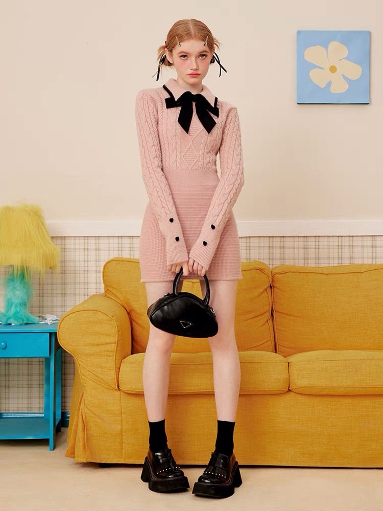 ワンピース ピンク セーター リボン カジュアル ガーリー