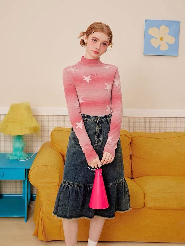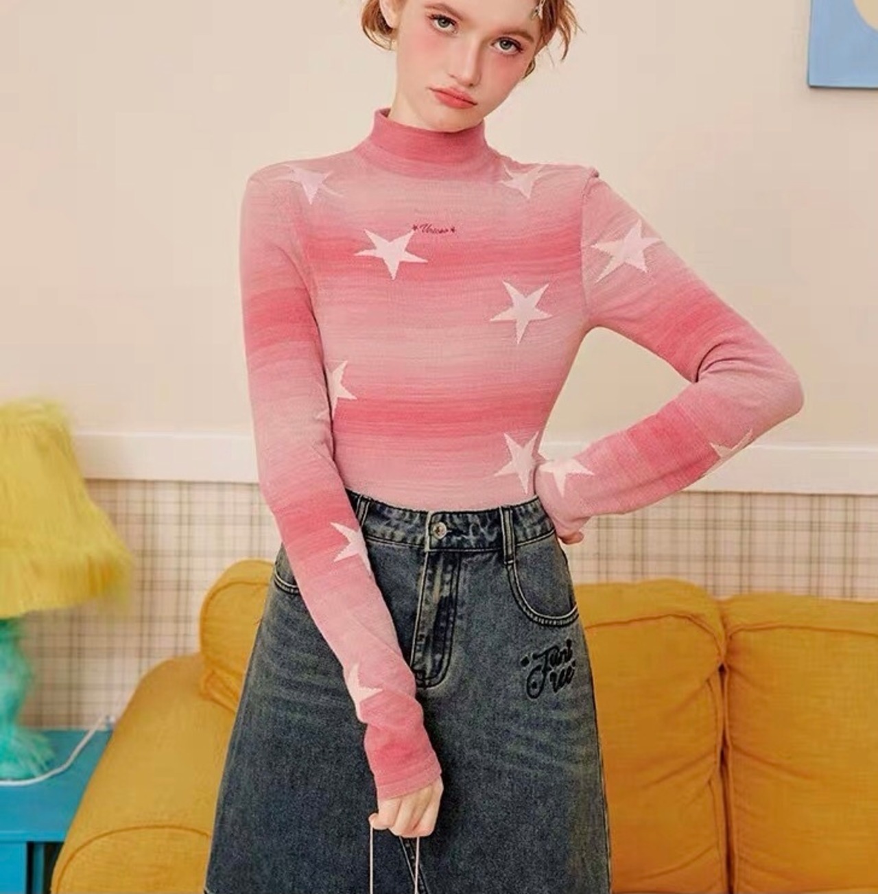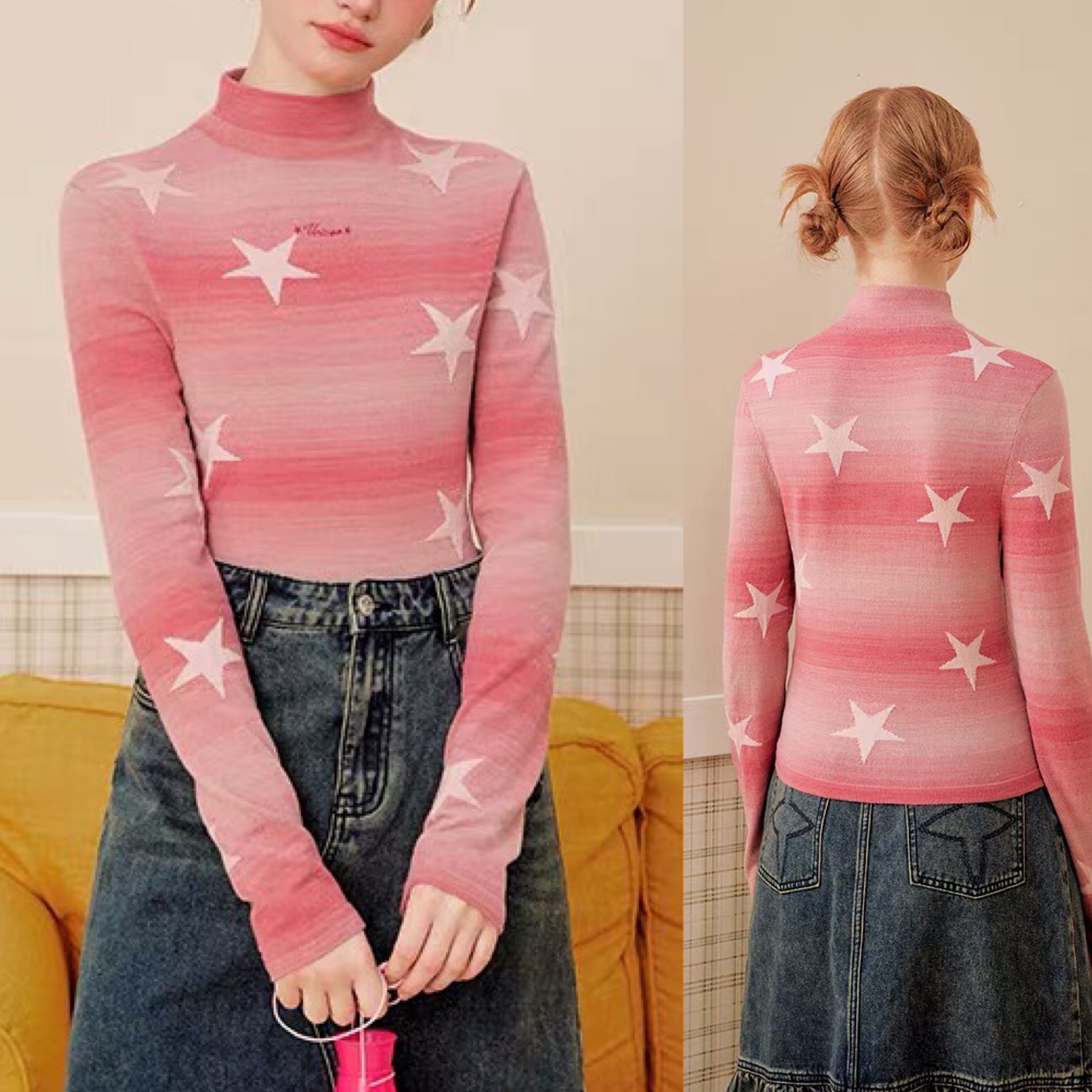 ★サイズ ピンク ブラウス ハイネック トップス 星