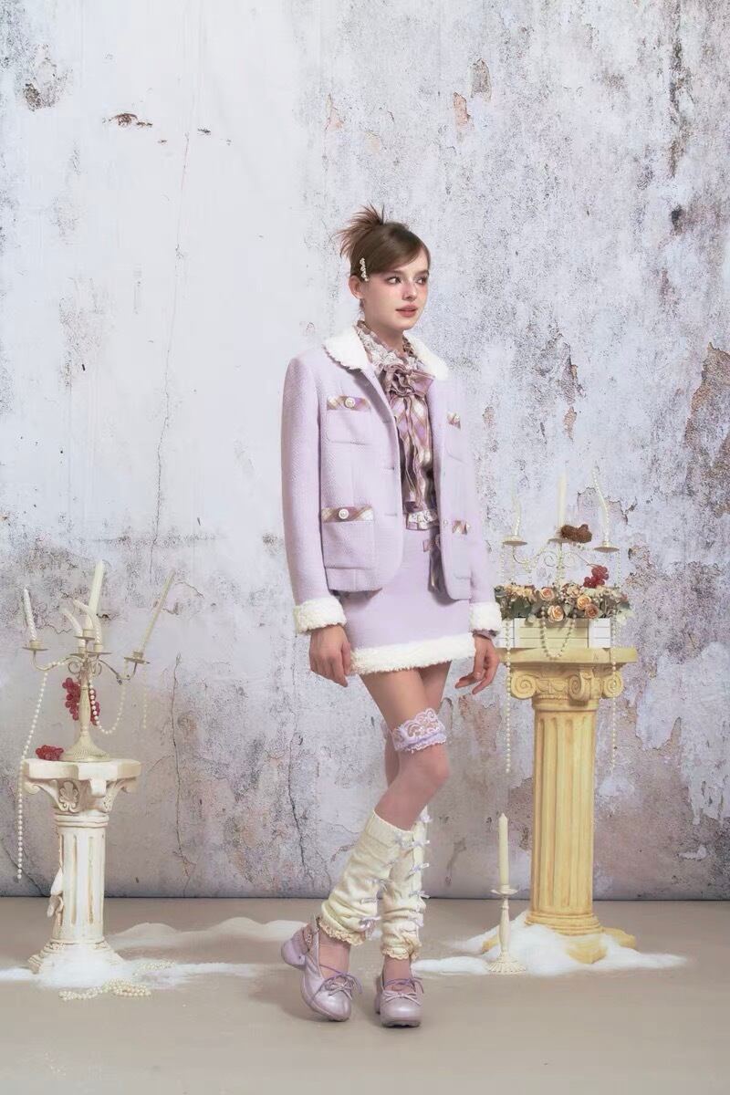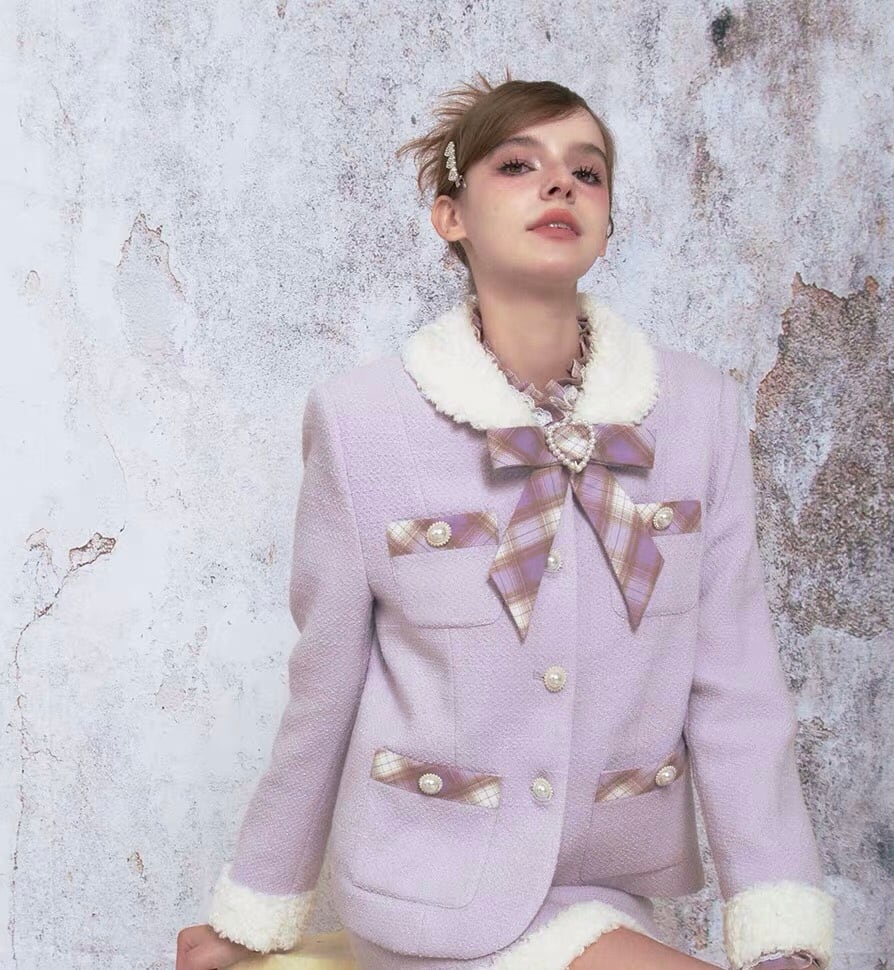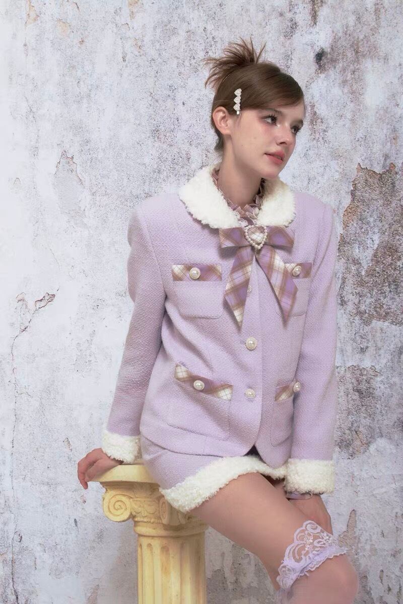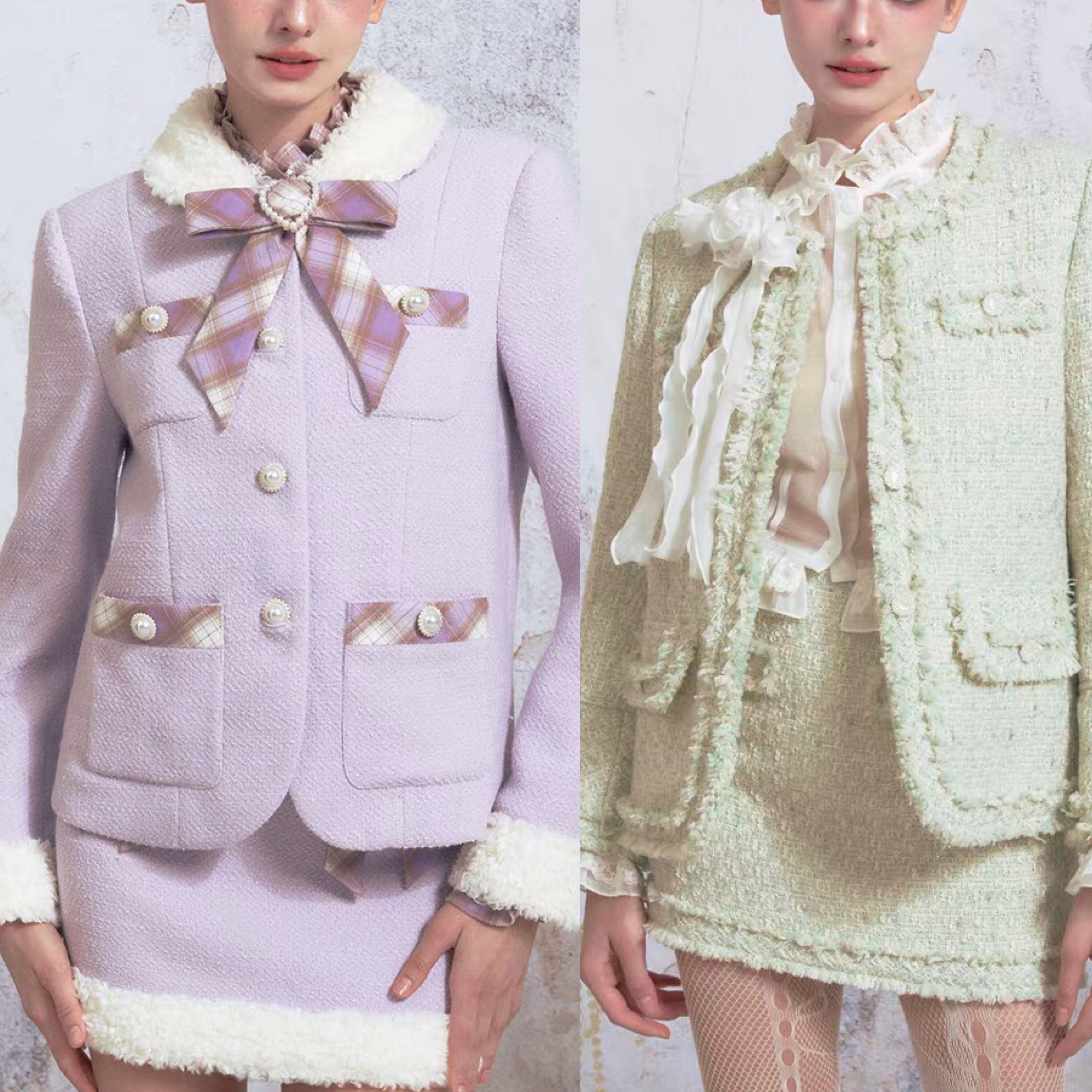 【ジャケット】紫 ツイード 緑 ガーリー アウター カーディガン