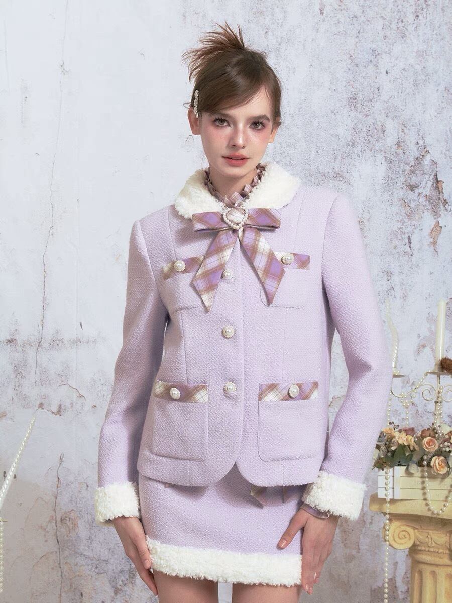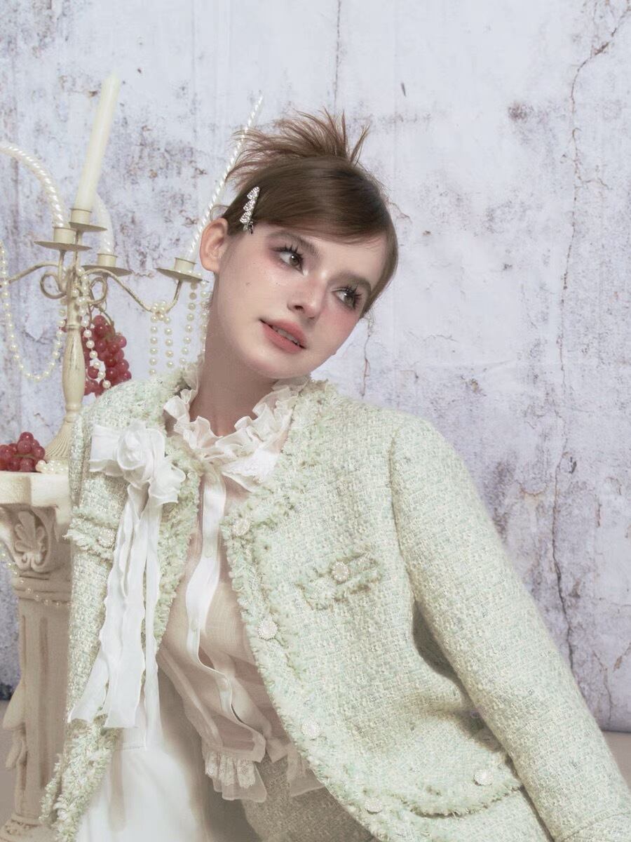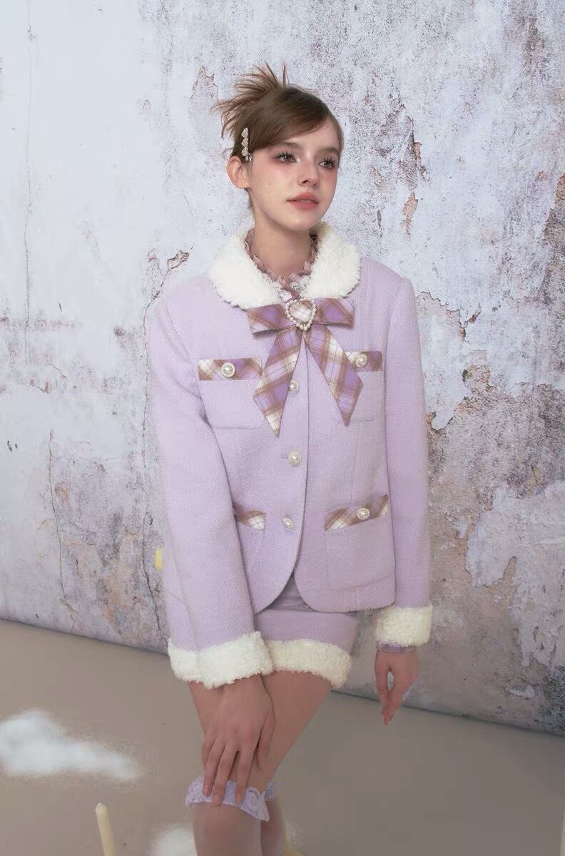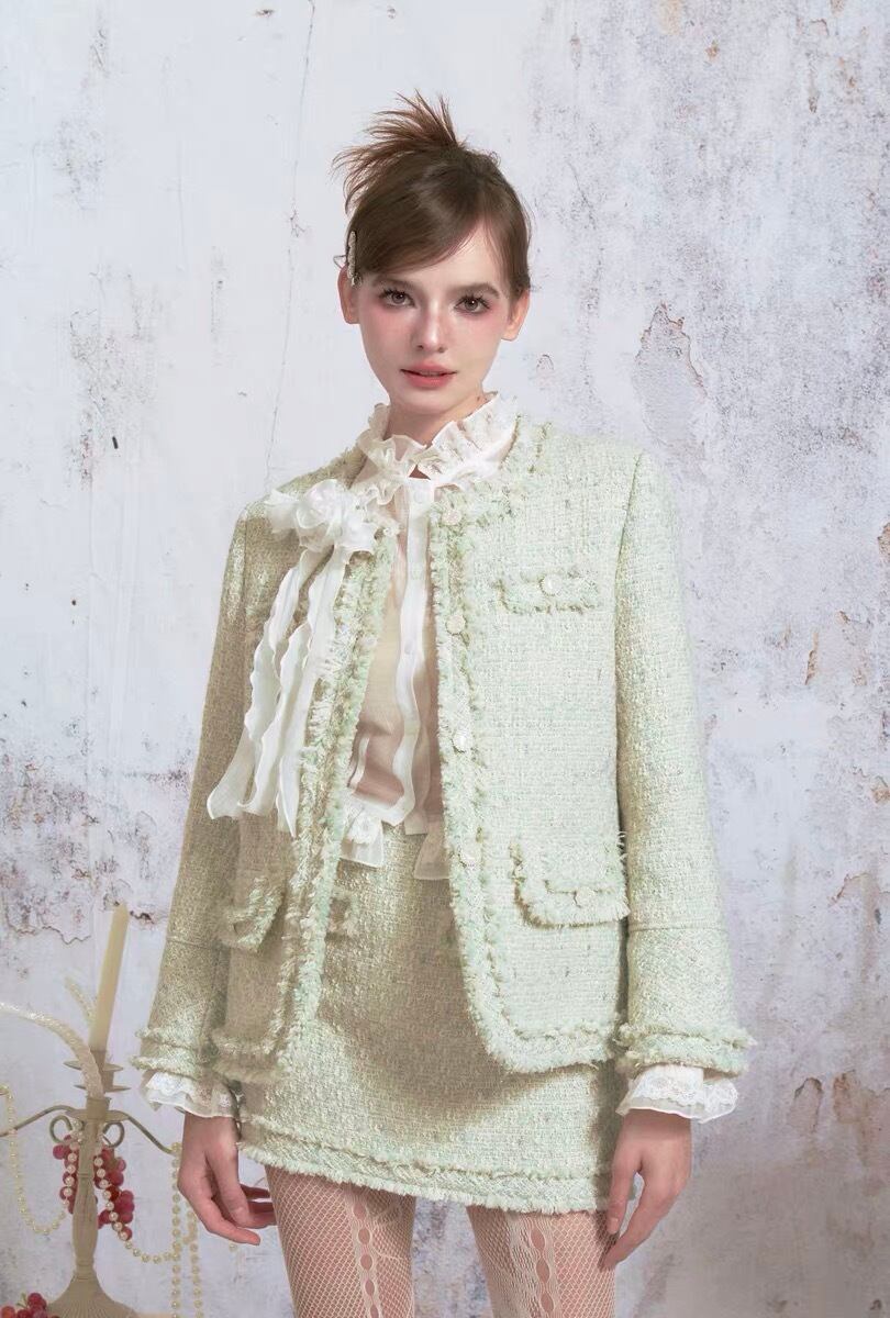 【ジャケット】紫 ツイード 緑 ガーリー アウター カーディガン