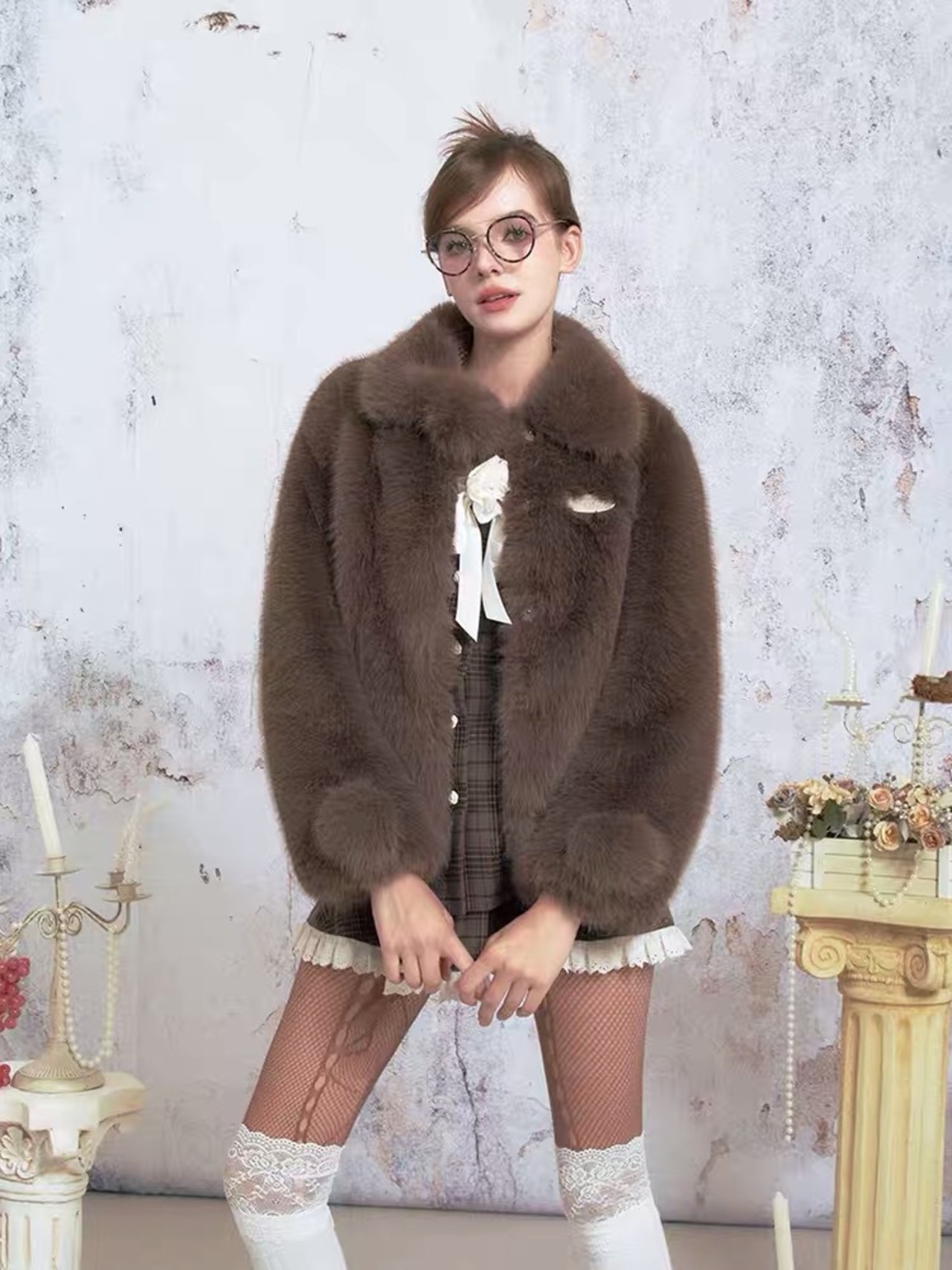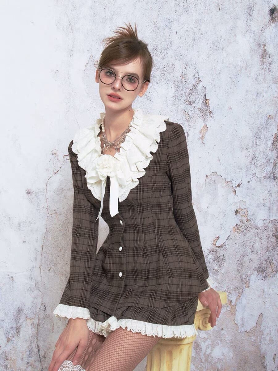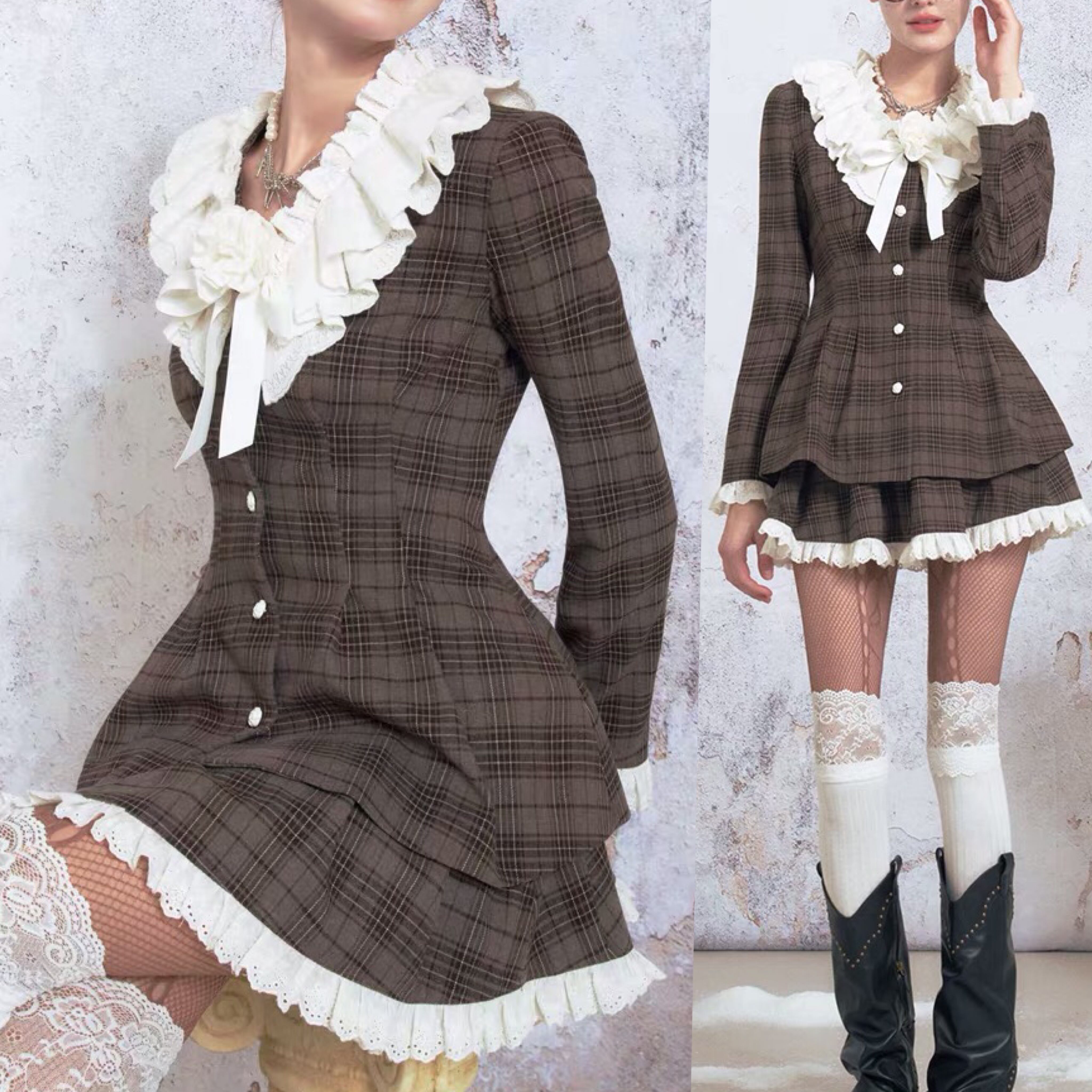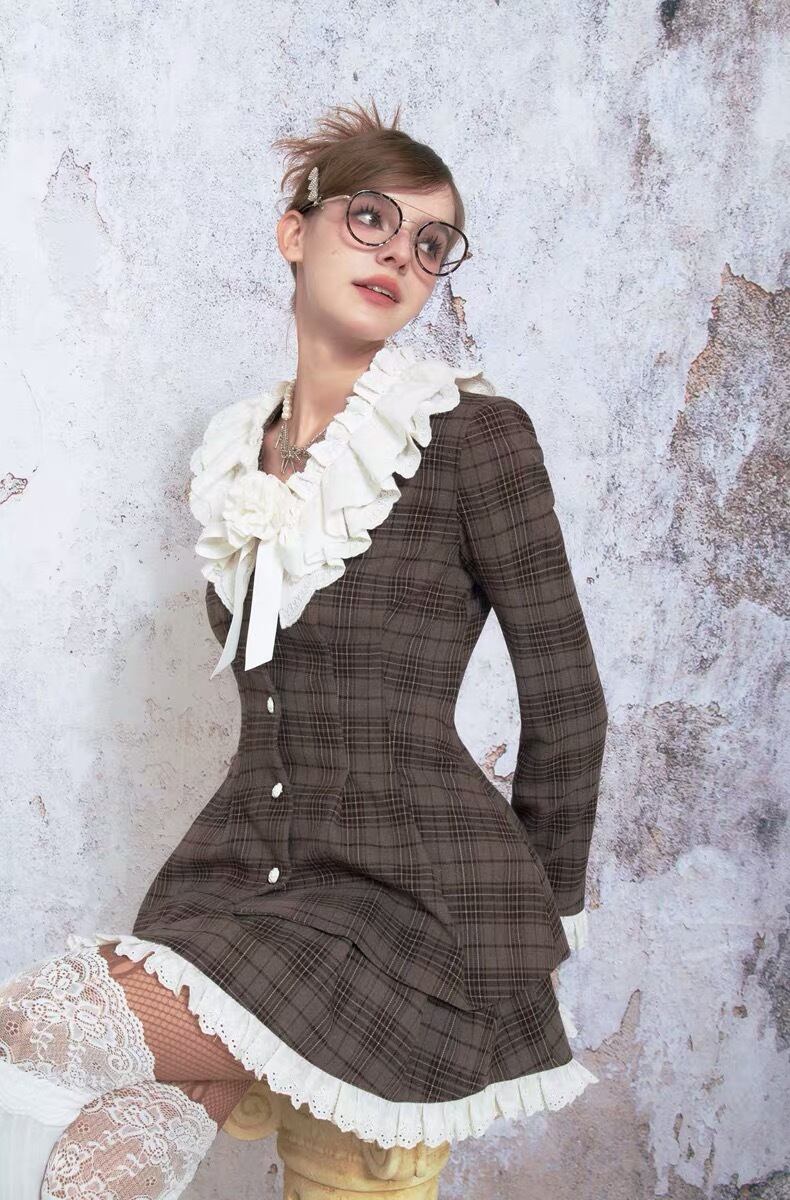 ジャケット ワンピース 茶色 チェック ガーリー アウター