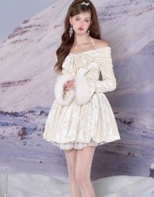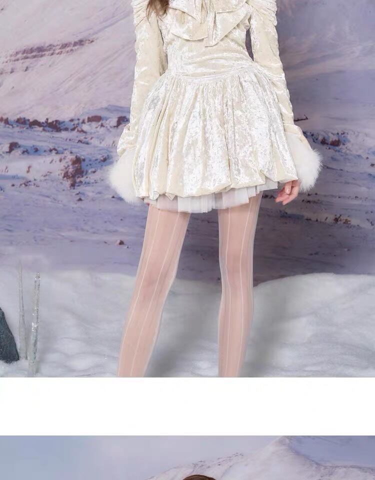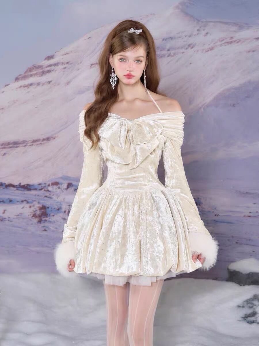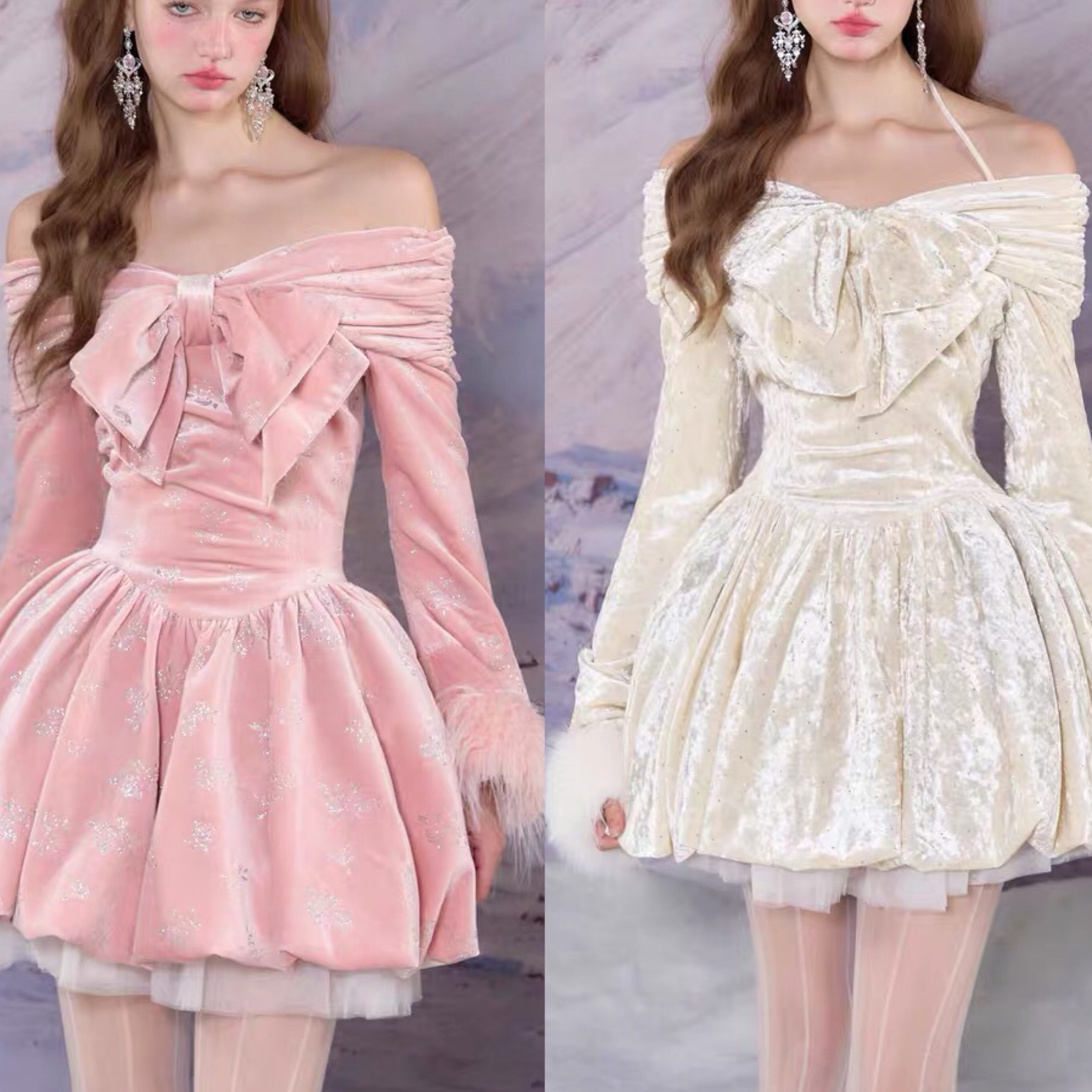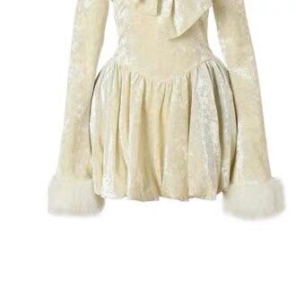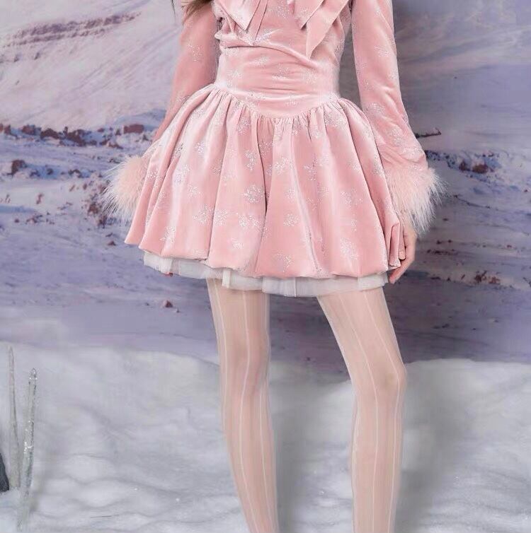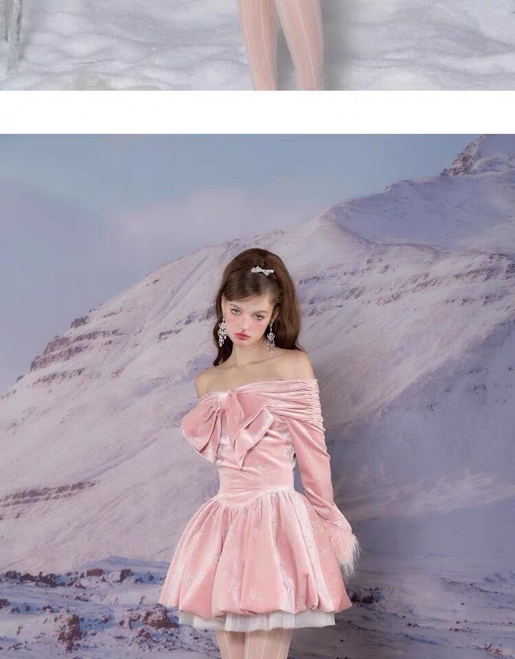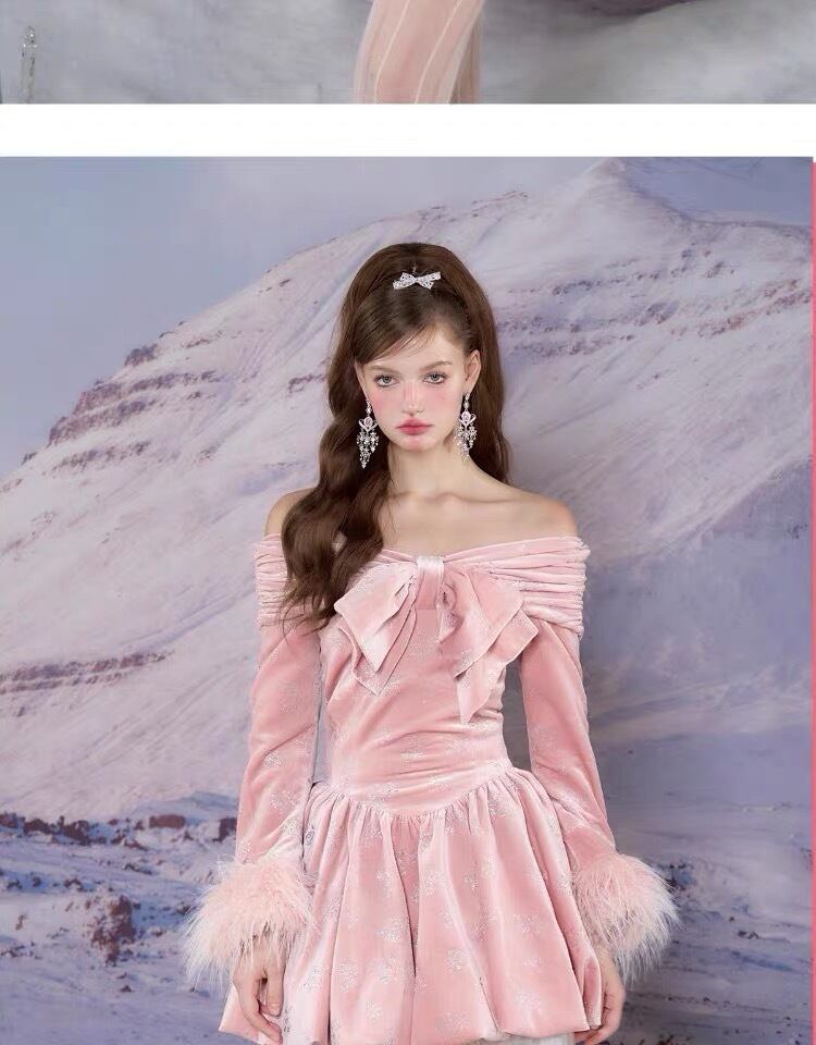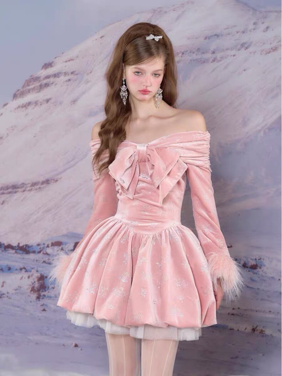 ワンピース ピンク ホワイト ベルベット ベロア リボン ガーリー
