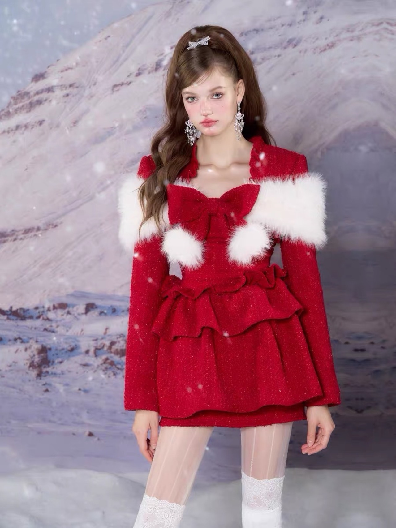 【ワンピース】白 赤 ワンピース ガーリー 可愛い クリスマス