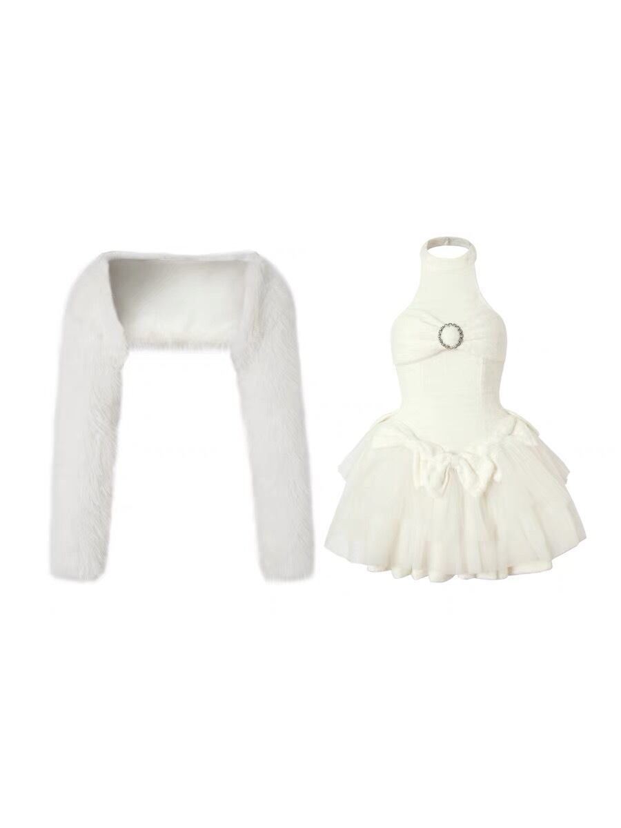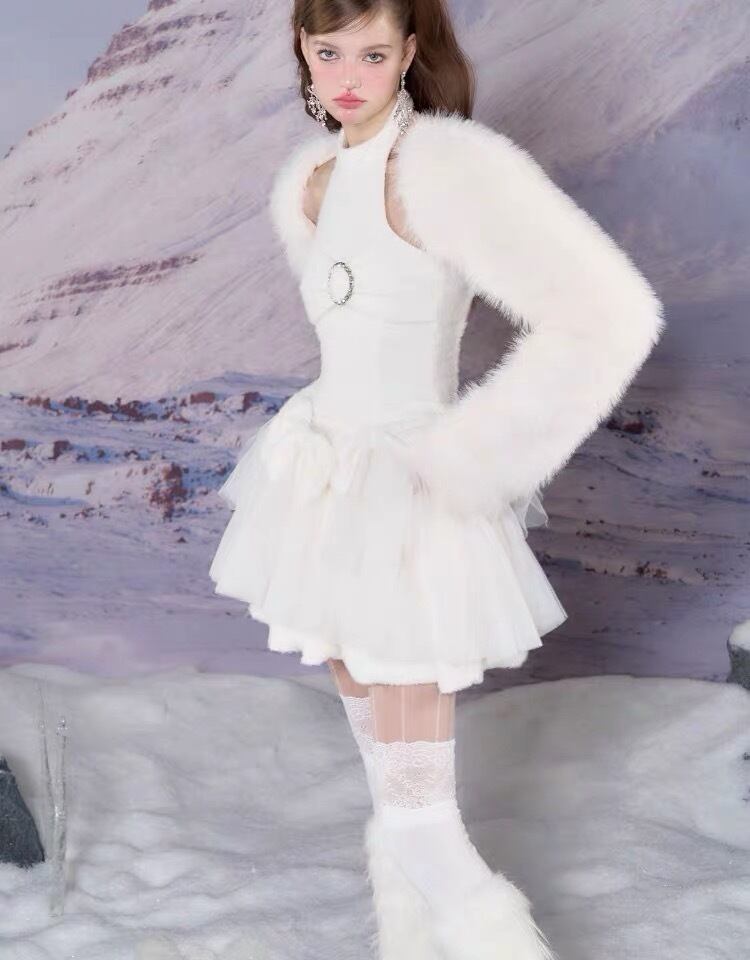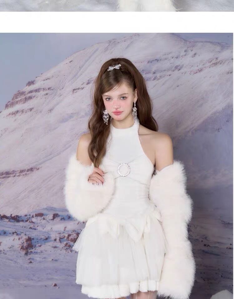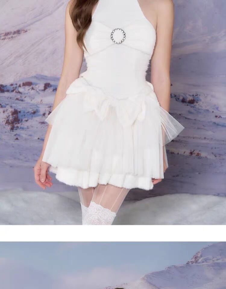 【ワンピース】白 ホワイト モヘア スカート クリスマス