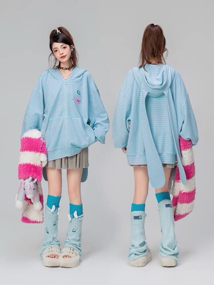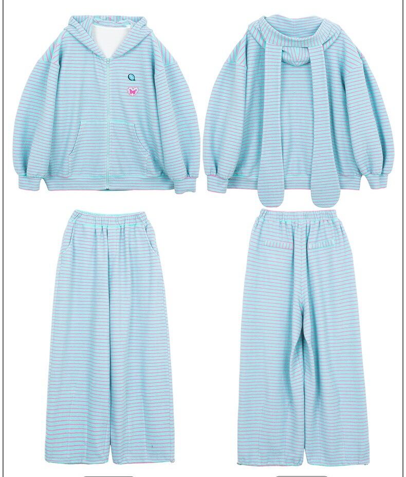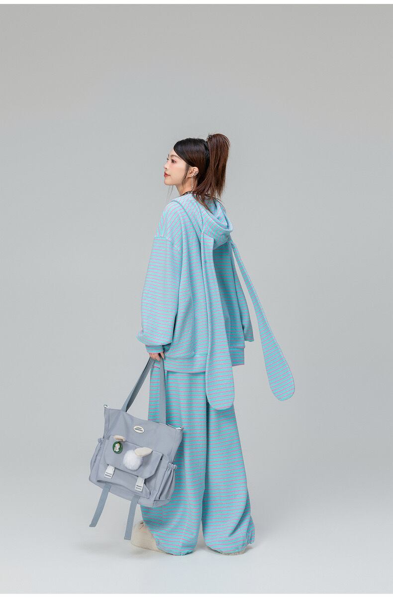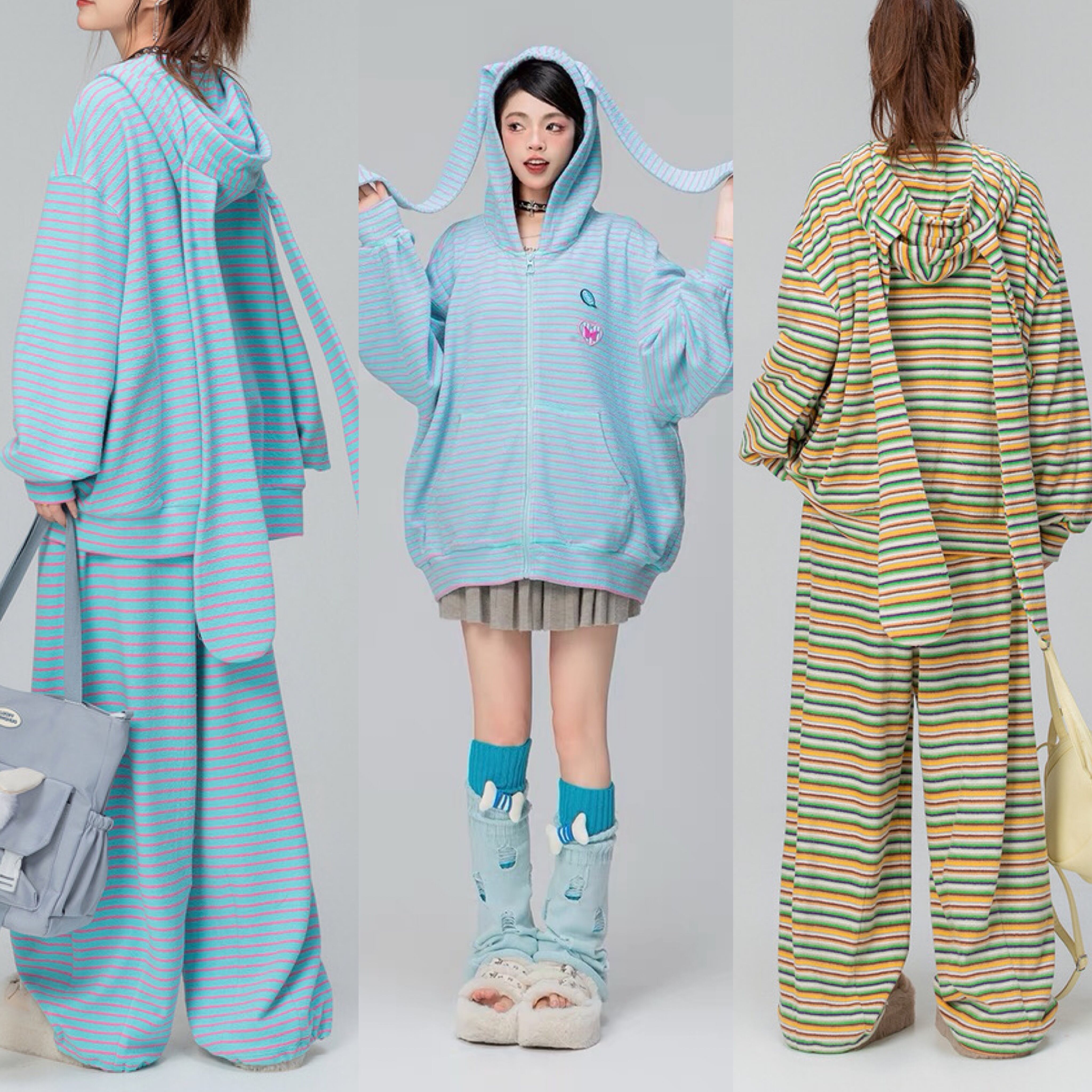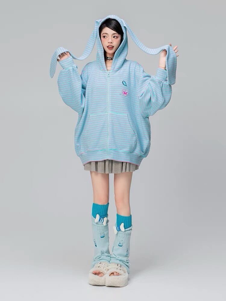 【パーカー】ボーダー 緑 茶色 水色 うさぎ 耳