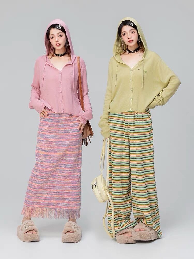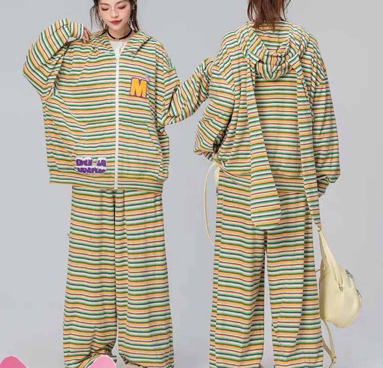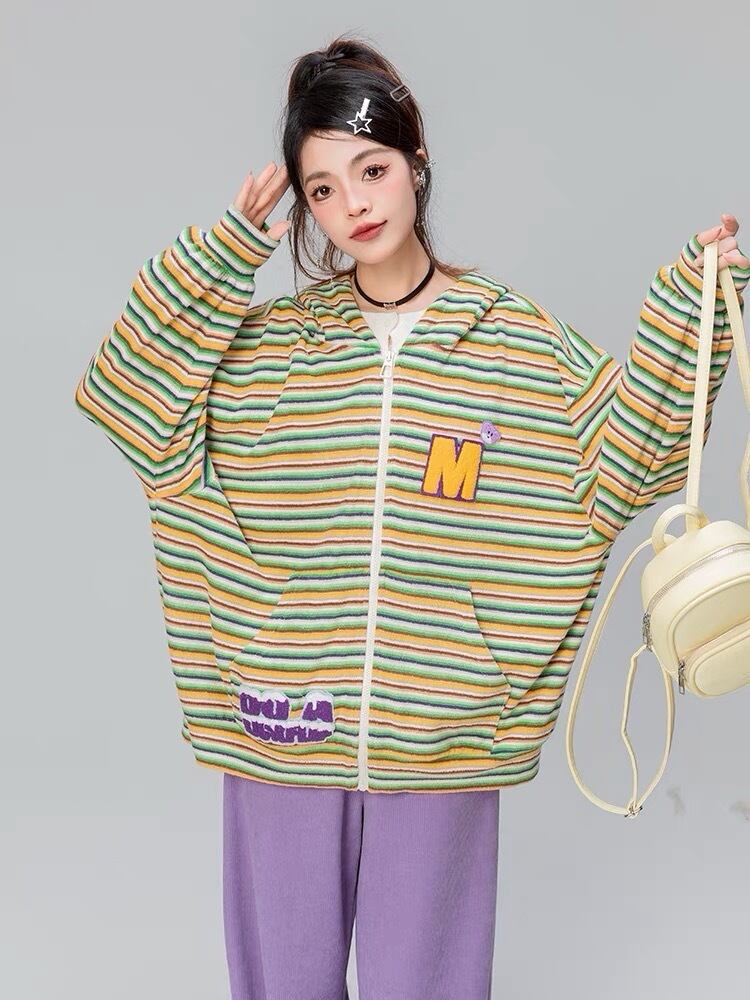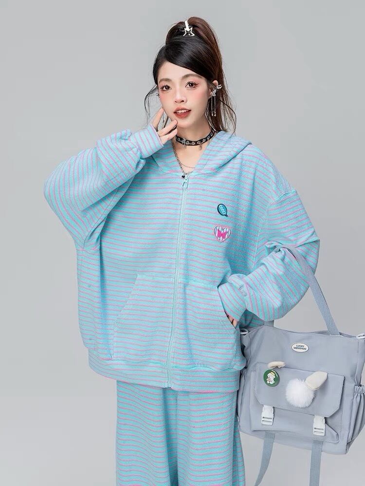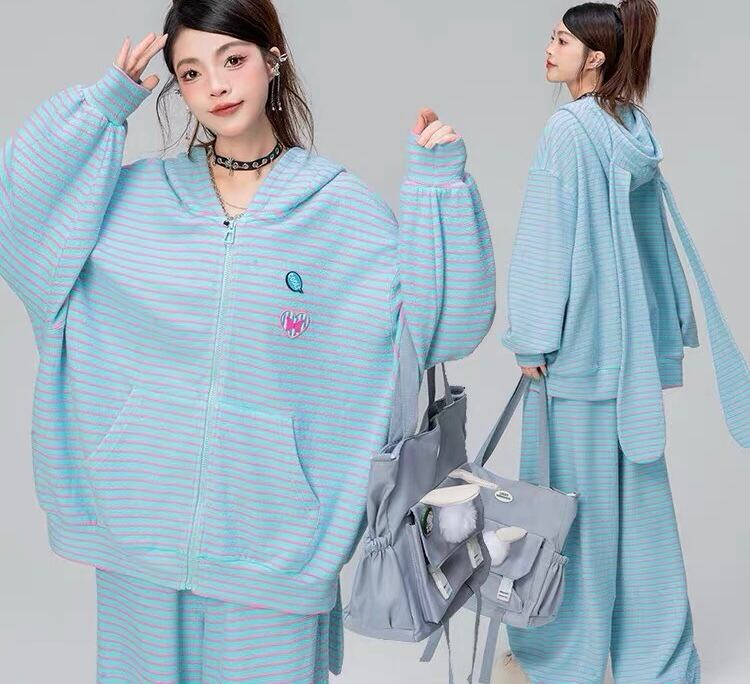 【パーカー】ボーダー 緑 茶色 水色 うさぎ 耳