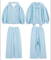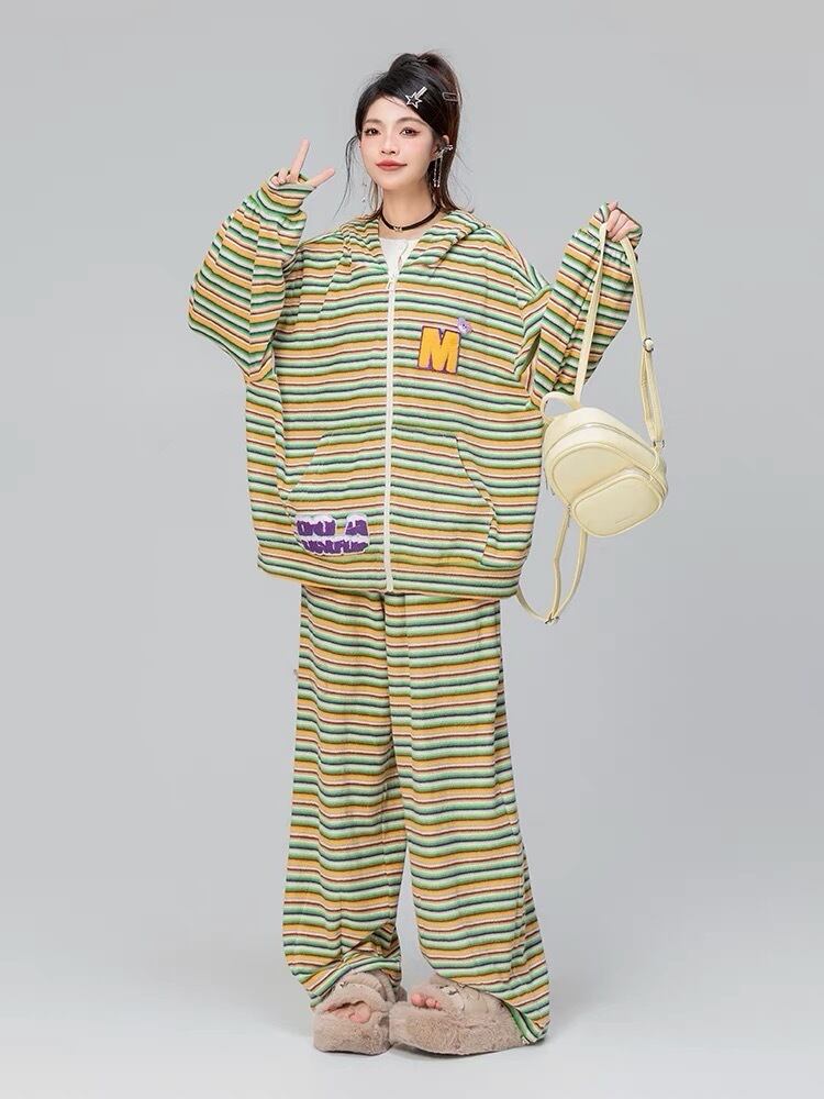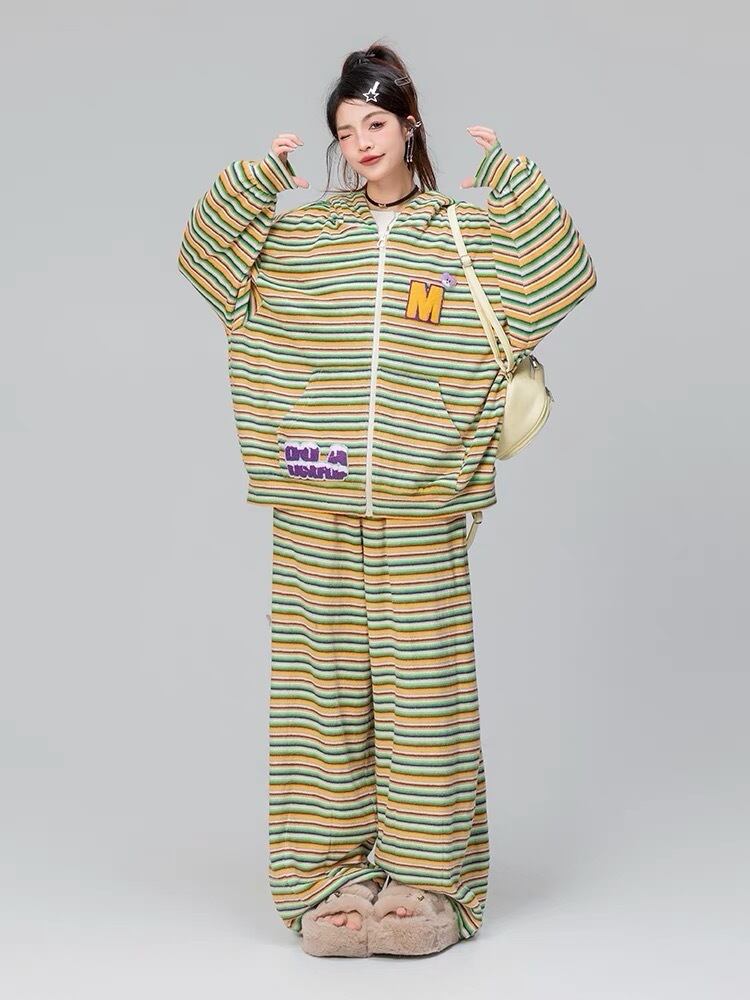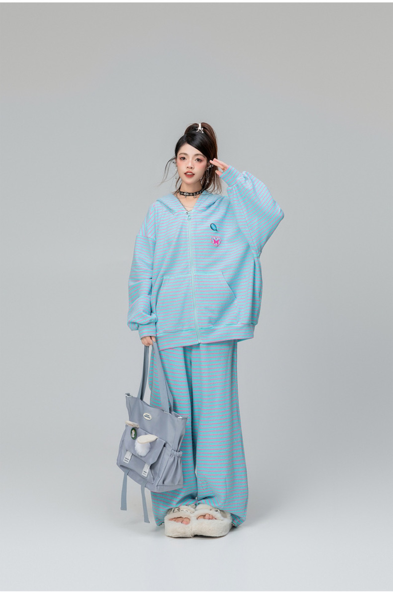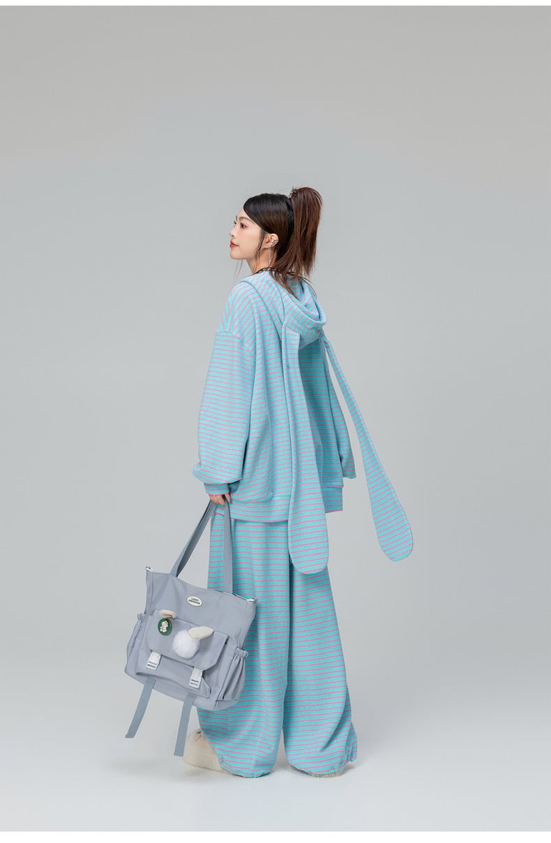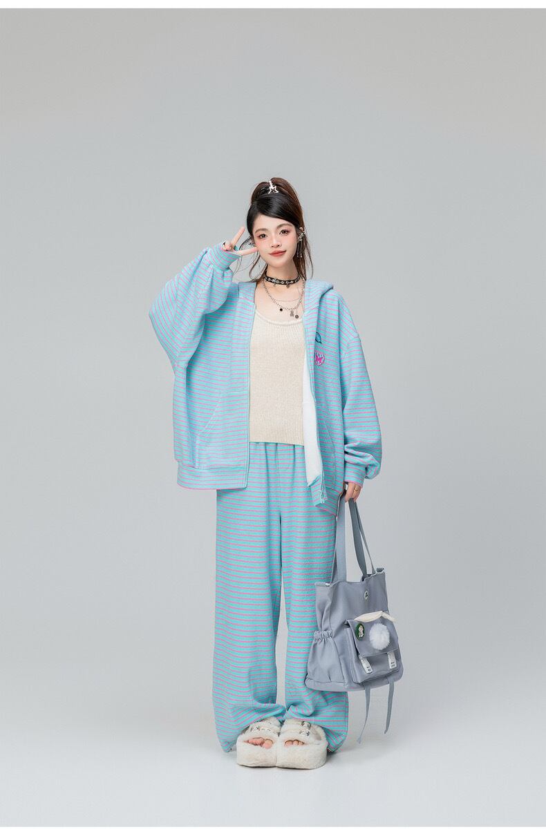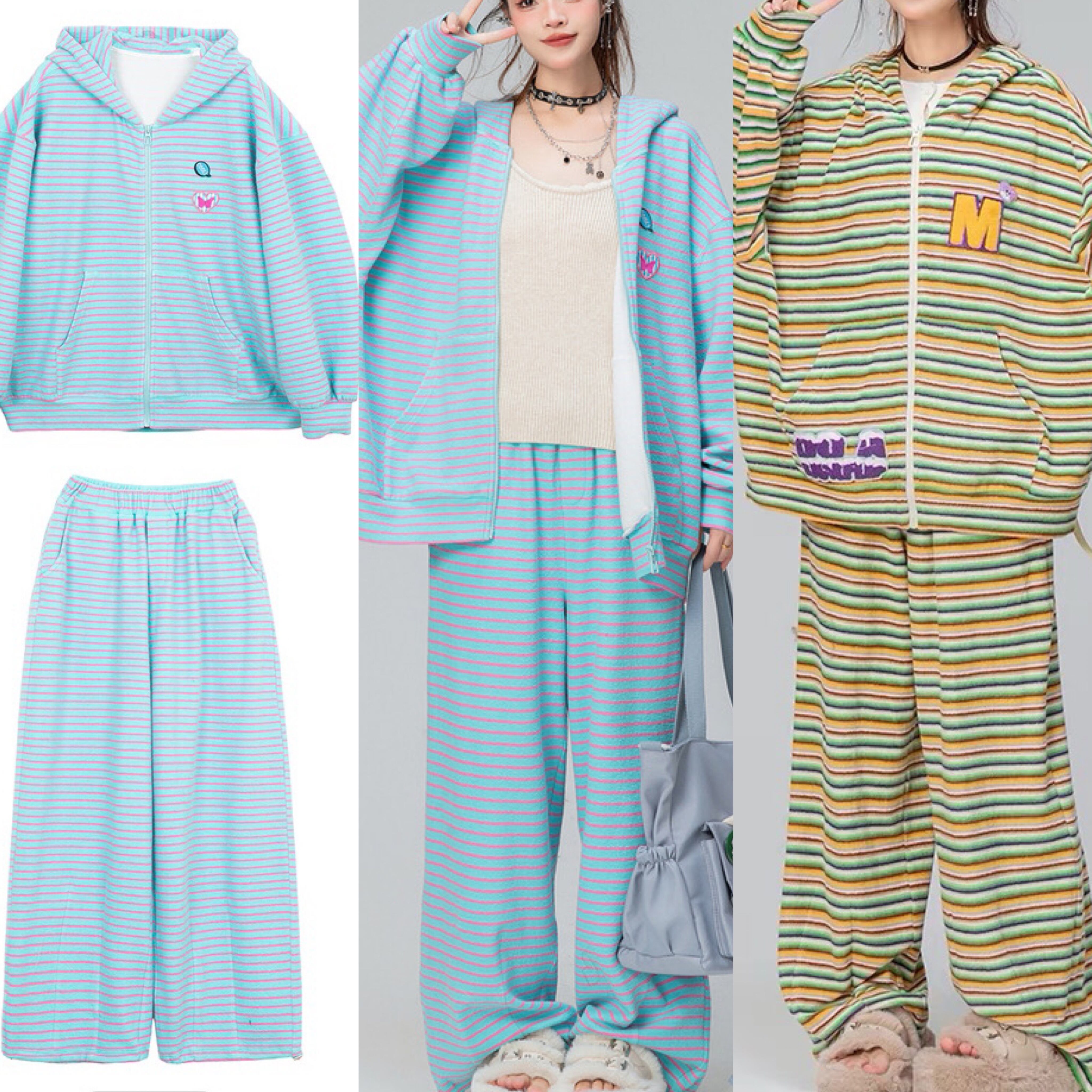 【ボトムス】パンツ ボーダー スウェット 緑 水色 ガーリー