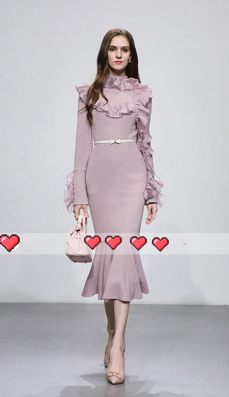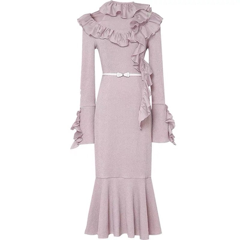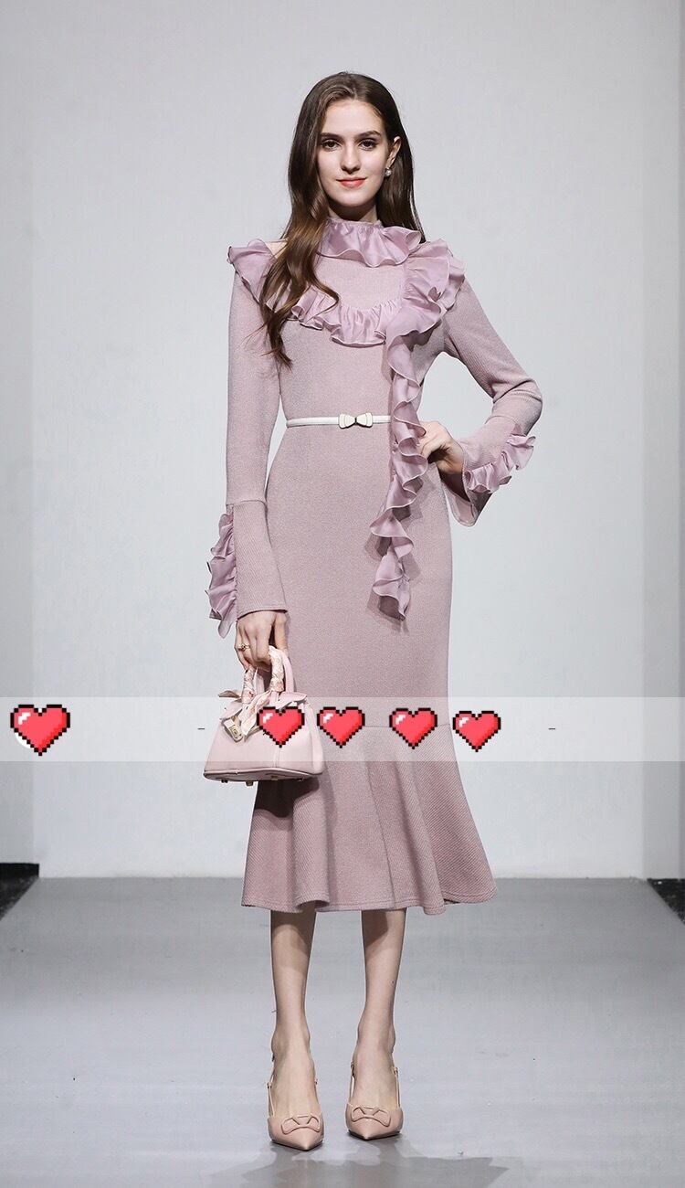 ワンピース ピンク フリル ニット セーター ガーリー