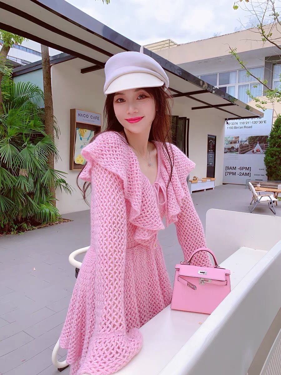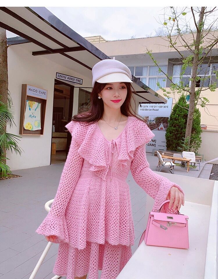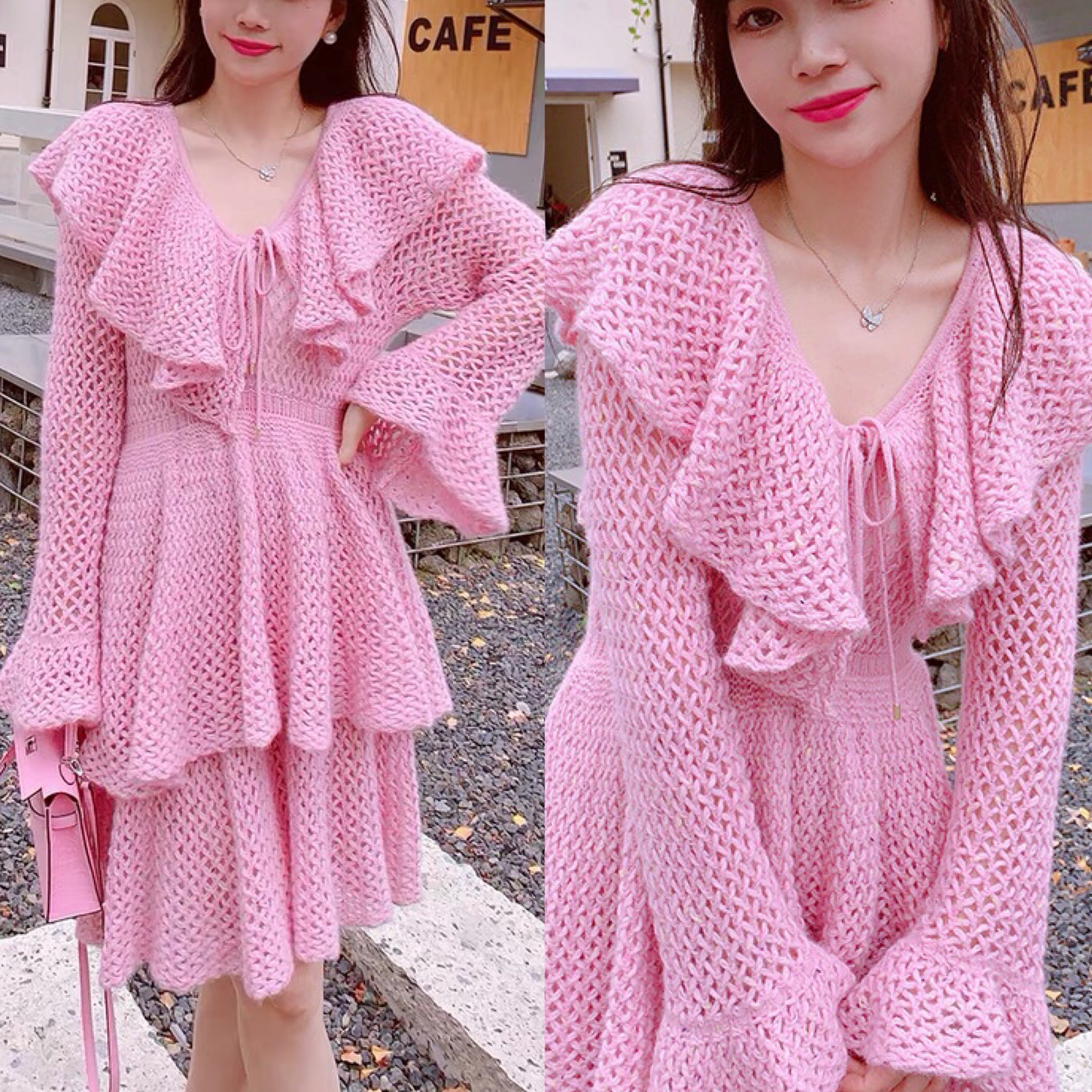 ワンピース ニット セーター フリル リボン ガーリー 可愛い