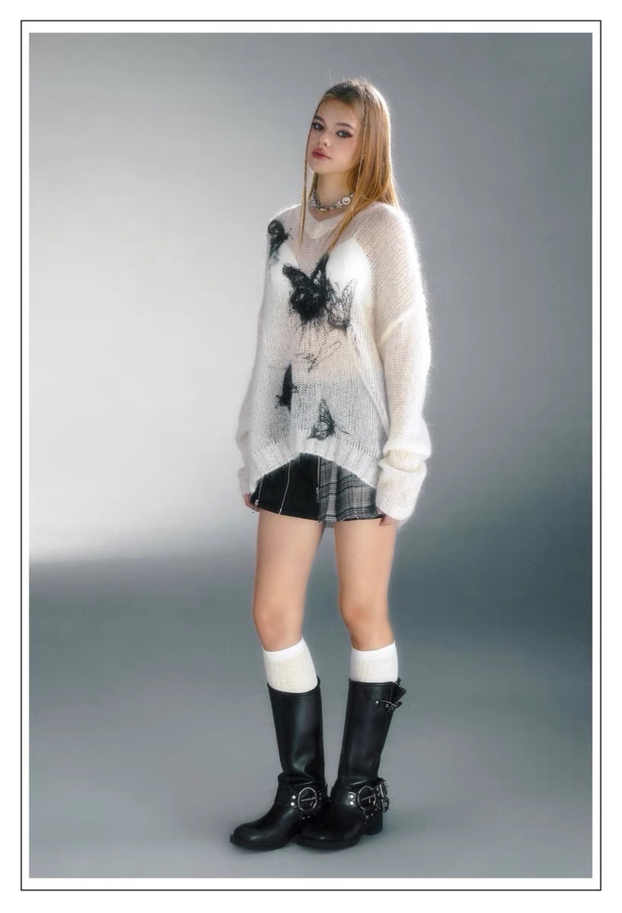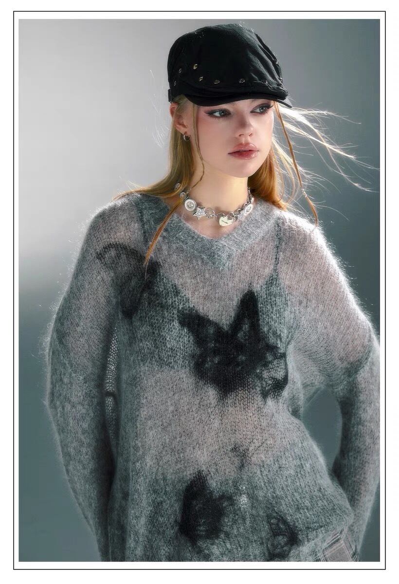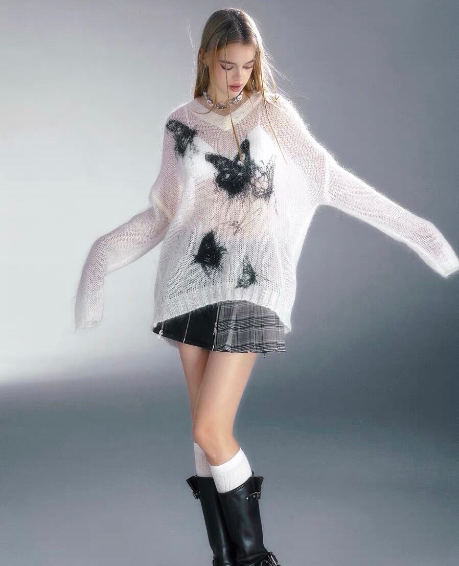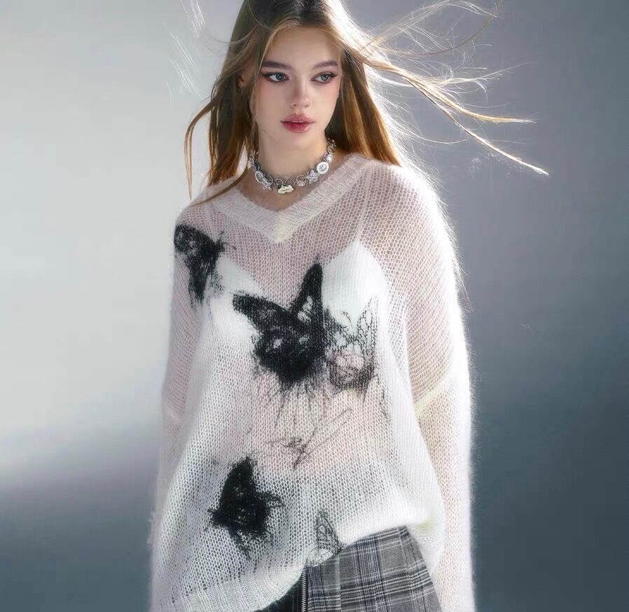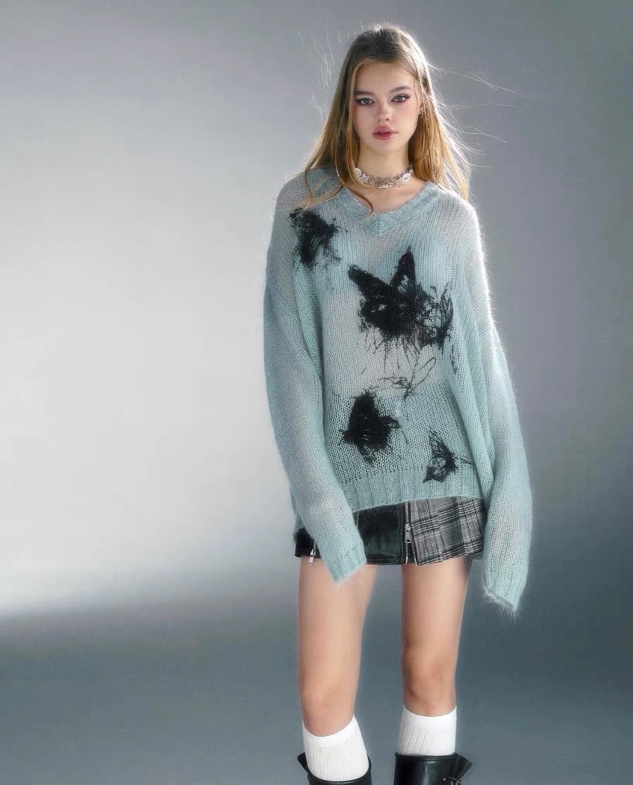 セーター ニット 白 グレー 水色 ねこ トップス