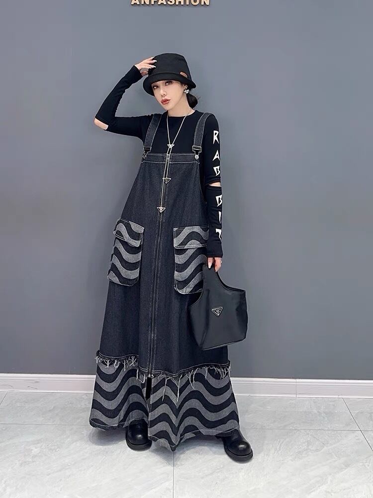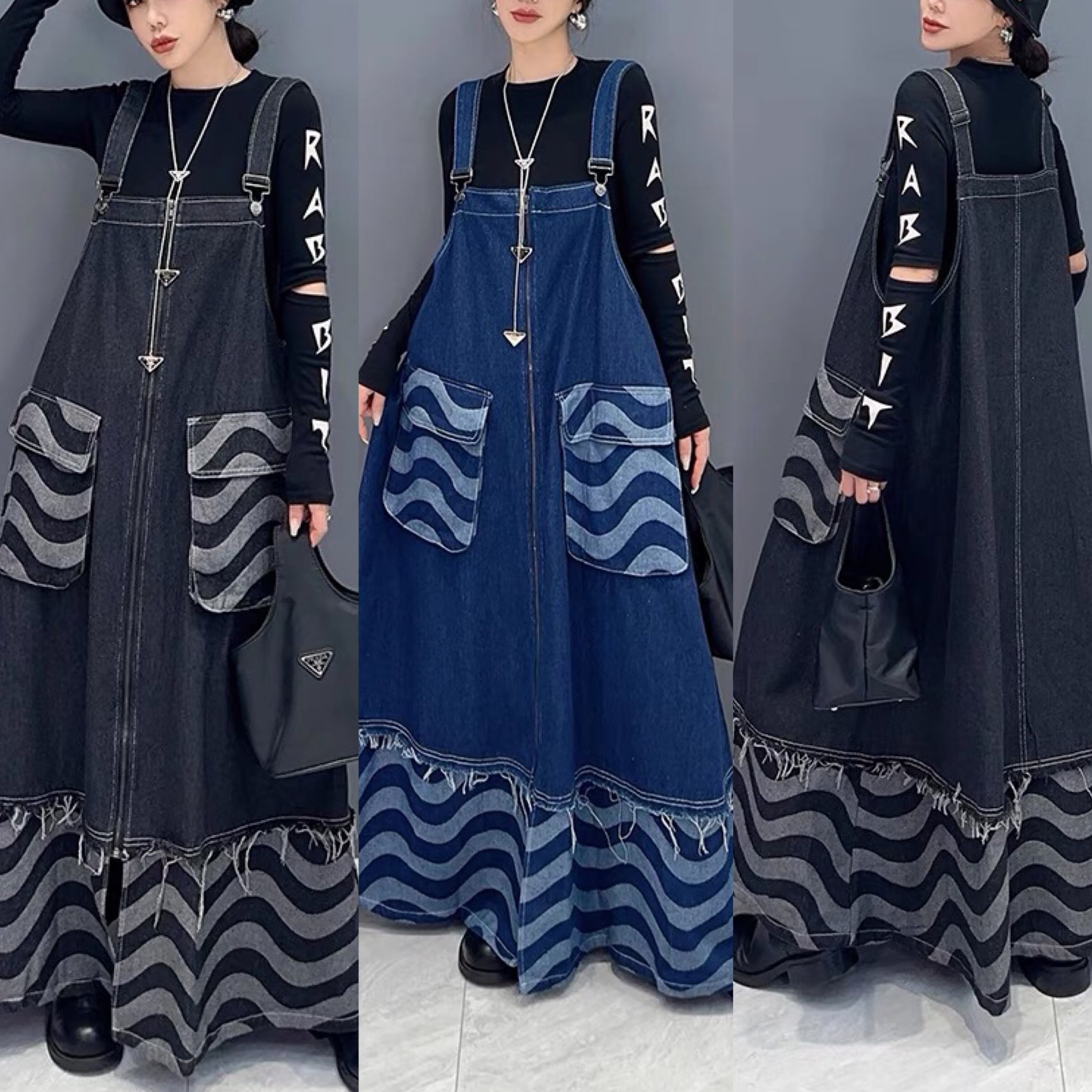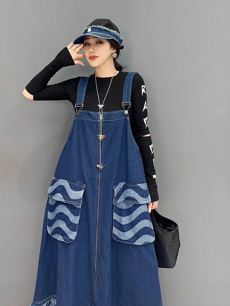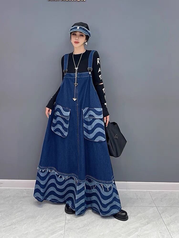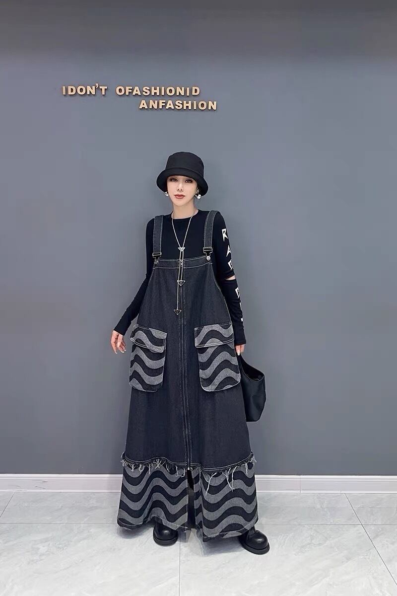 デニム ネイビー スカート オーバーオール ジャンパースカート つなぎ