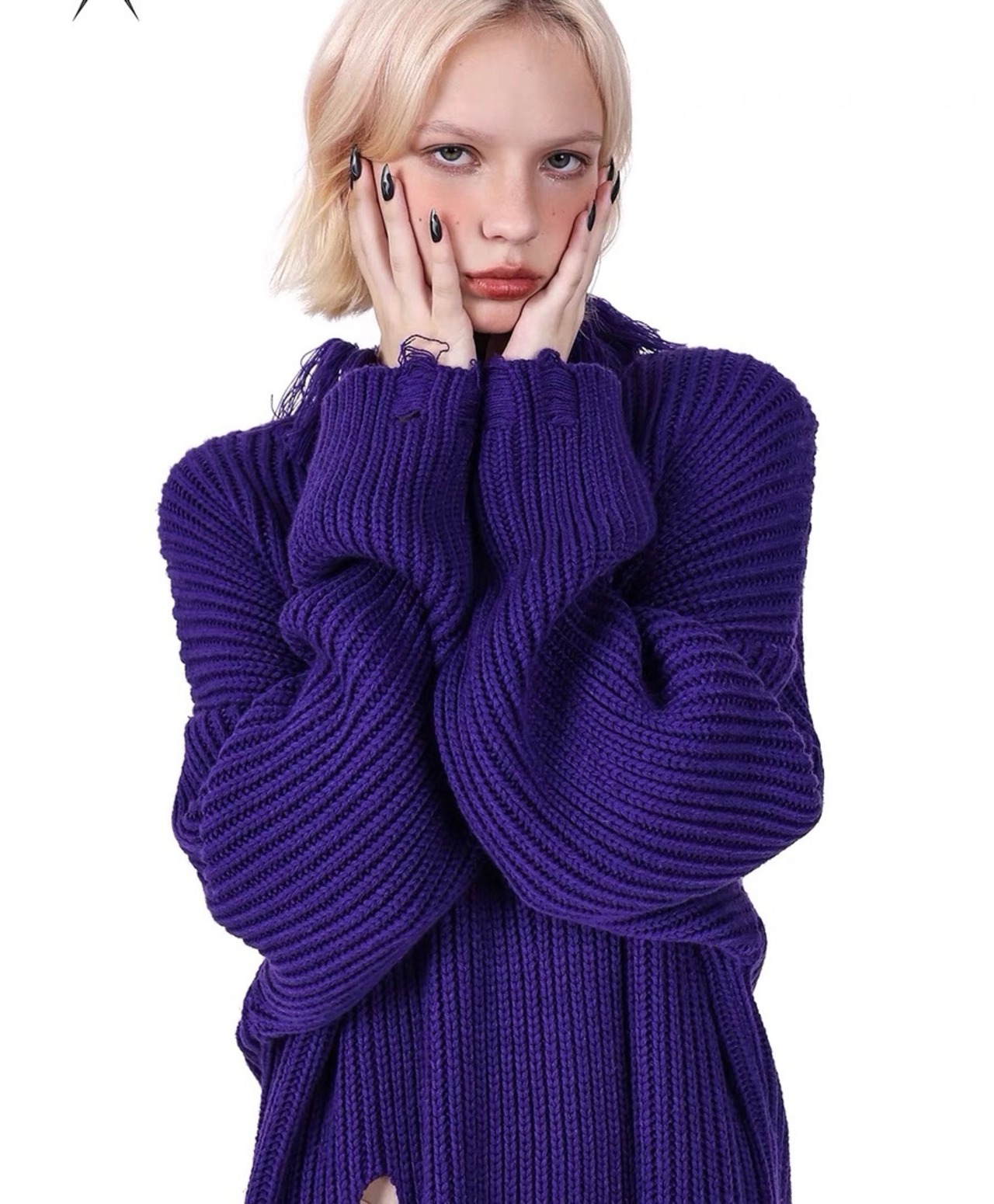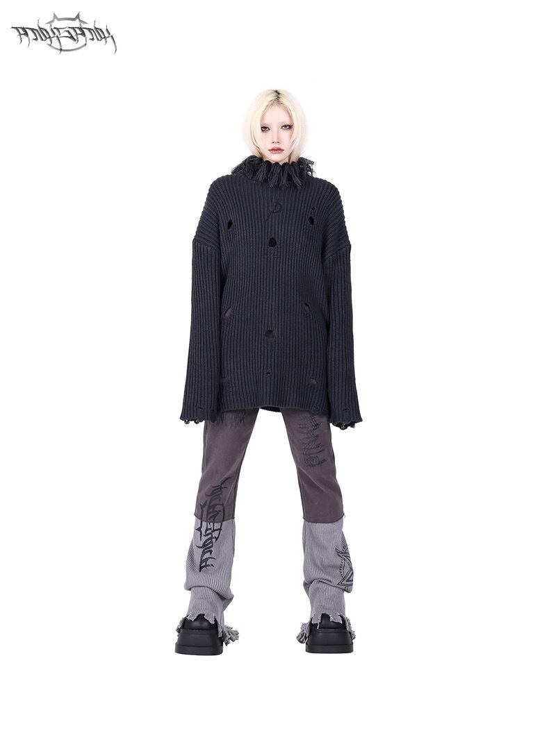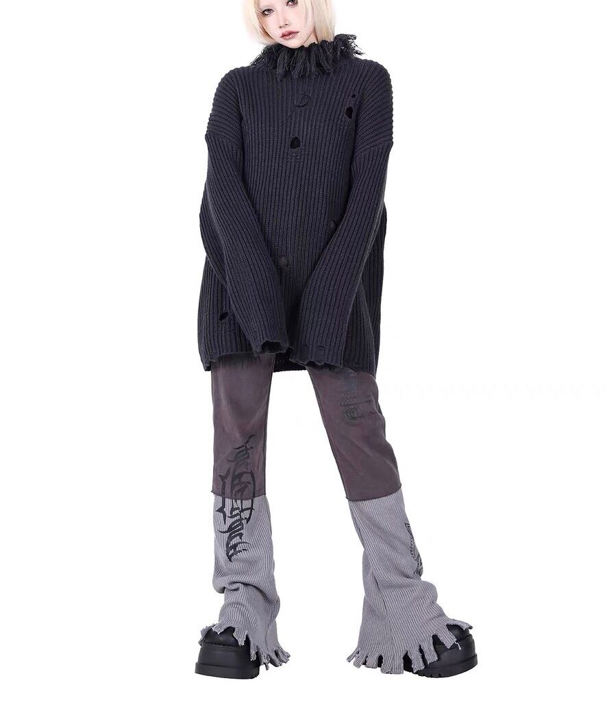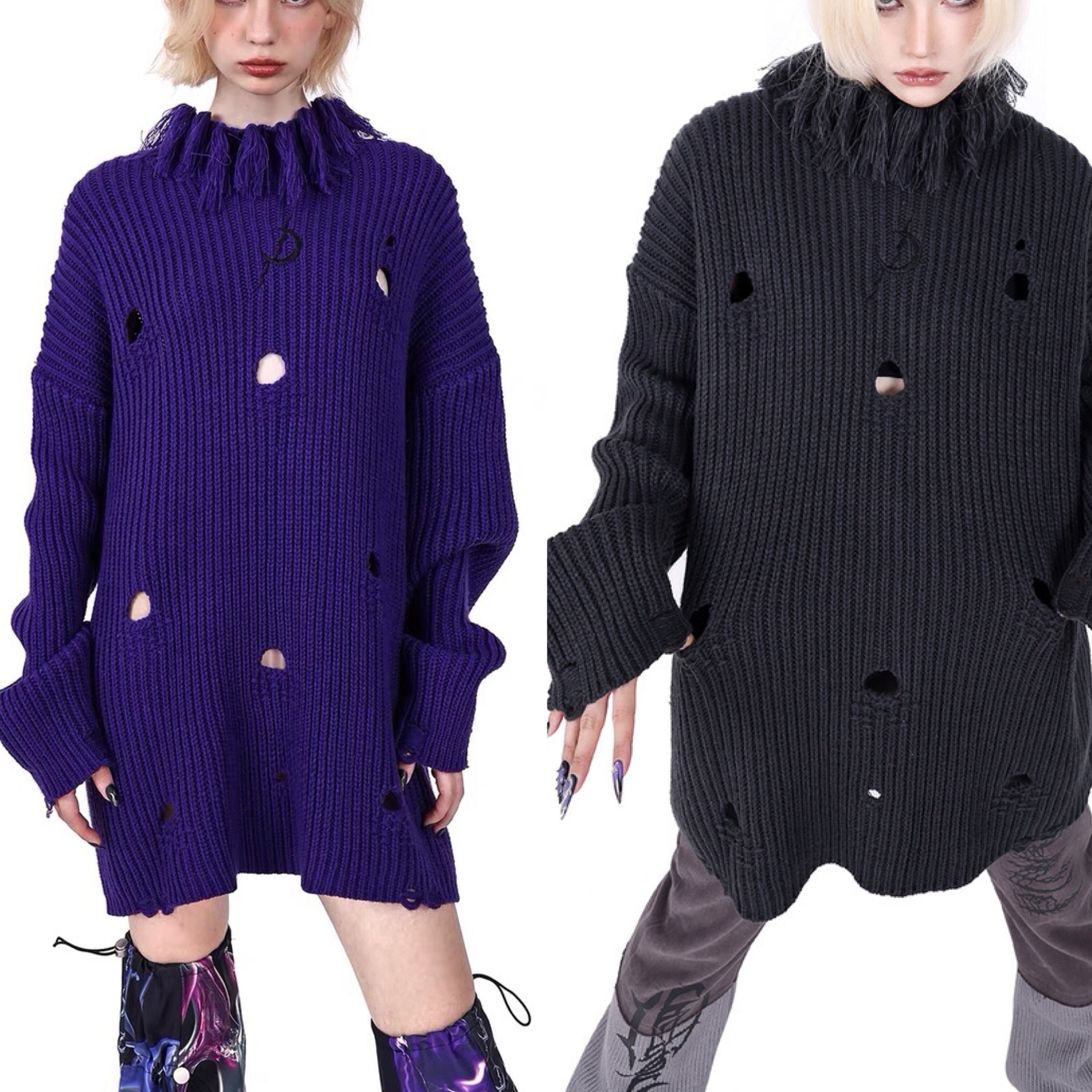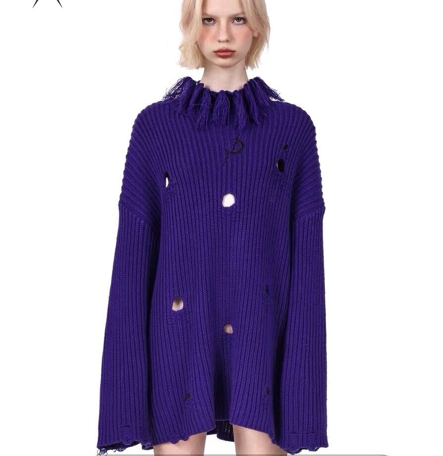 セーター ニット ハイネック 紫 グレー ワンピース トップ
