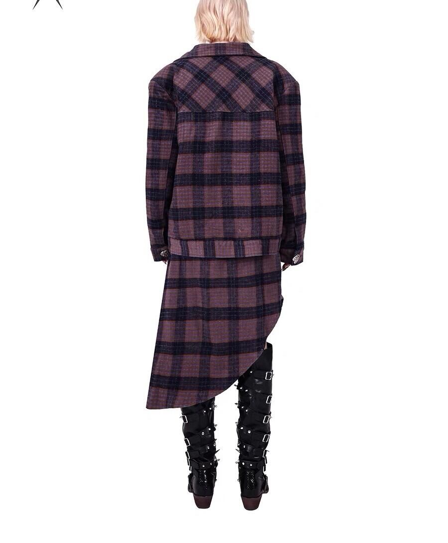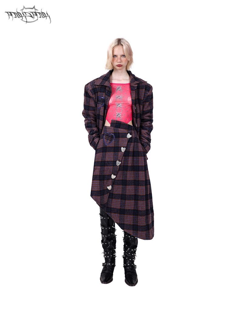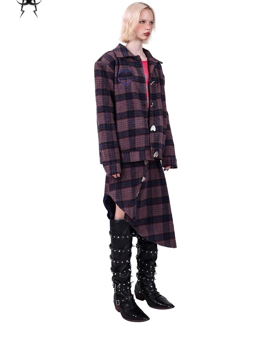 【ジャケット】チェック アウター コート 紫 ハート