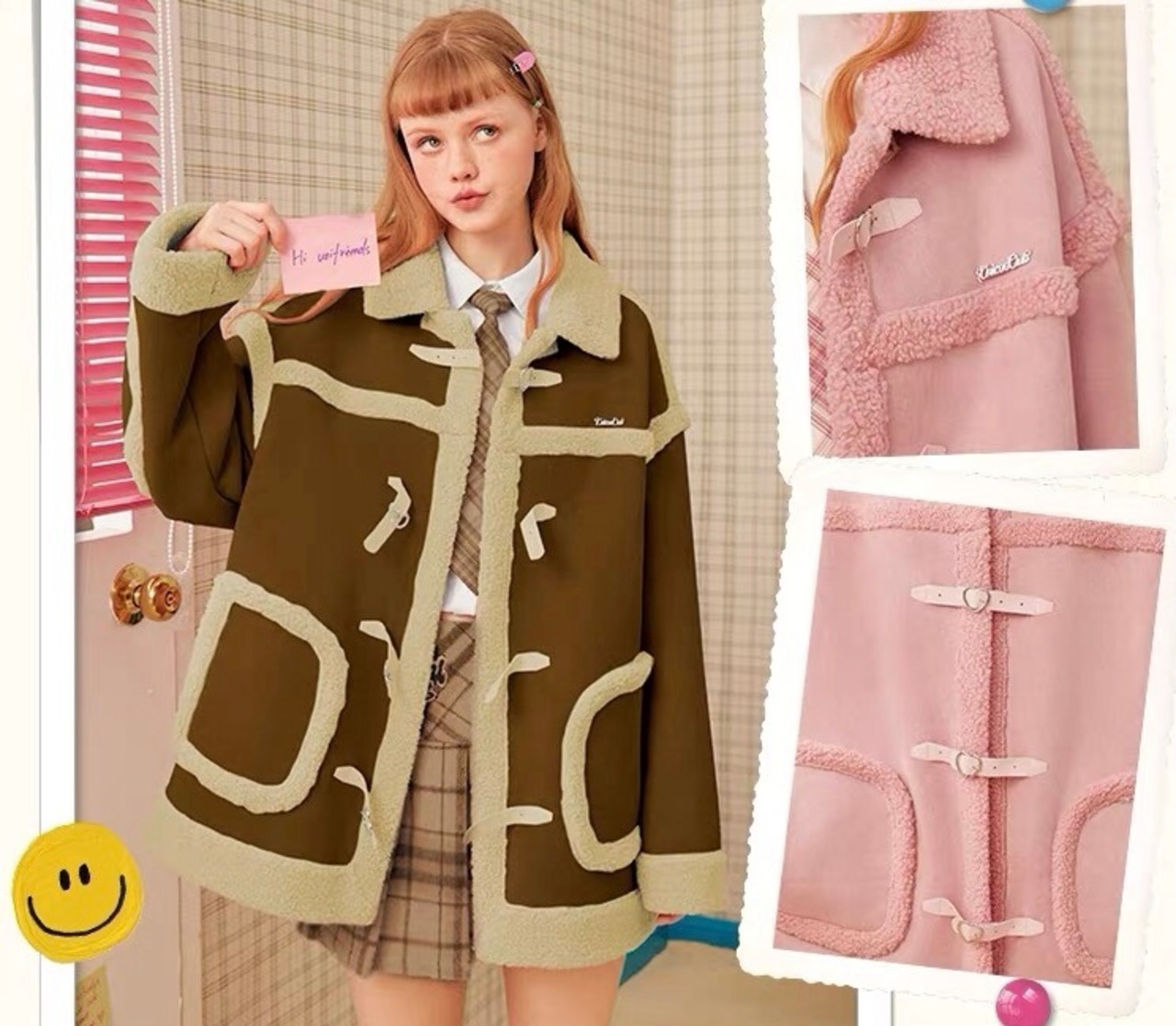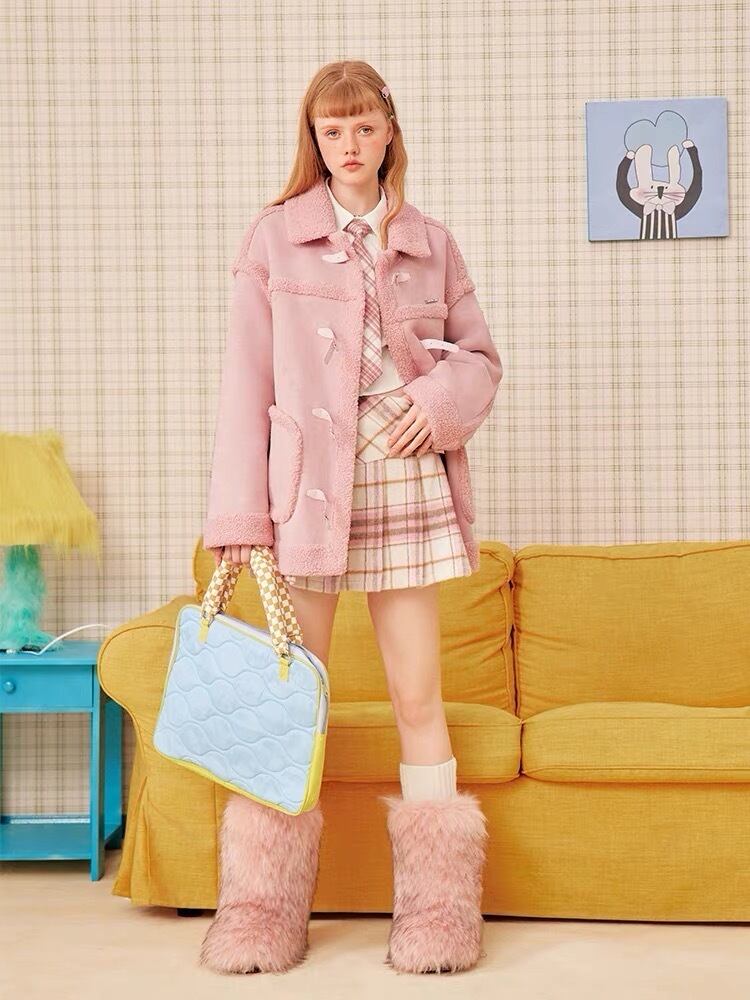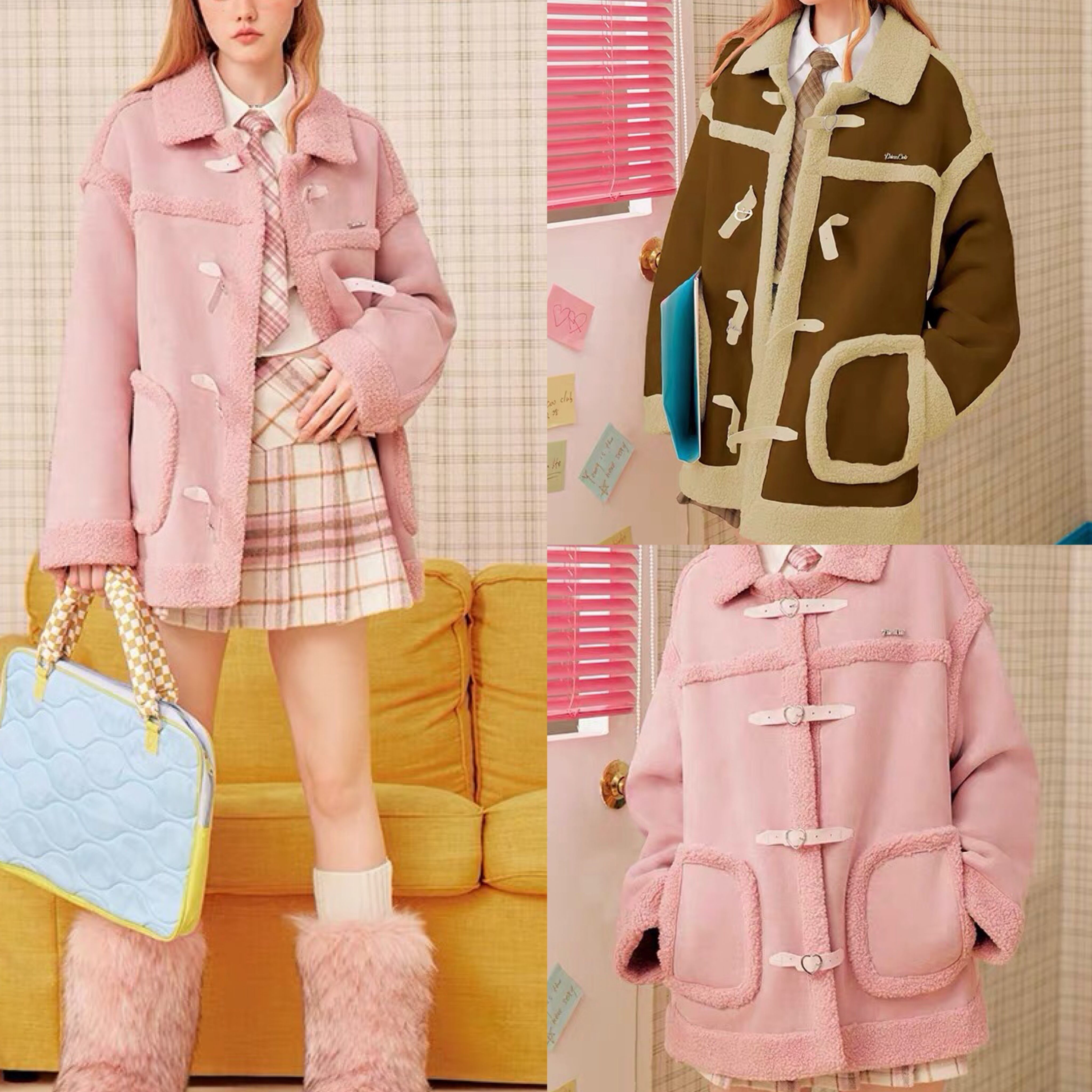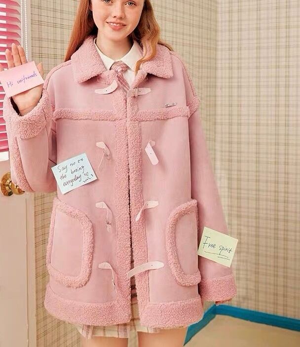 コート アウター ピンク 茶色 ファー 可愛い ワンピース ポケット