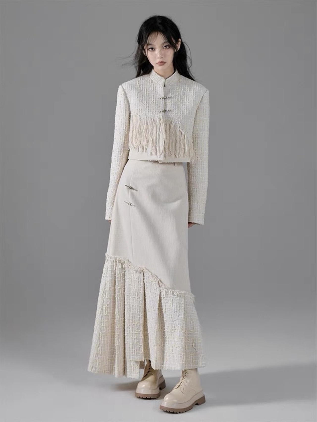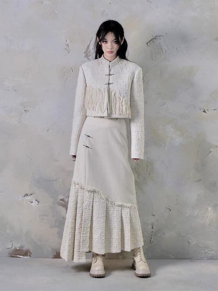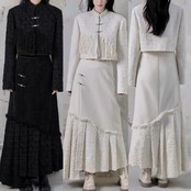 【スカート】白 黒 ツイード ボトムス スーツ ツーピース