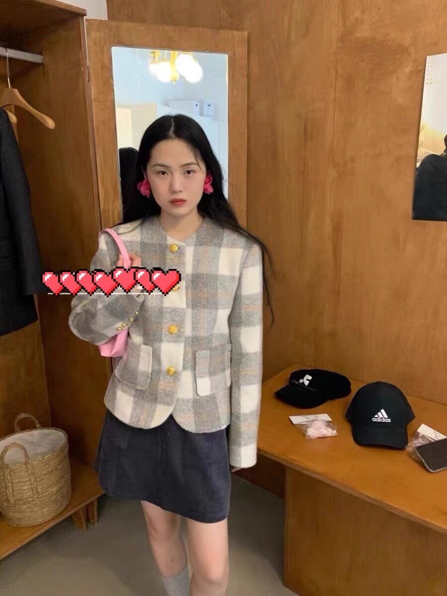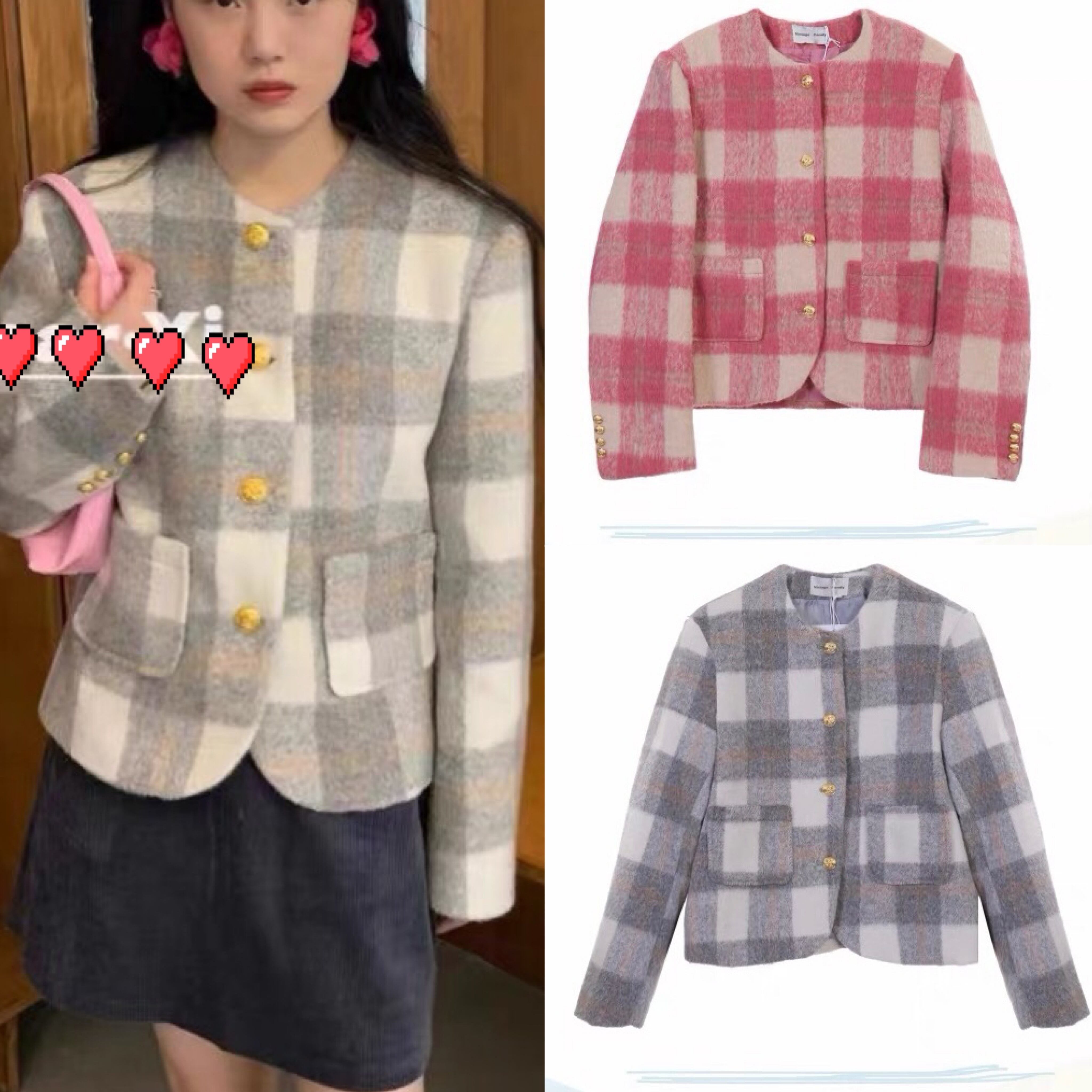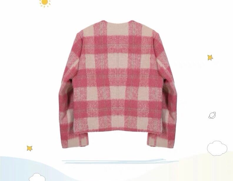 ジャケット ピンク グレー チェック アウター カーディガン