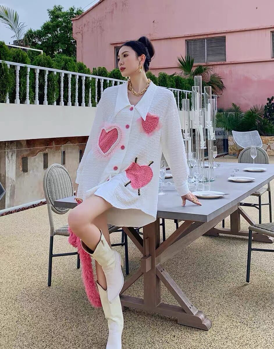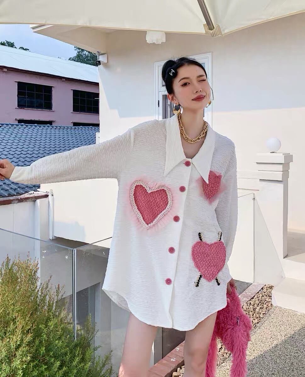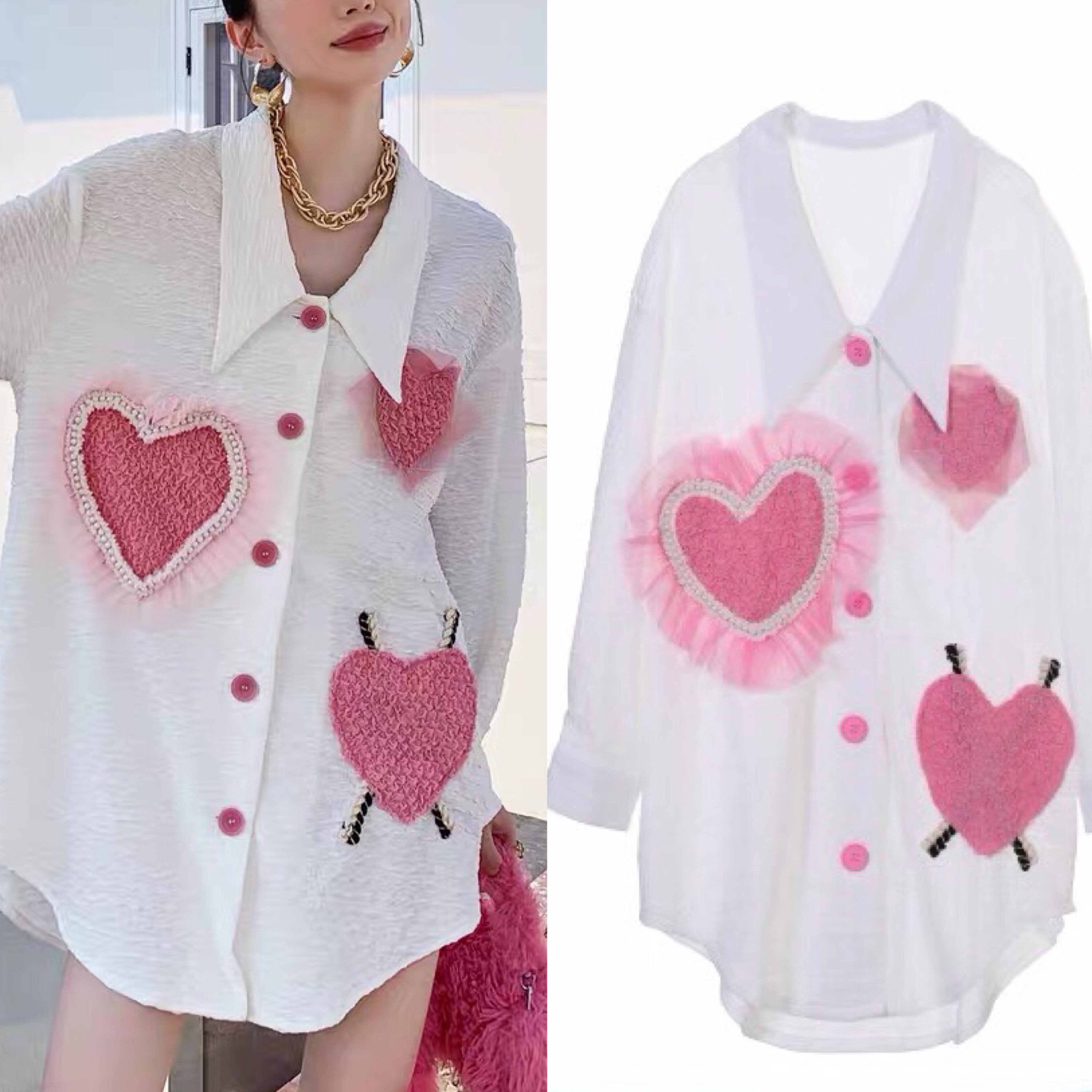 ブラウス ハート ワンピース 可愛い ピンク パール デコレーション