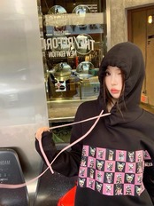 パーカー 黒 ピンク スウェット トレーナー ゆったり