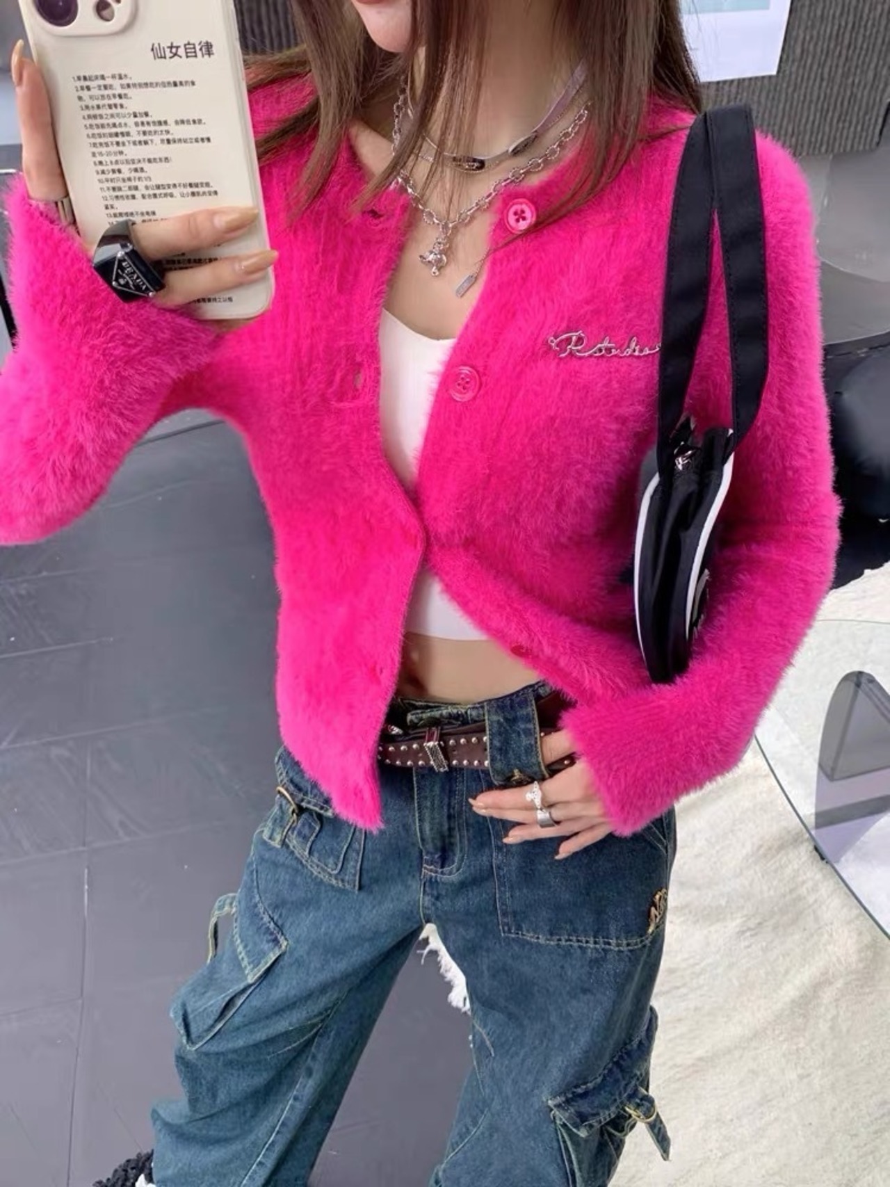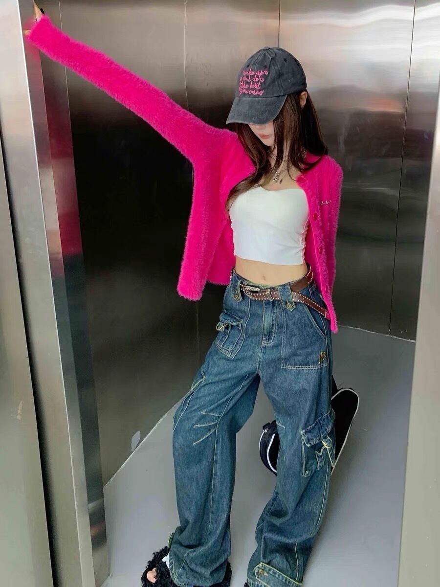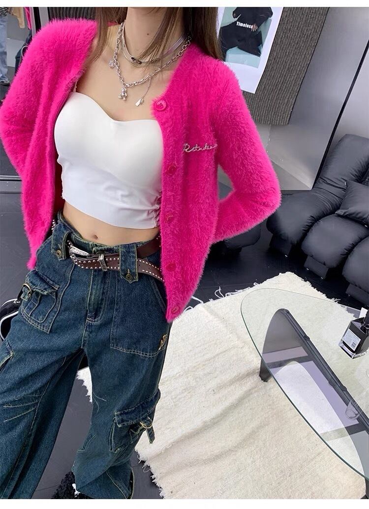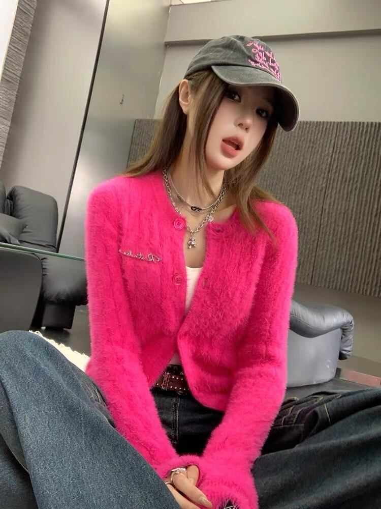 カーディガン ピンク ネオン 蛍光 ニット セーター