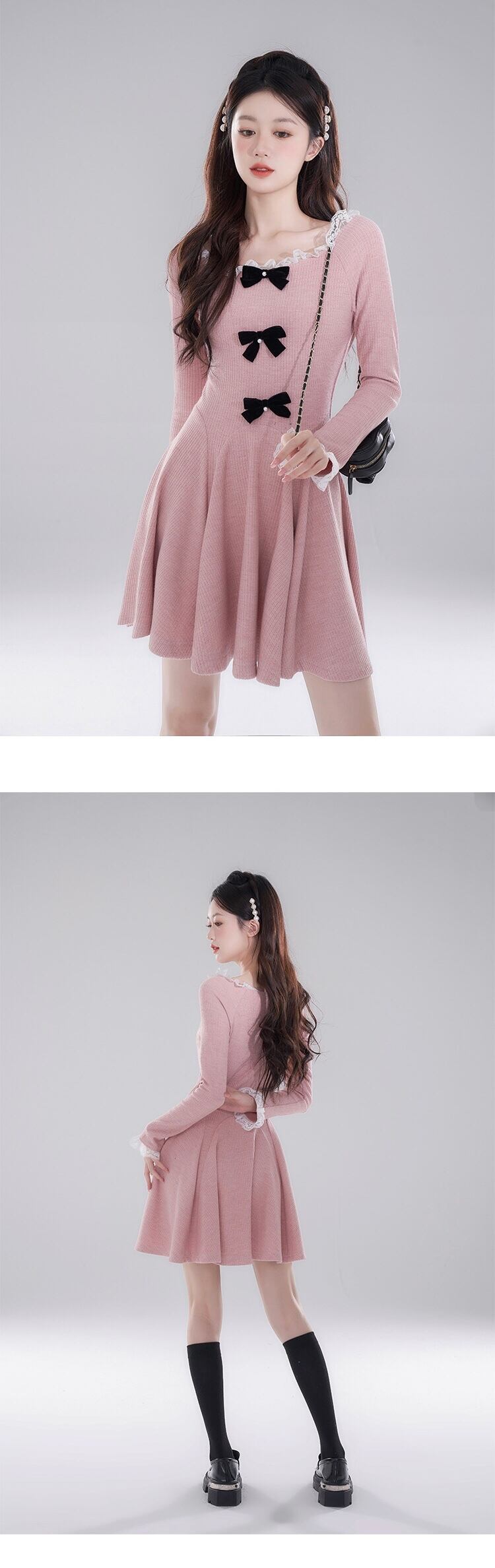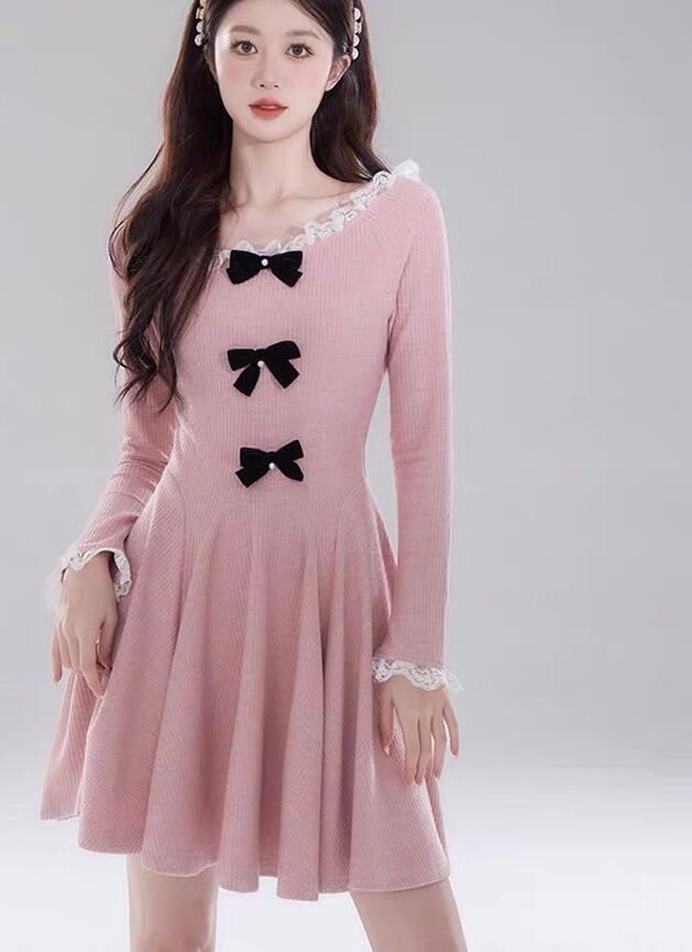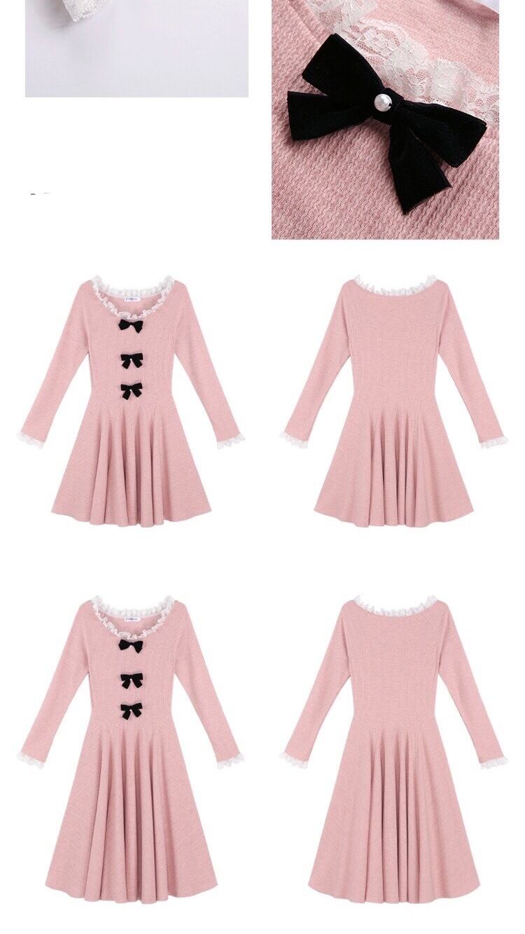ワンピース ピンク リボン ニット セーター ガーリー