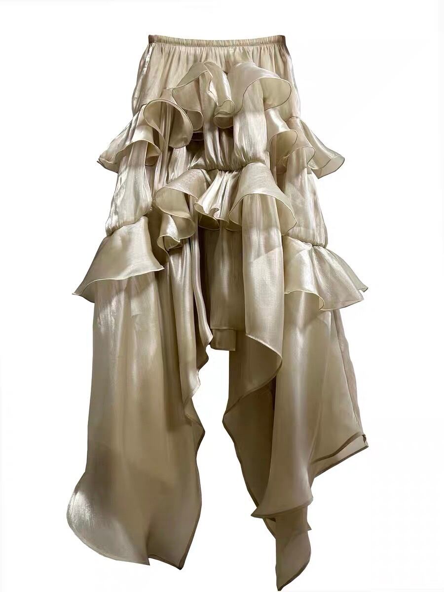 スカート ベージュ ゴールド 金 マキシ ボトムス