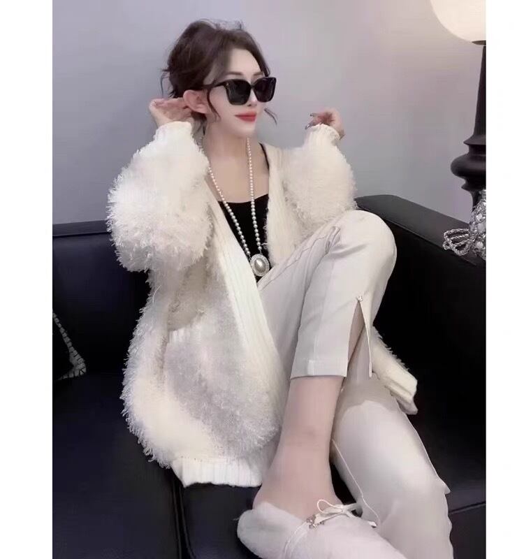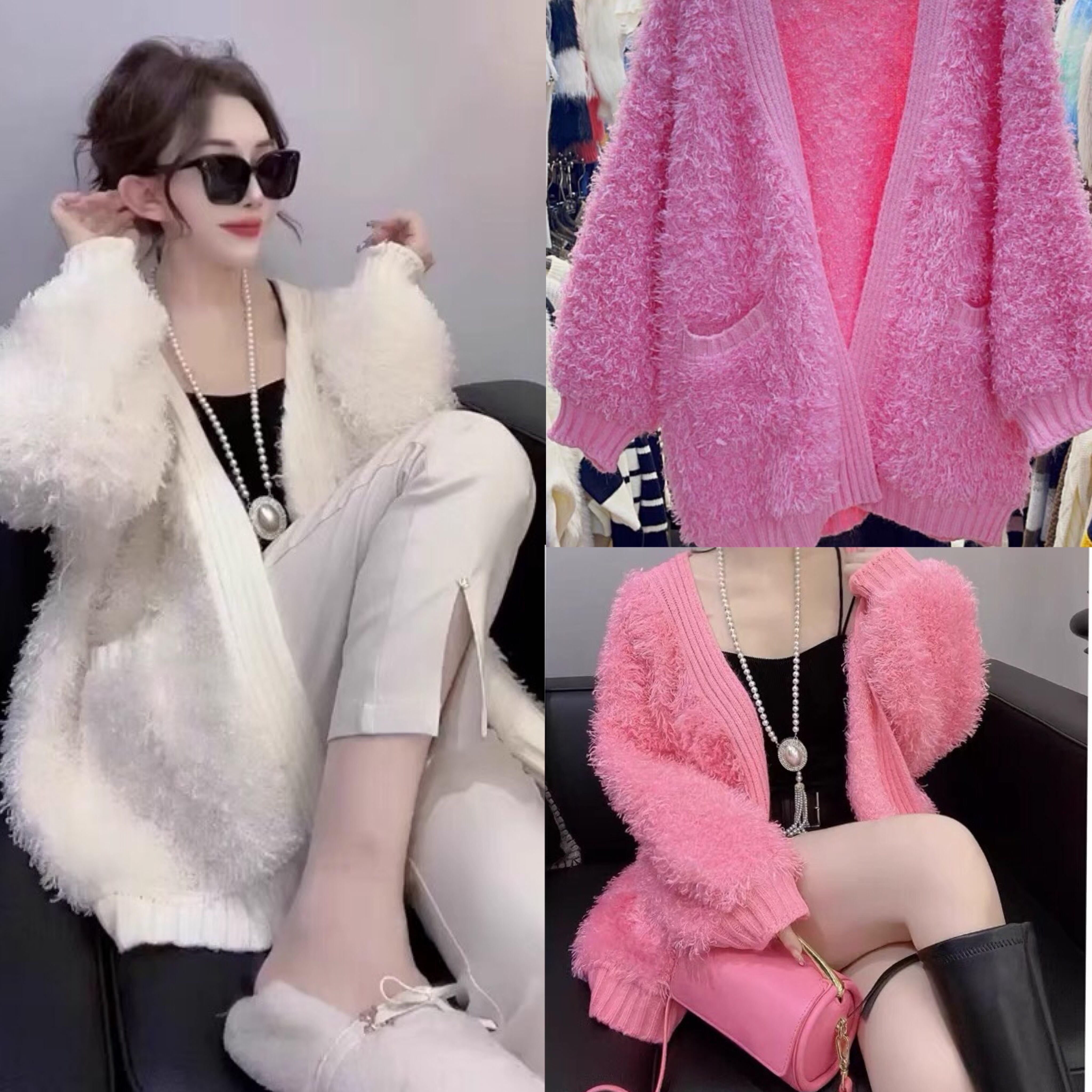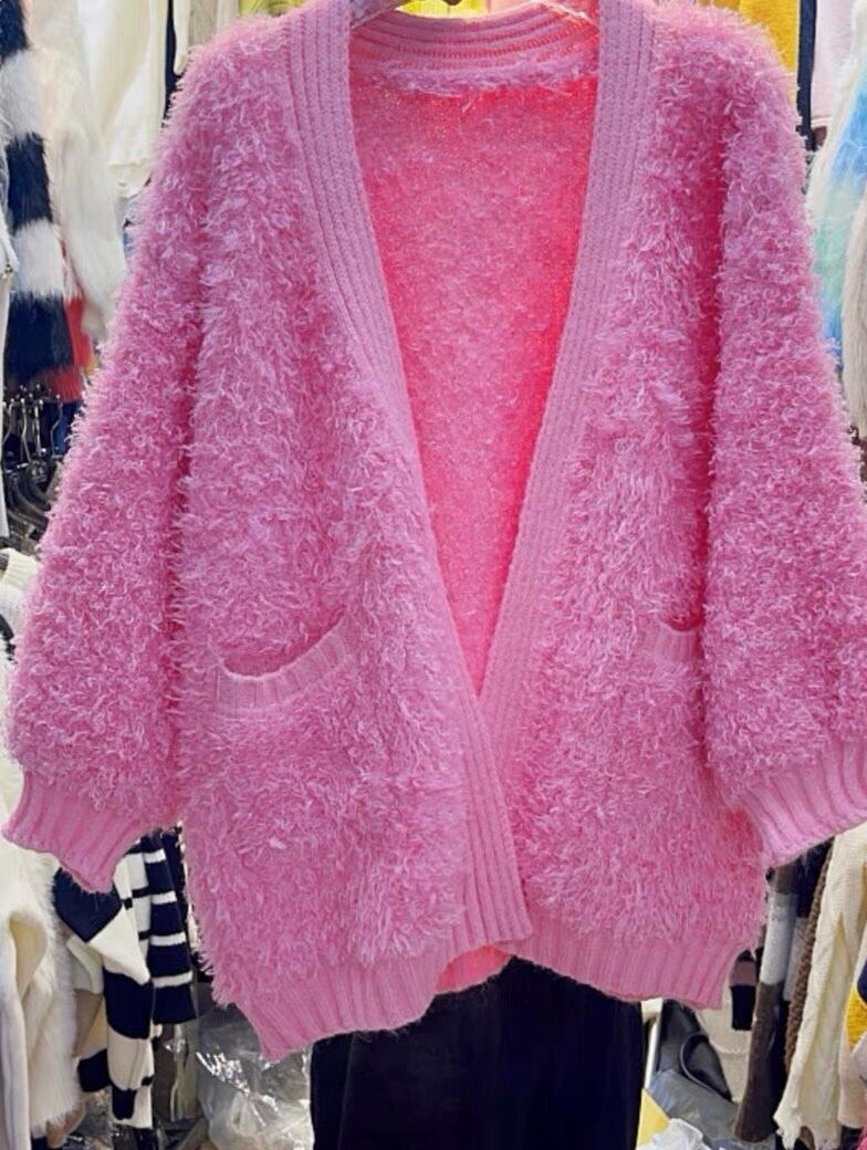 カーディガン ピンク 白 アウター セーター ニット
