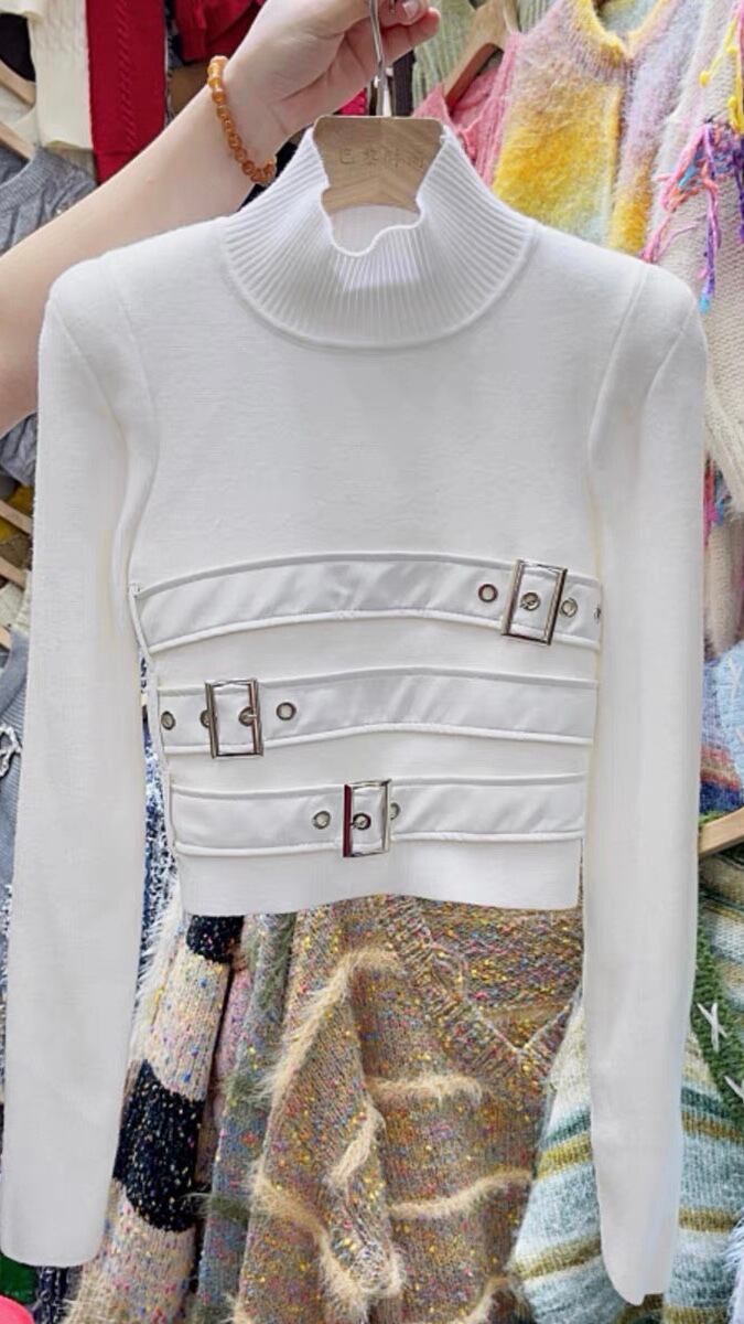 トップス 黒 白 茶色 スウェット ベルト ブラウス
