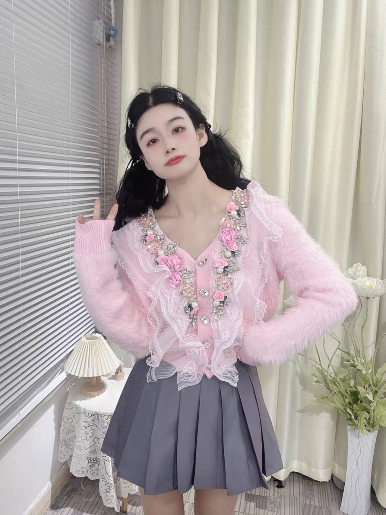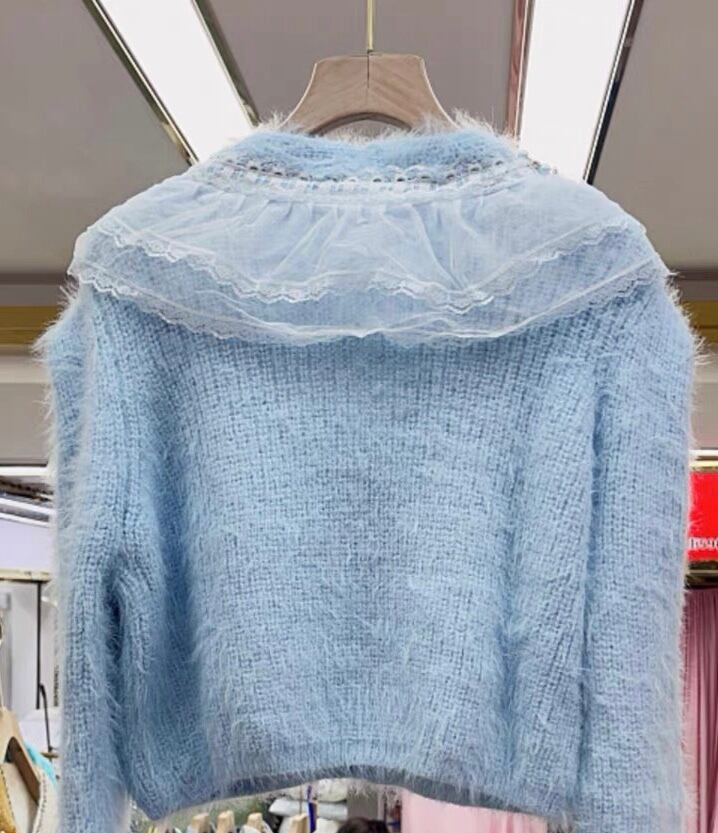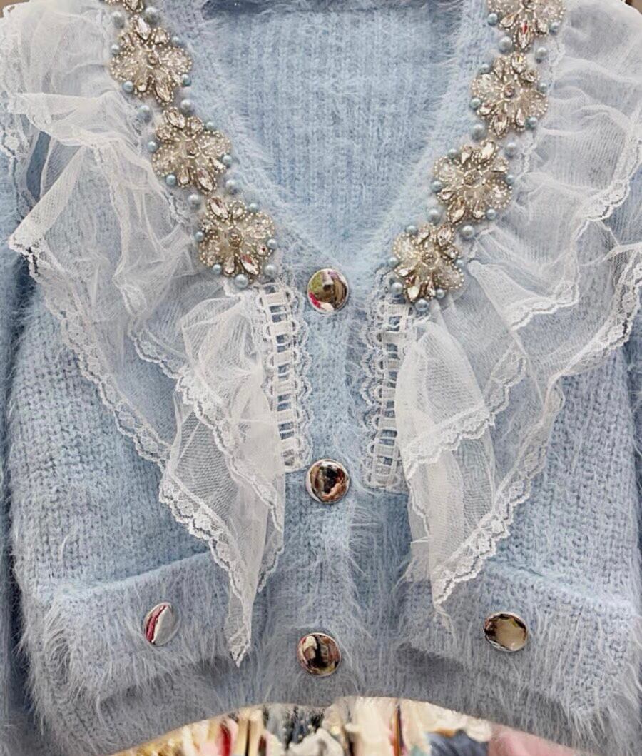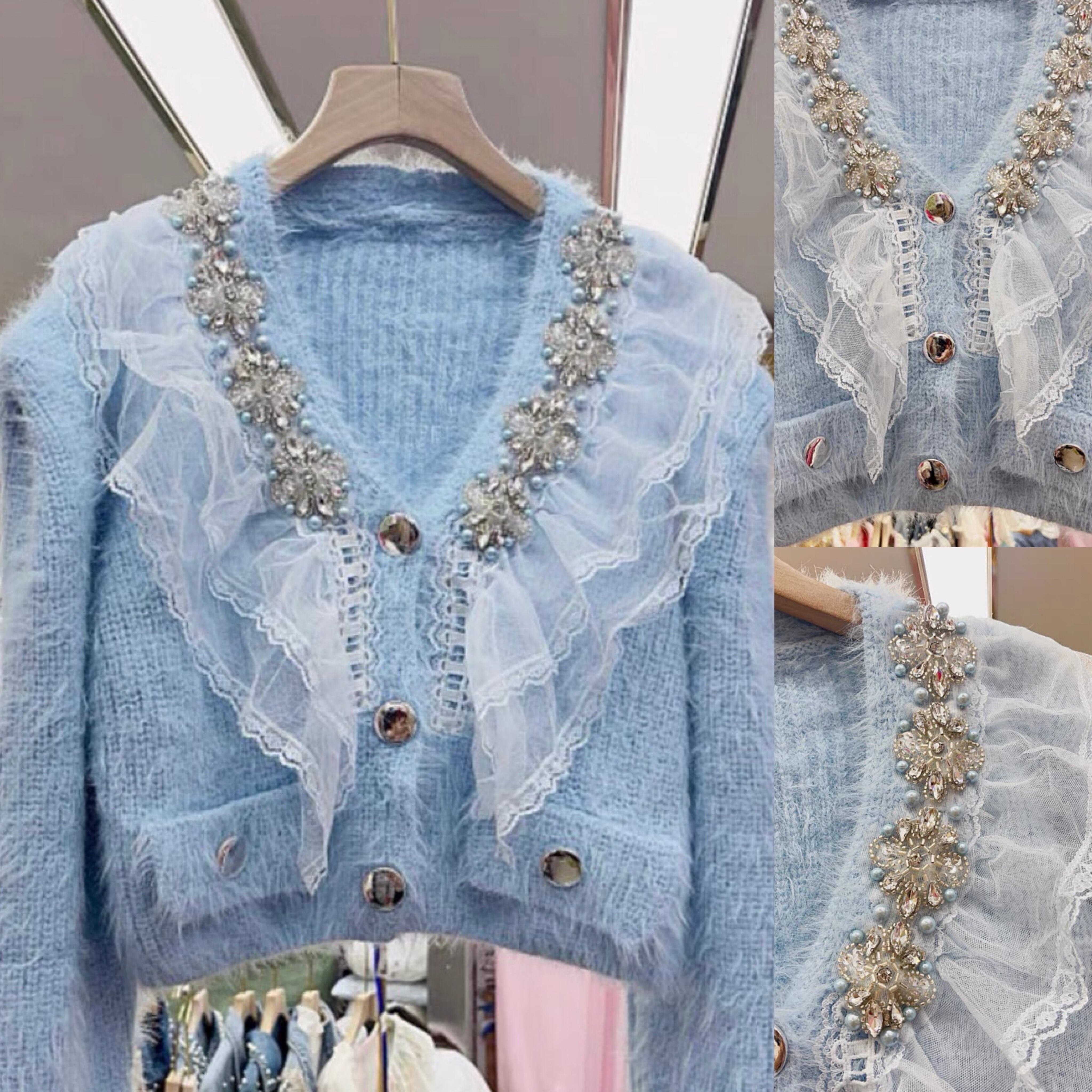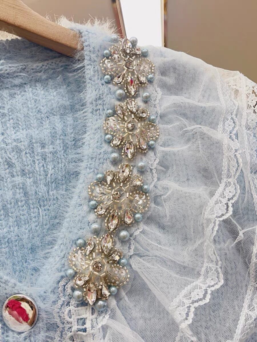 カーディガン 水色 ガーリー ラインストーン 可愛い セーター