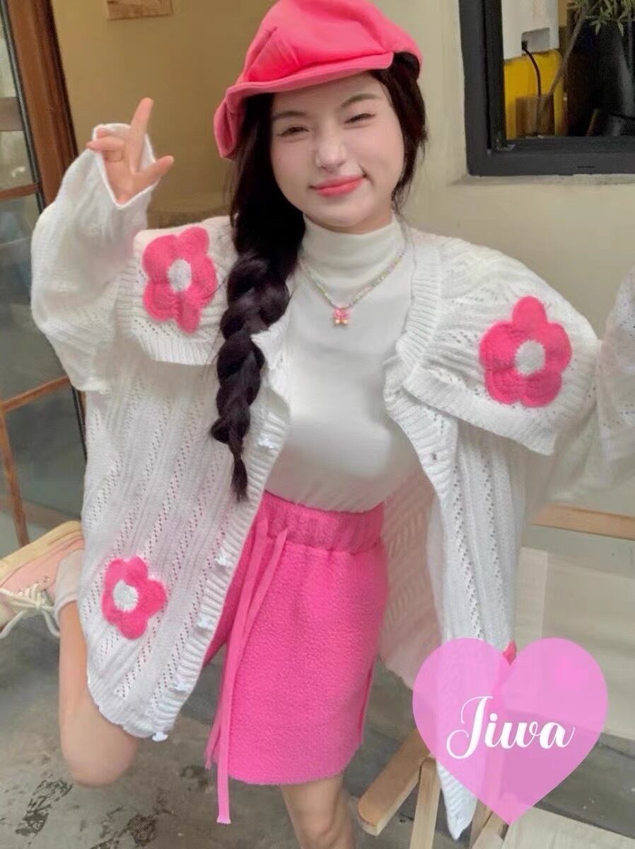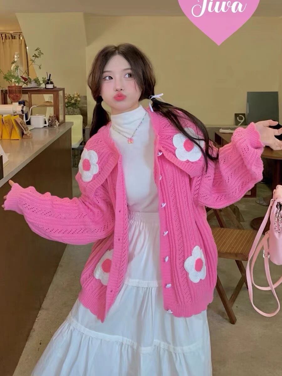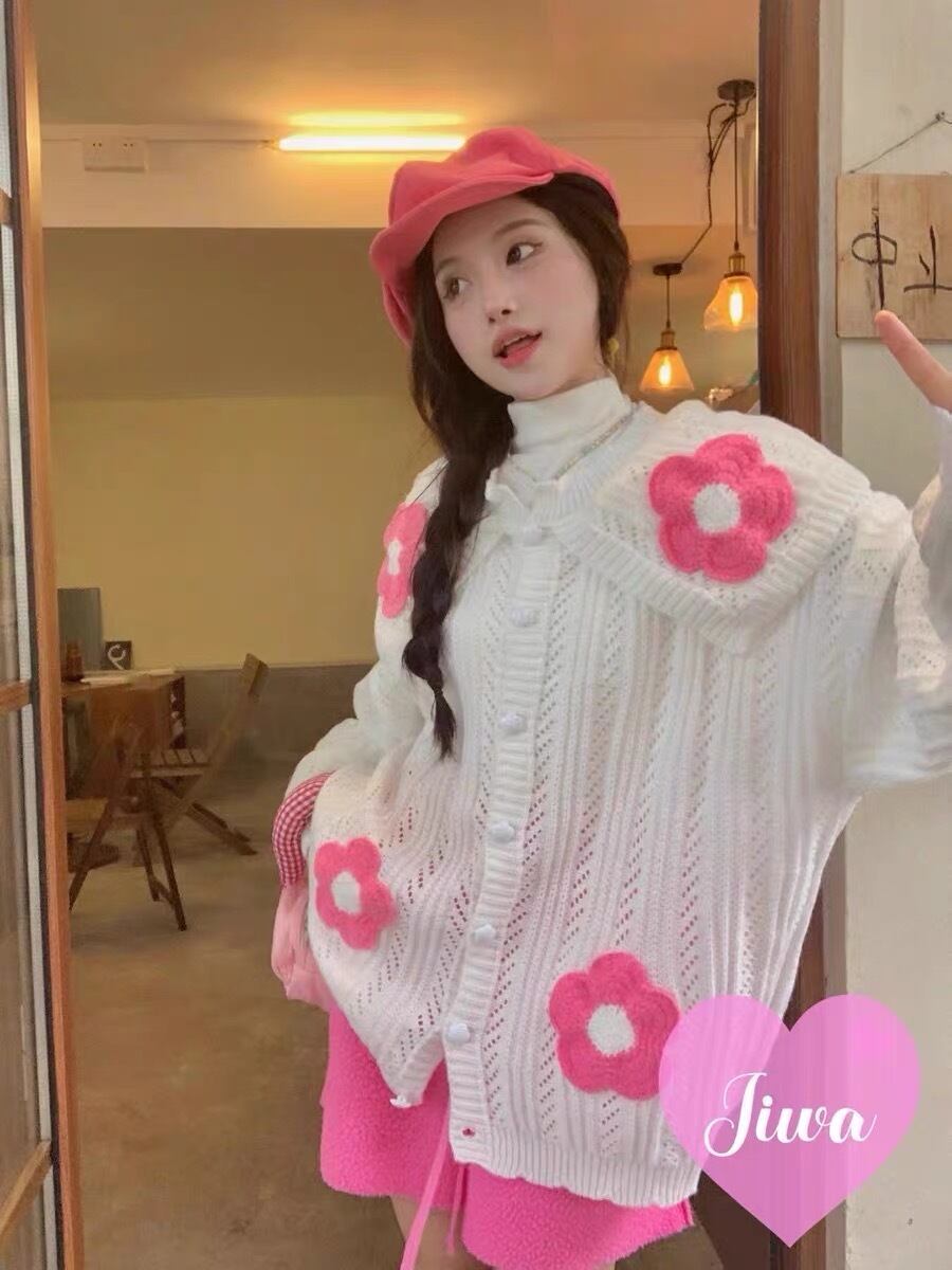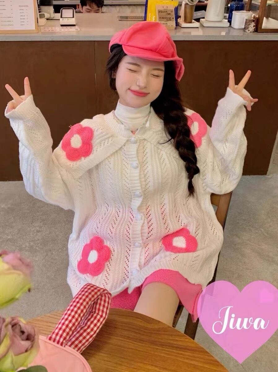 カーディガン ピンク 白 セーター ニット カジュアル 可愛い