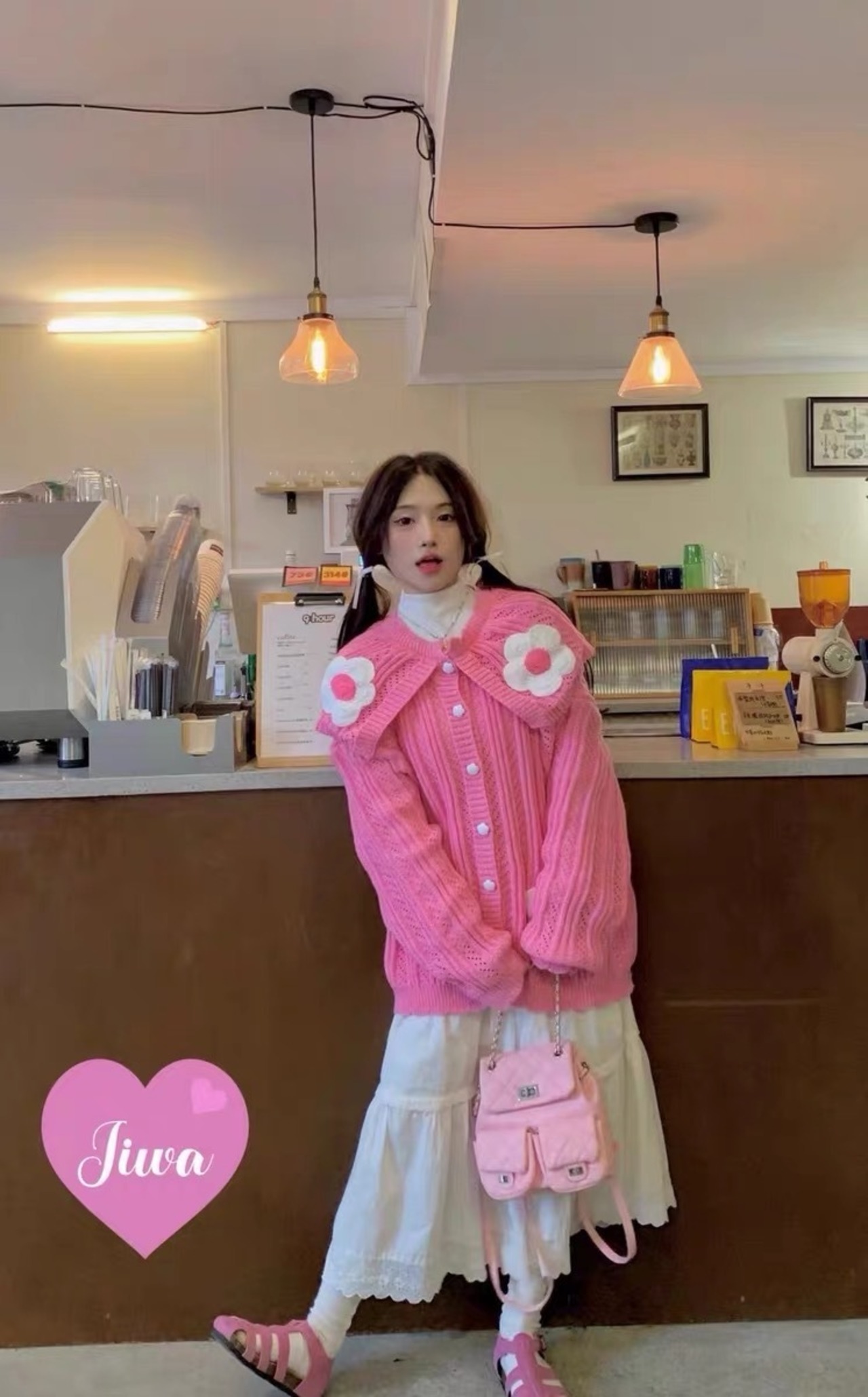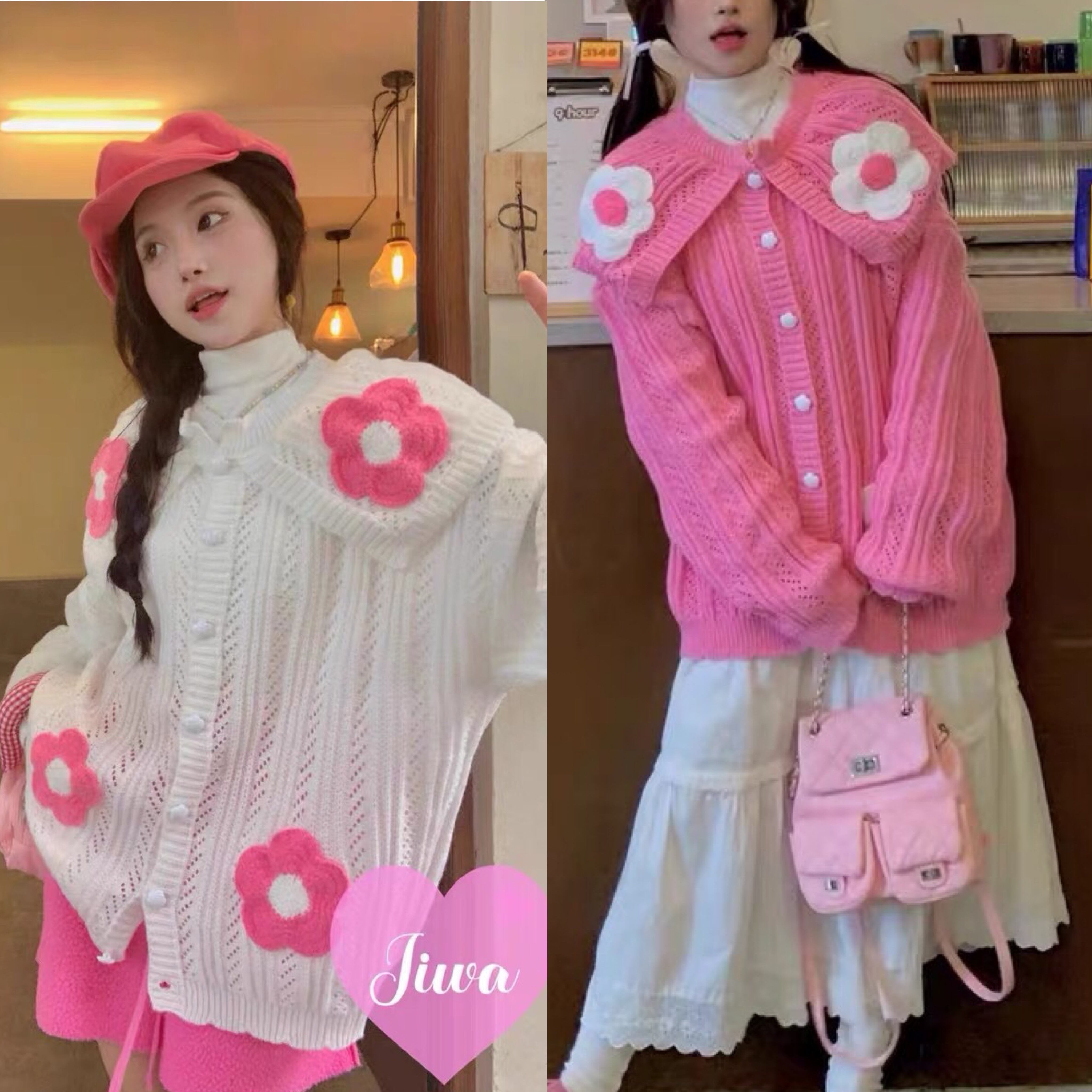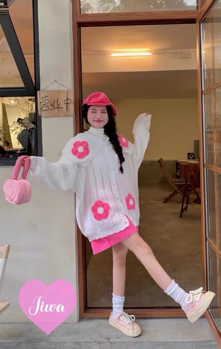 カーディガン ピンク 白 セーター ニット カジュアル 可愛い