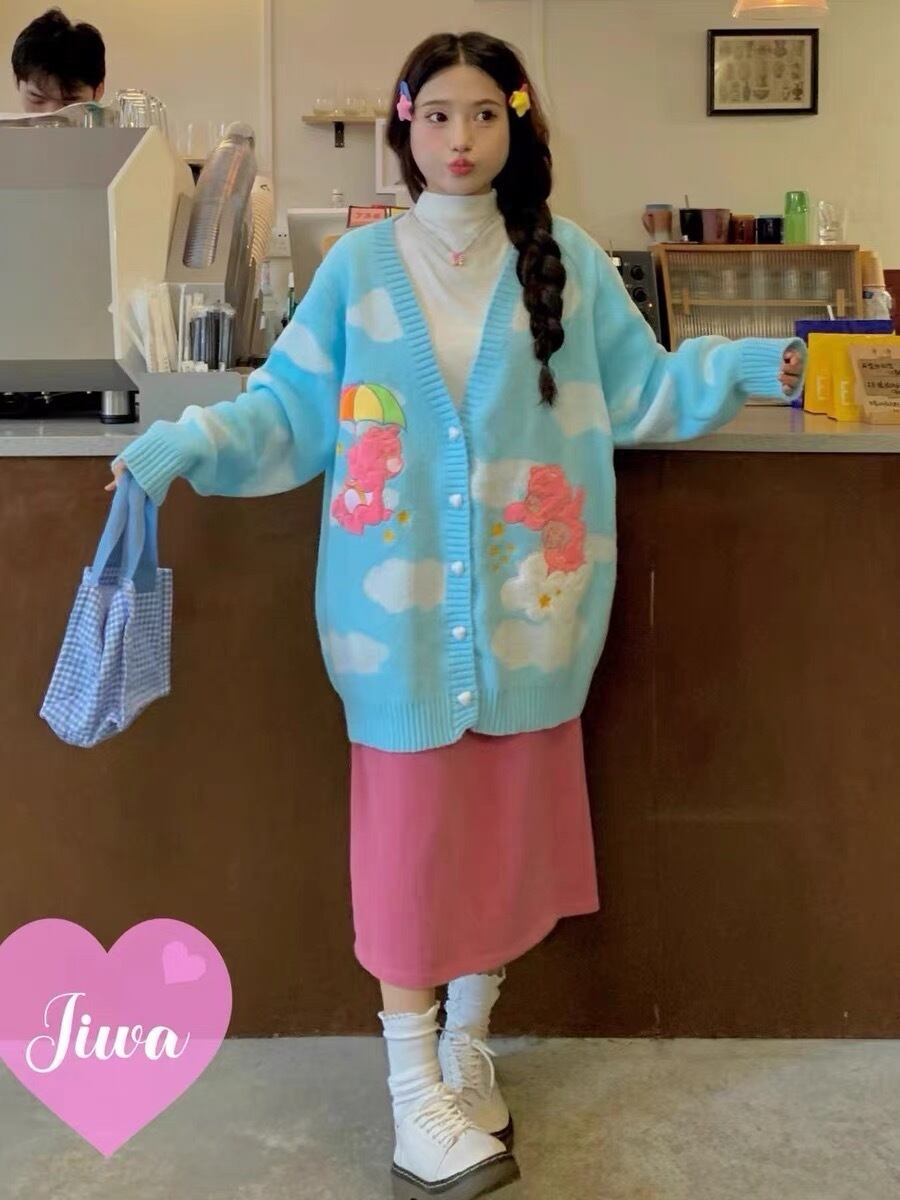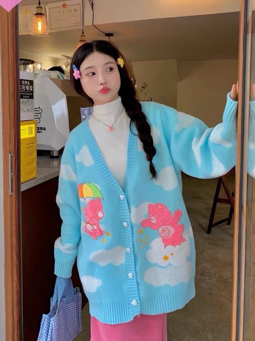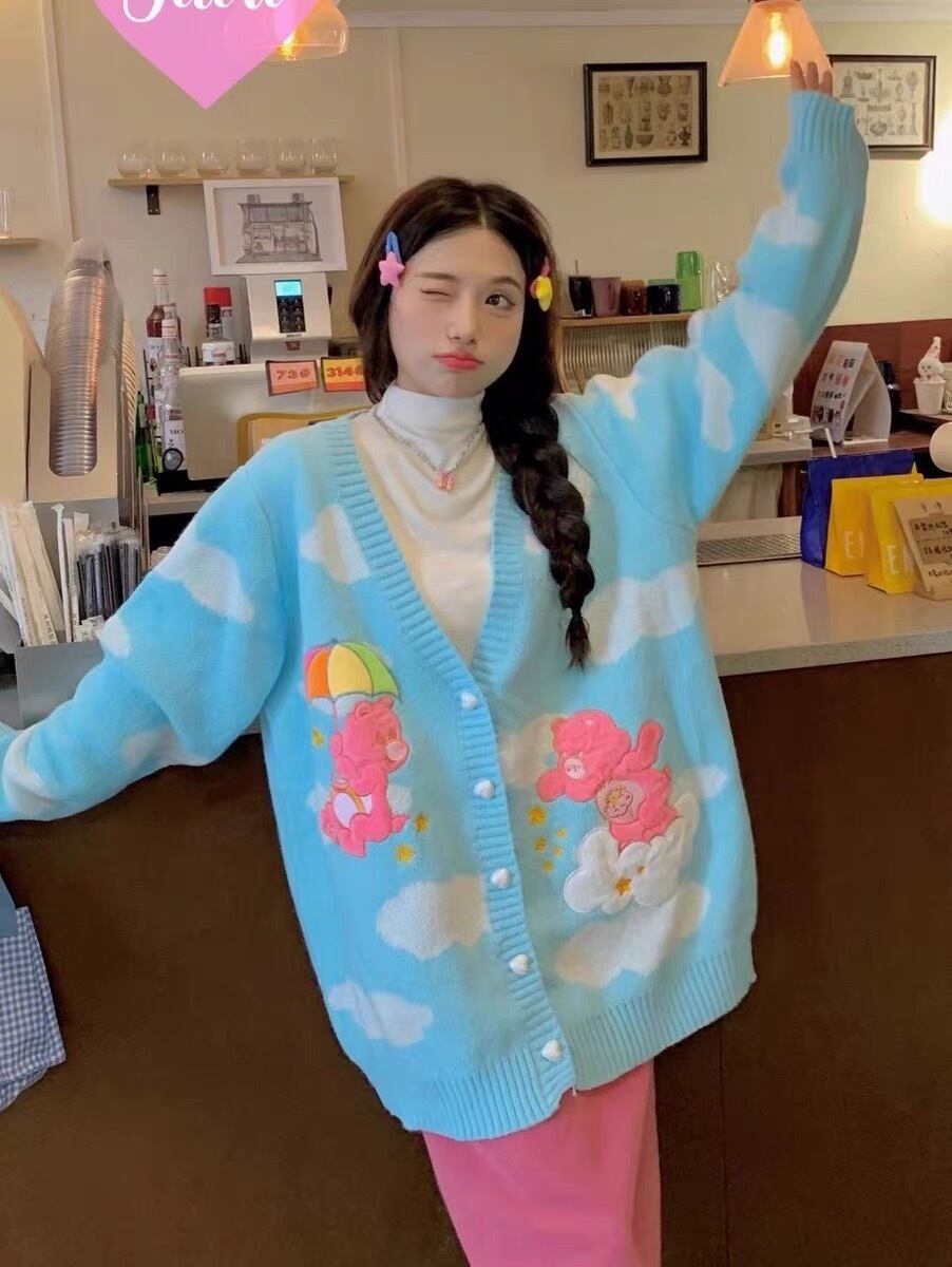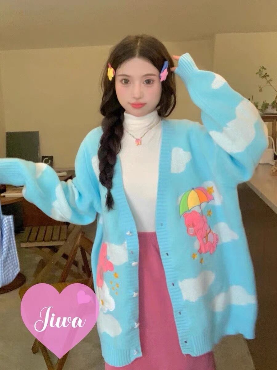 カーディガン 水色 ニット セーター 可愛い ガーリー くま