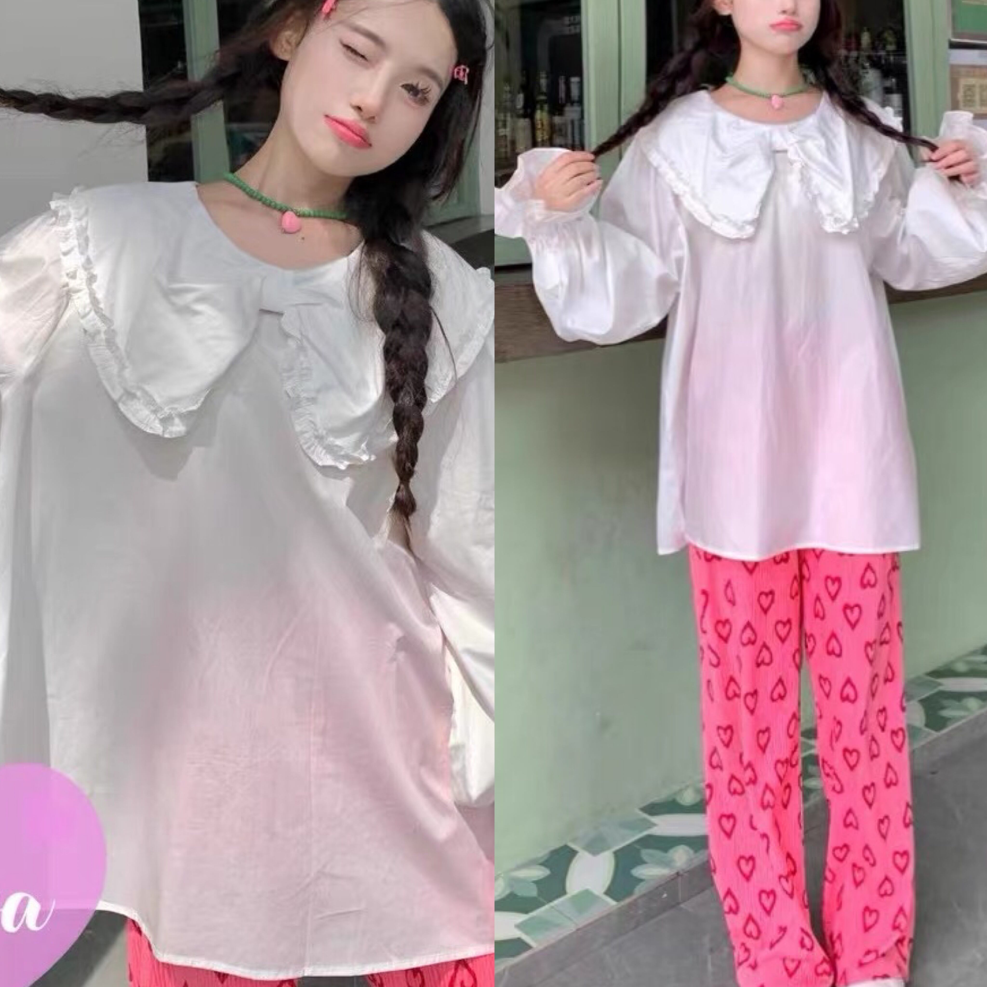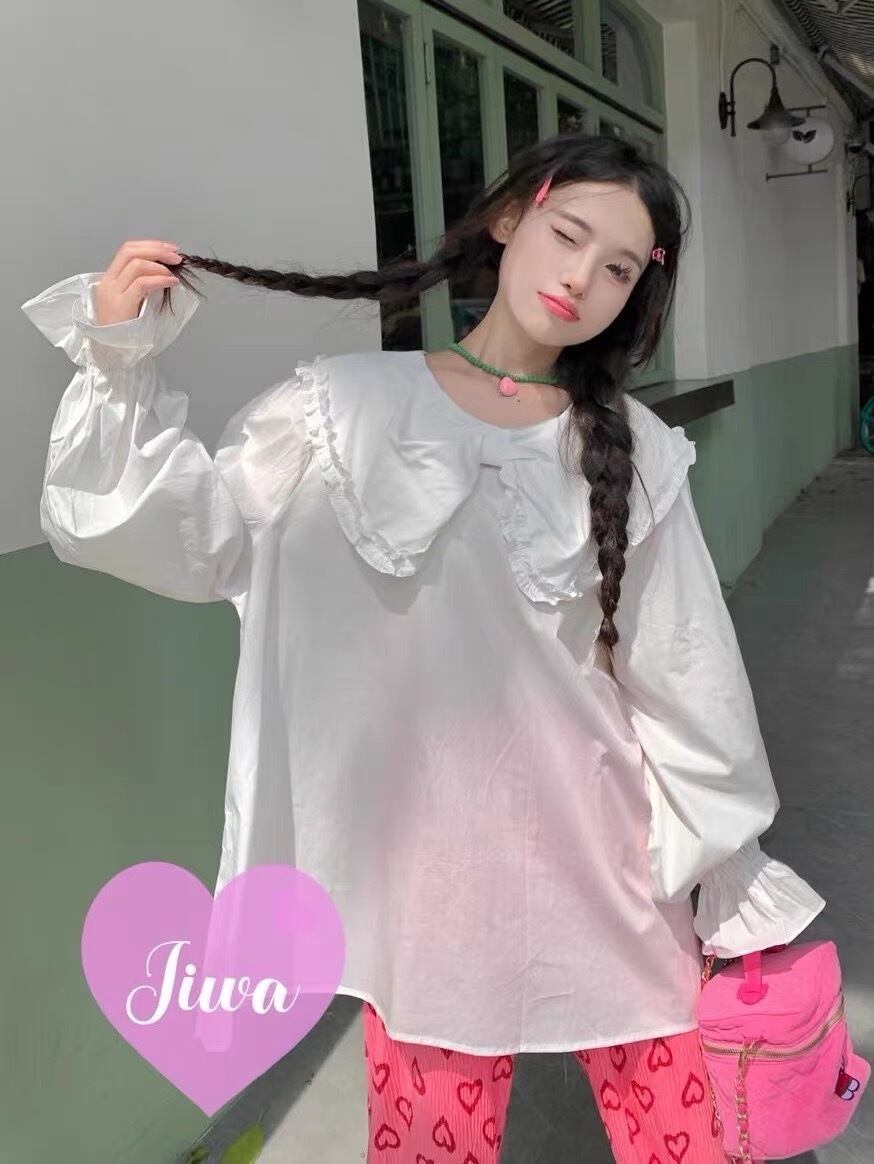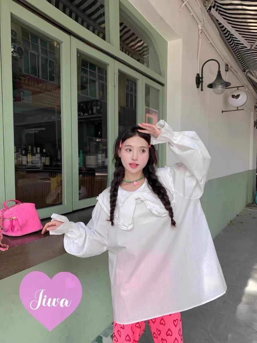 白 ホワイト リボン ガーリー シンプル ブラウス