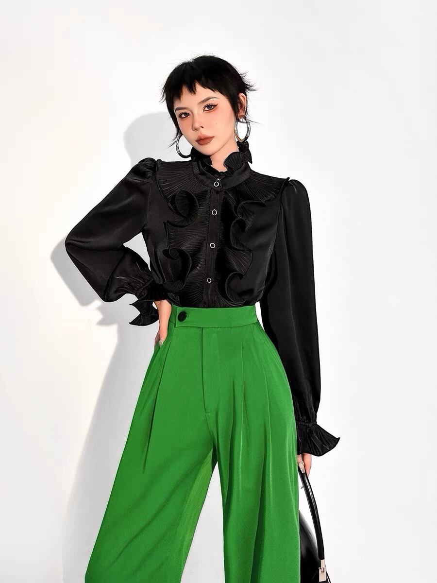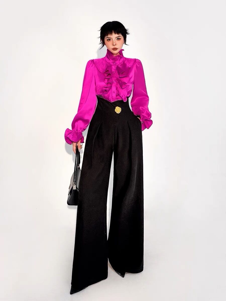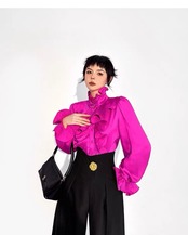 ブラウス 紫 ピンク フリル 黒 白 ピンク