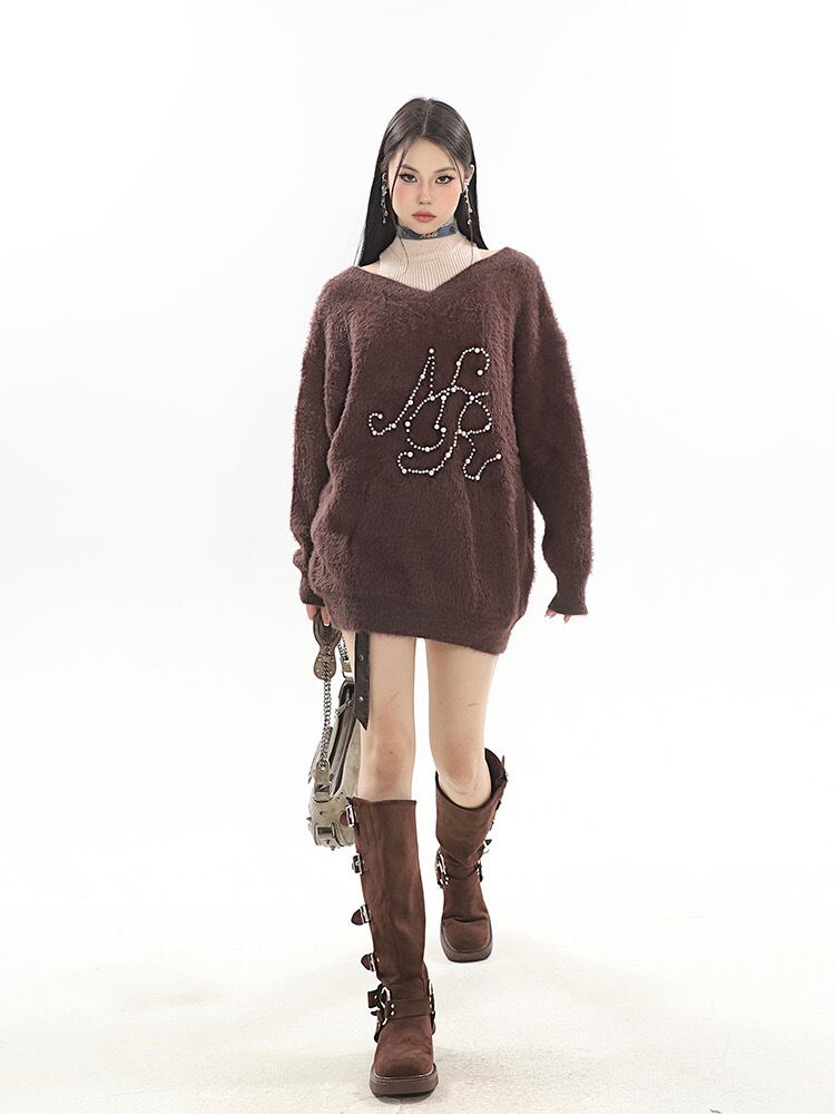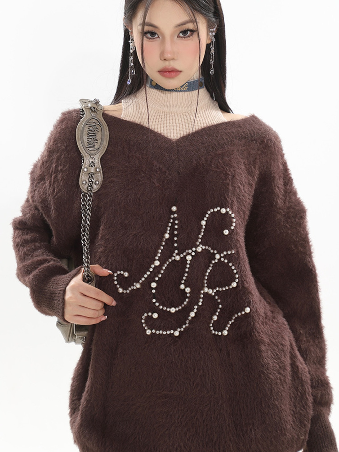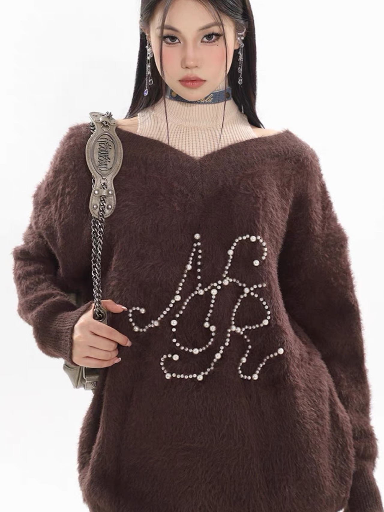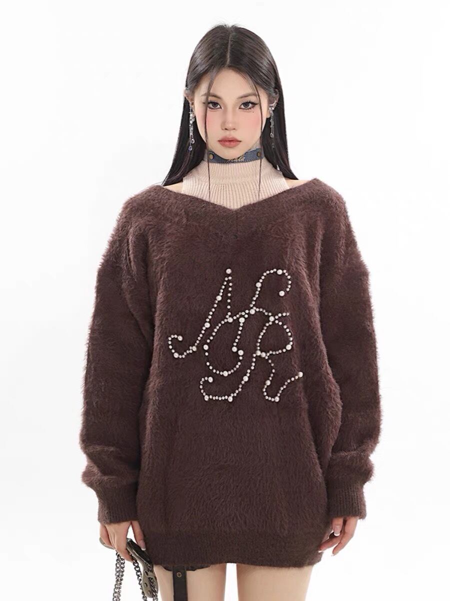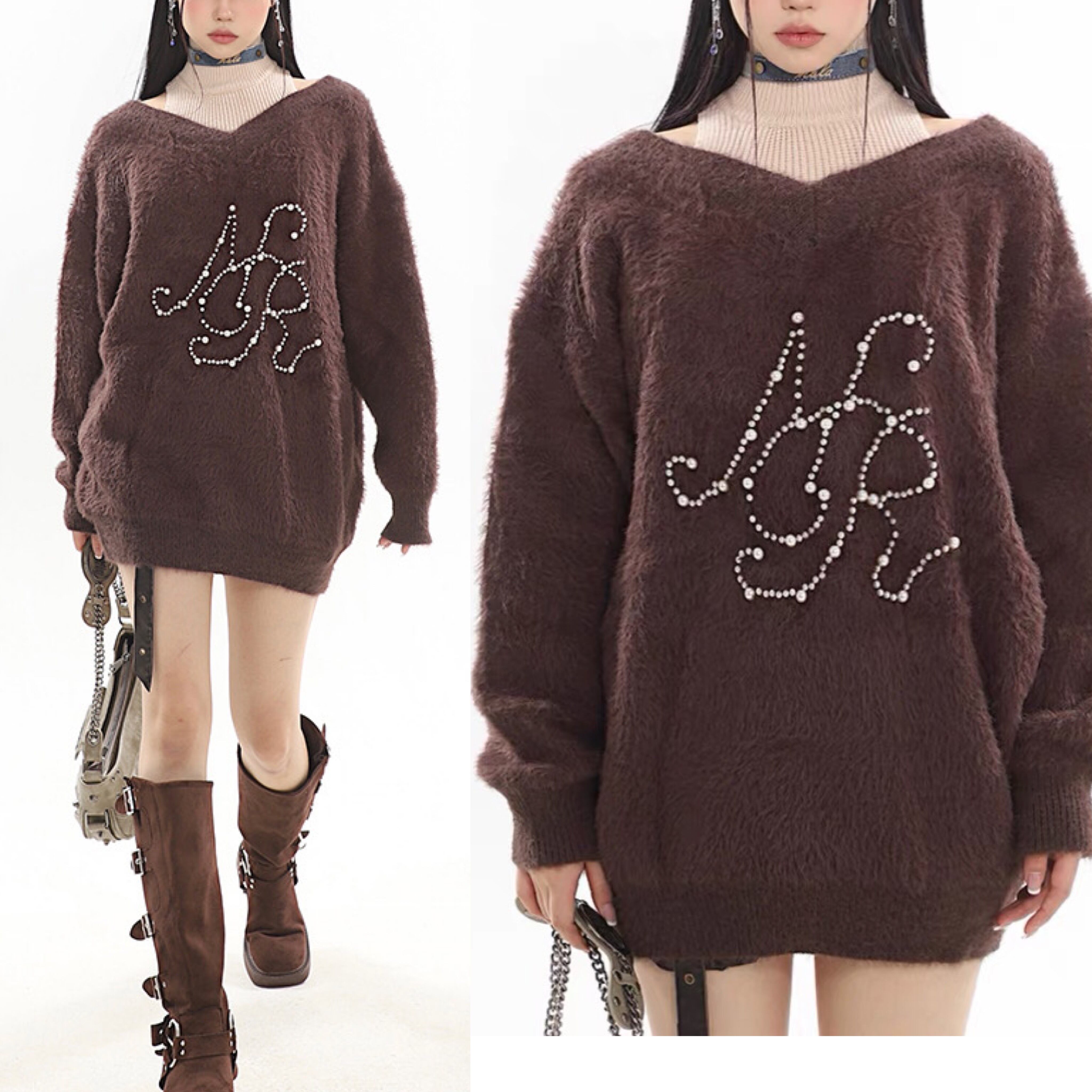 セーター 茶色 ブラウン カーディガン ニット オフショルダー