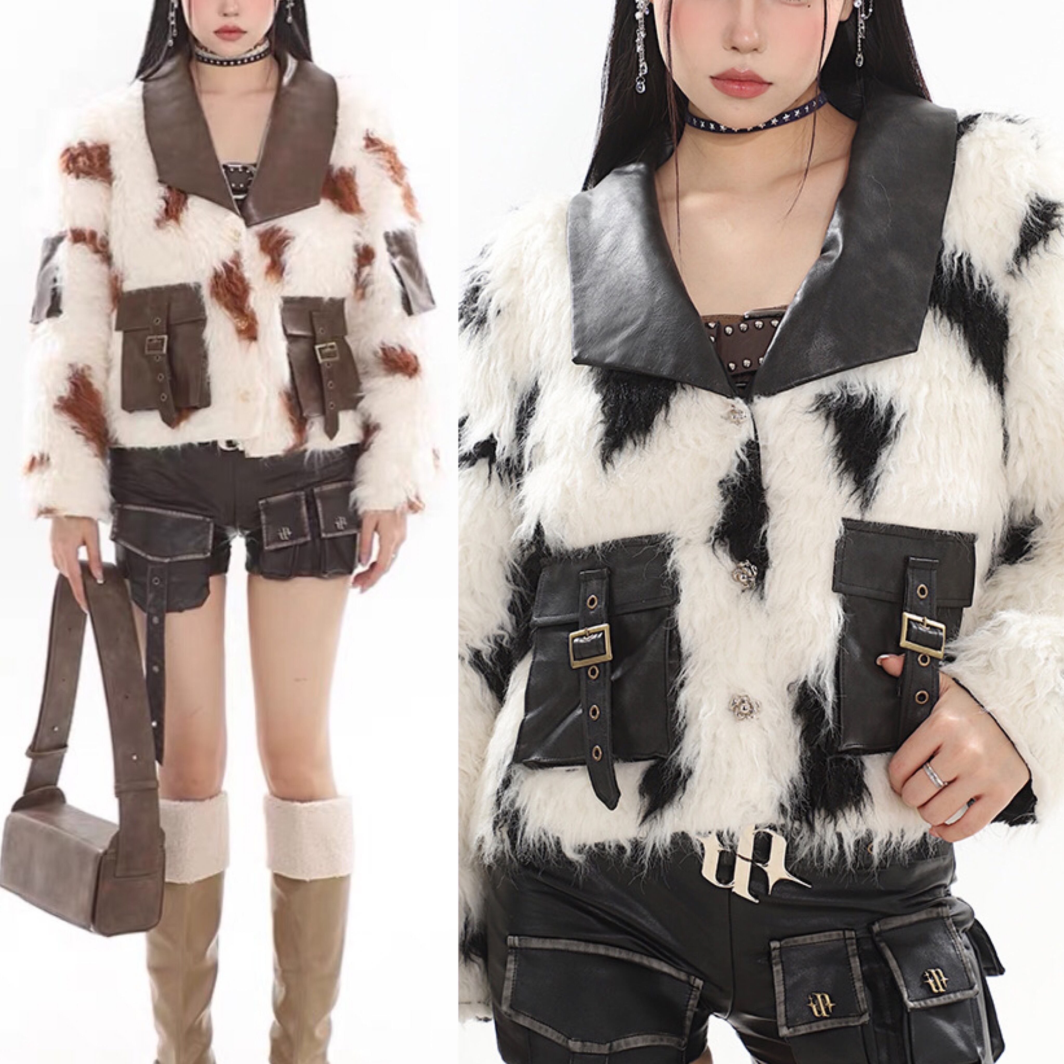 ジャケット アウター ファー 黒 茶色 レザー