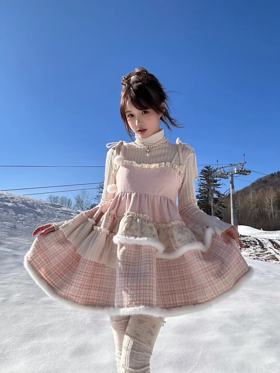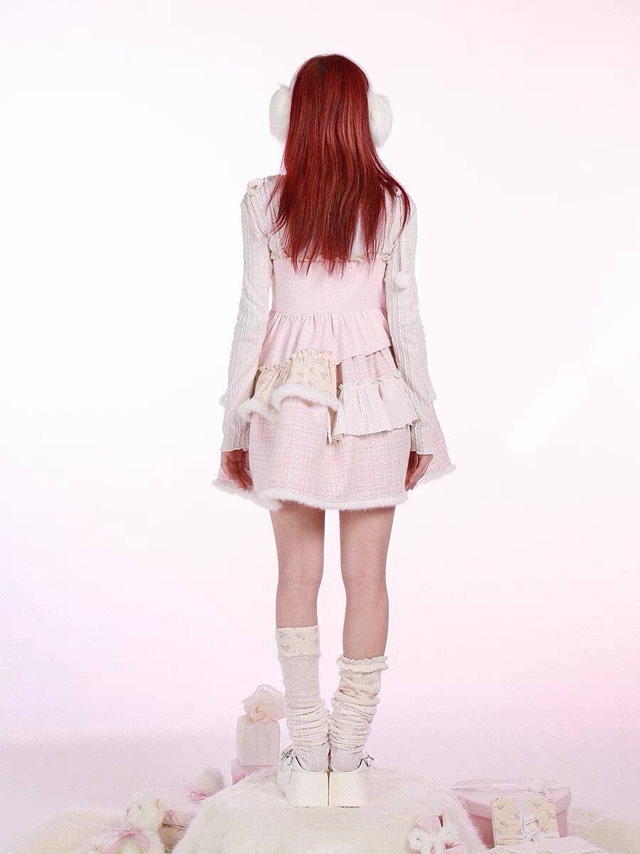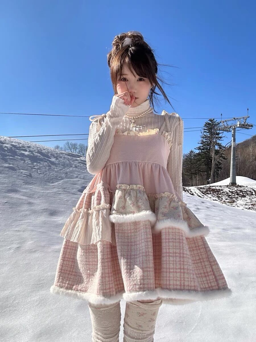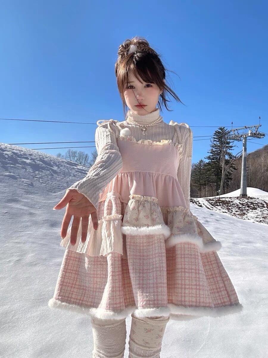 ワンピース パッチワーク 可愛い ピンク チェック リボン ガーリー